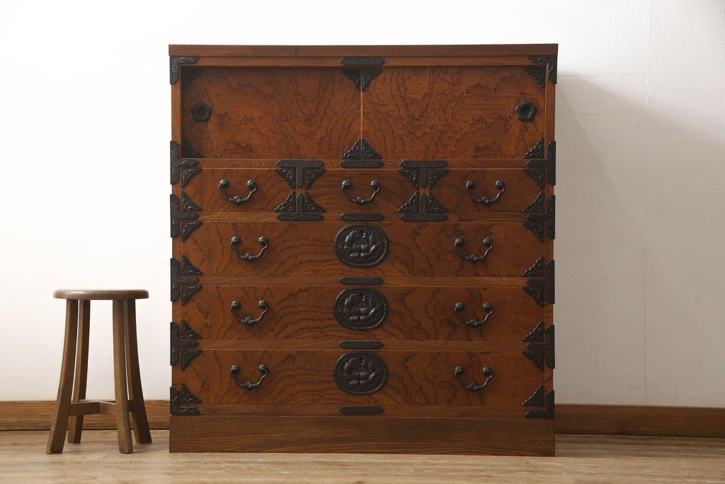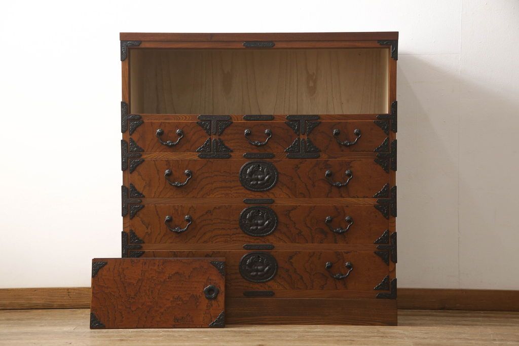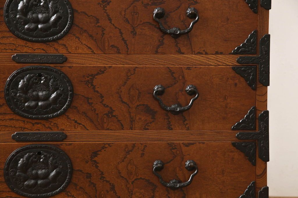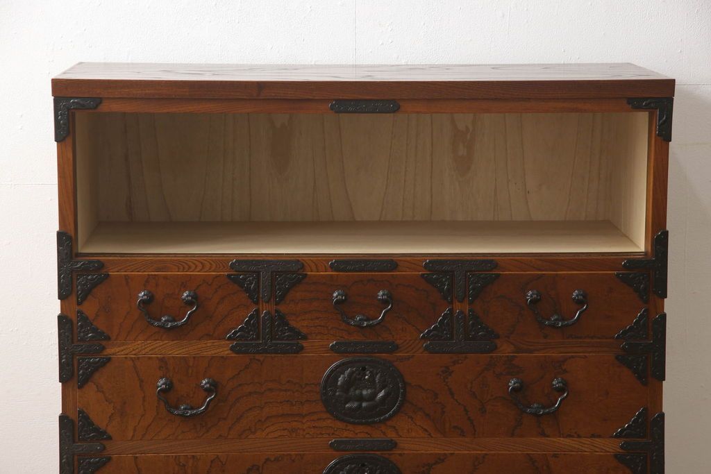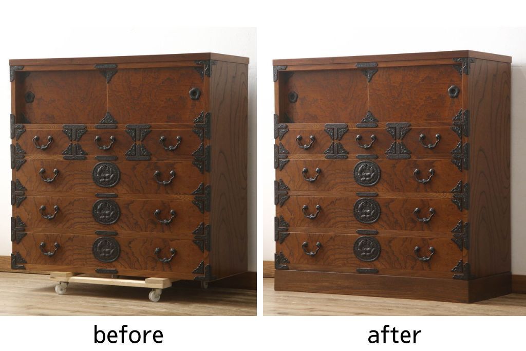 重ね箪笥をリペア&カスタム!天板を裏から補強し、全体のバランスをみて台輪を取り付け。棚・引き出し内部は着色せず、新材を使用する台輪は着色後の本体に合わせて着色。(収納箪笥、衣装箪笥、引き出し、和タンス)