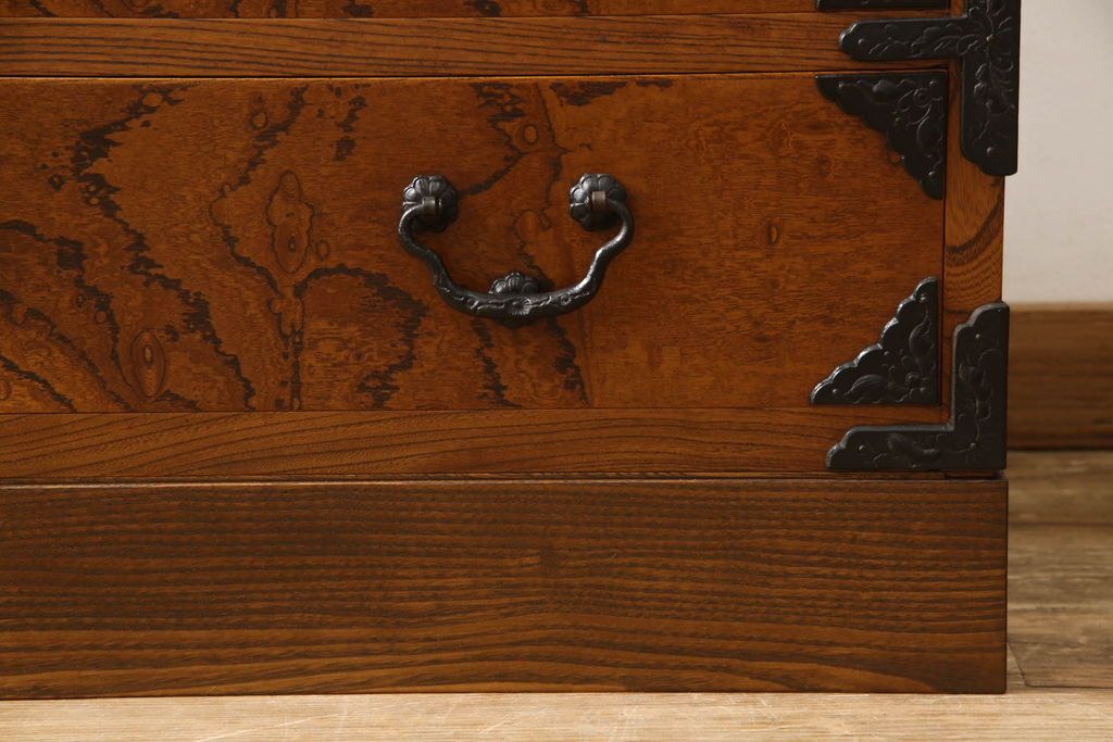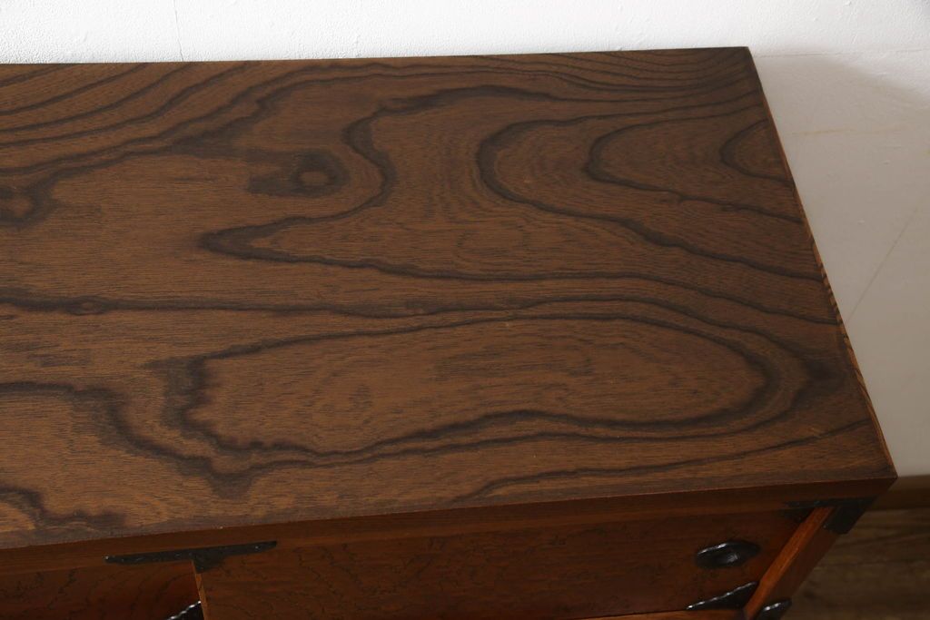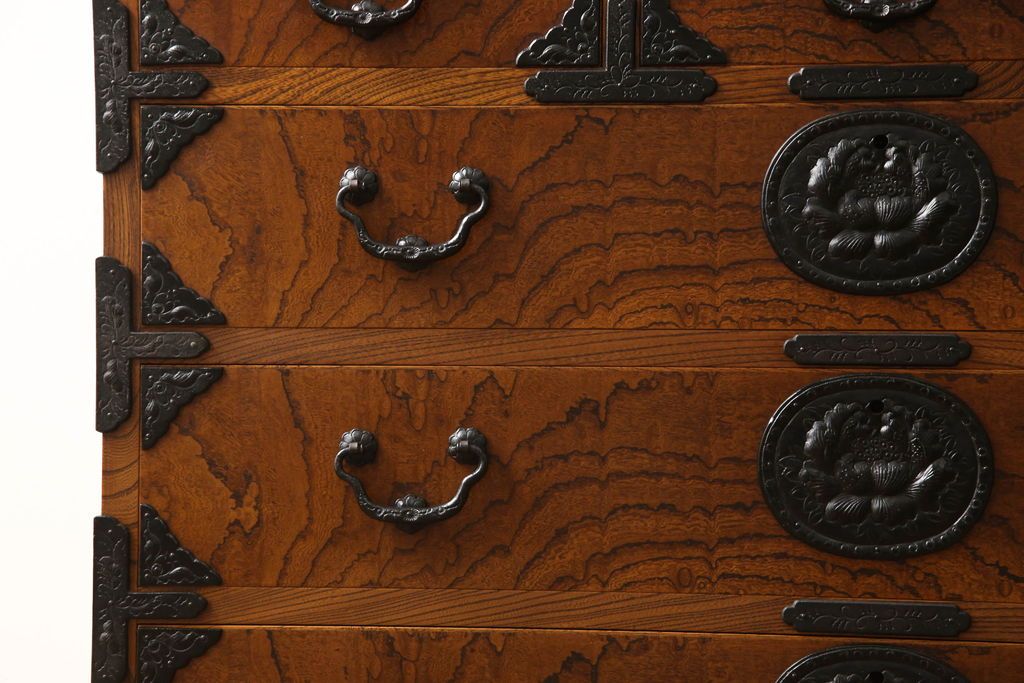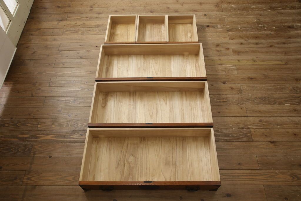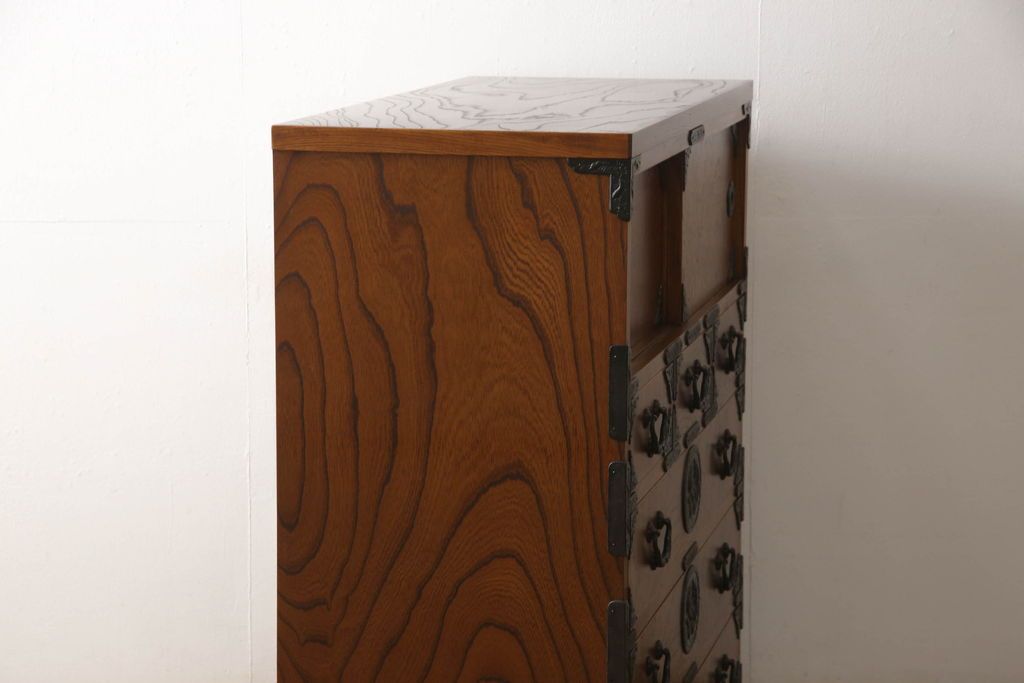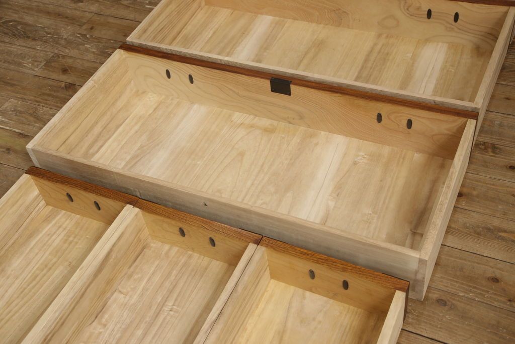 民芸家具 > 重ね箪笥をリペア&カスタム!天板を裏から補強し、全体のバランスをみて台輪を取り付け。棚・引き出し内部は着色せず、新材を使用する台輪は着色後の本体に合わせて着色。(収納箪笥、衣装箪笥、引き出し、和タンス)