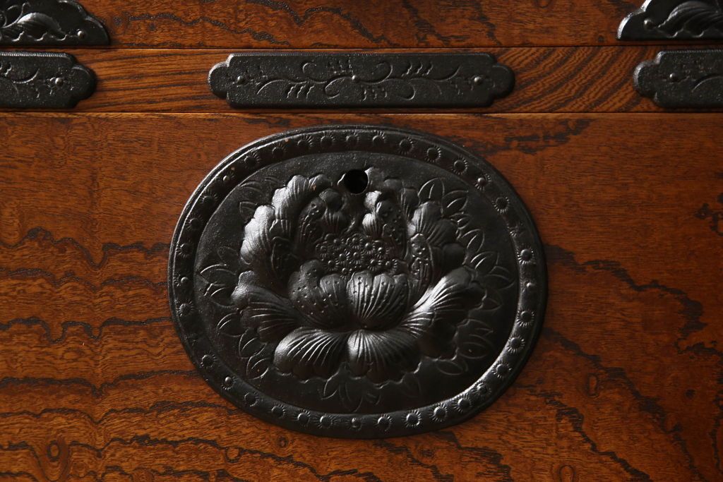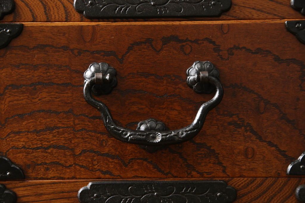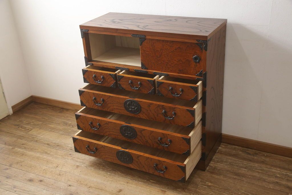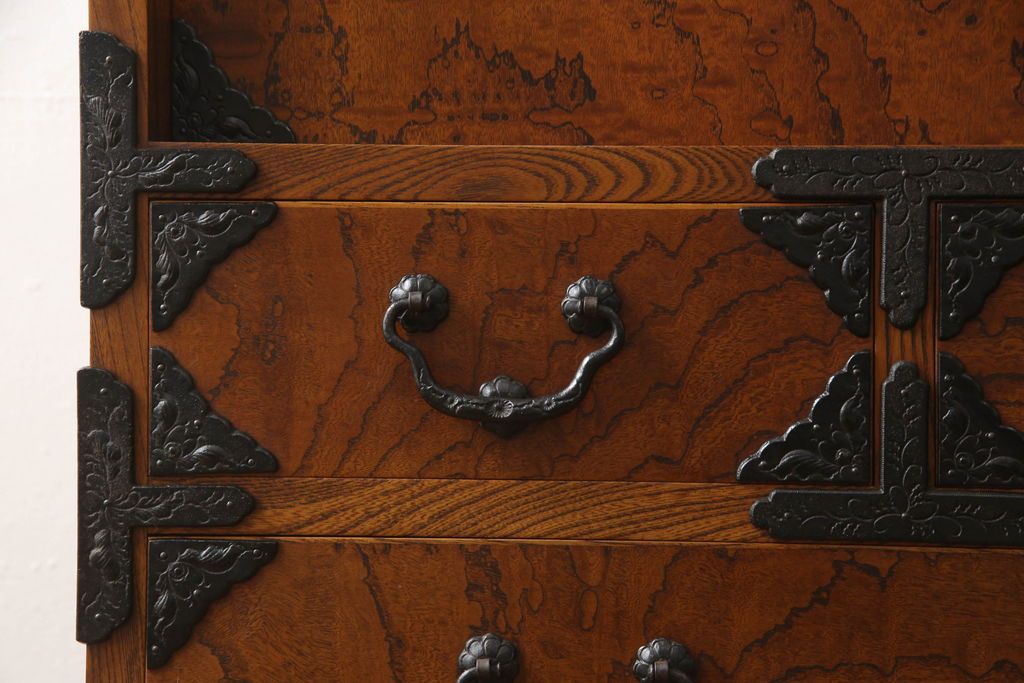 セミオーダー家具実績 > 重ね箪笥をリペア&カスタム!天板を裏から補強し、全体のバランスをみて台輪を取り付け。棚・引き出し内部は着色せず、新材を使用する台輪は着色後の本体に合わせて着色。(収納箪笥、衣装箪笥、引き出し、和タンス)