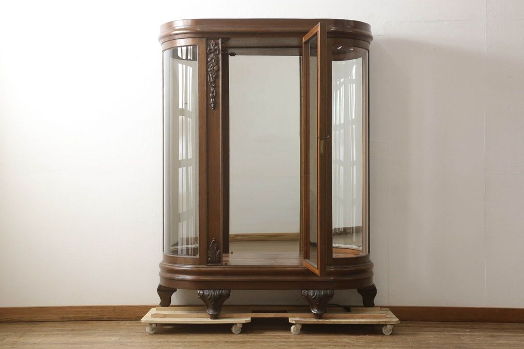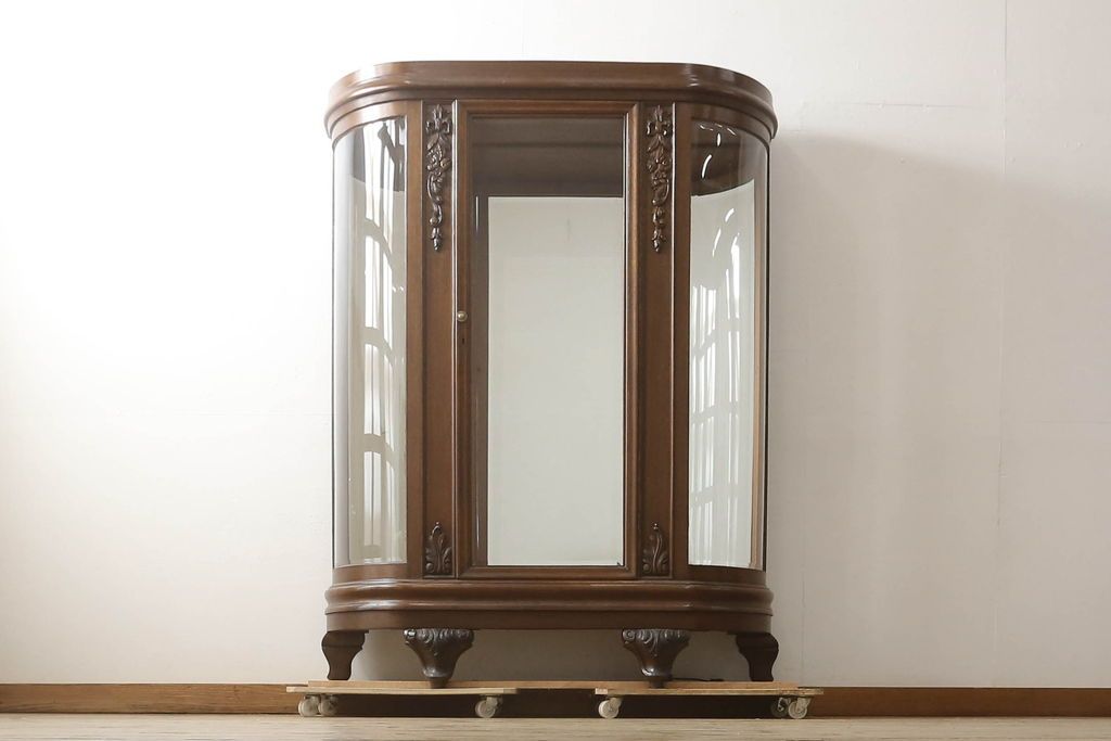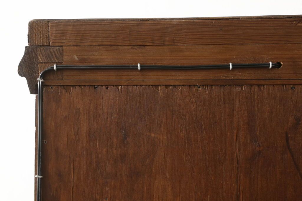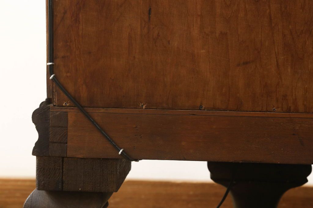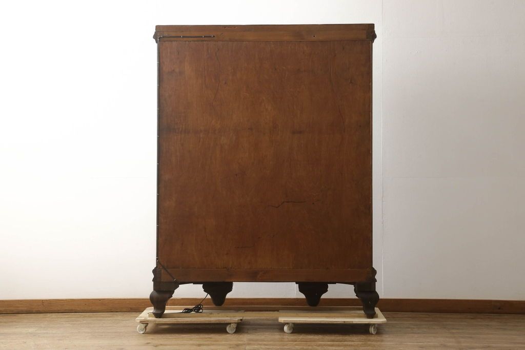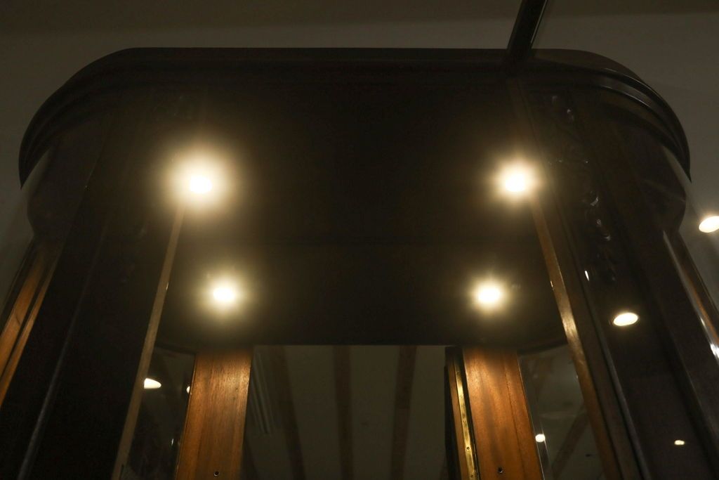ガラスケース・ショーケース > キャビネットをリペア&カスタム!背面の形状に合わせてミラーを取り付け、バランスを見てつまみも取り付け。内部天井にLEDライト、扉部分にマグネットキャッチ、脚裏にフェルトを取り付け。(ガラスケース、ショーケース、飾り棚、陳列棚、店舗什器)