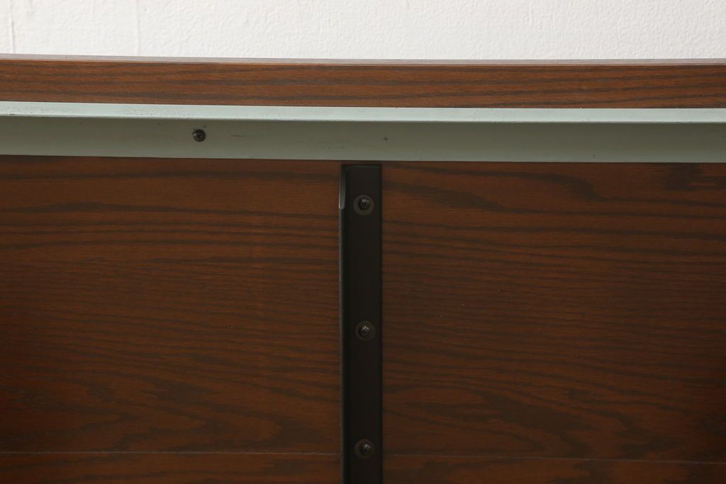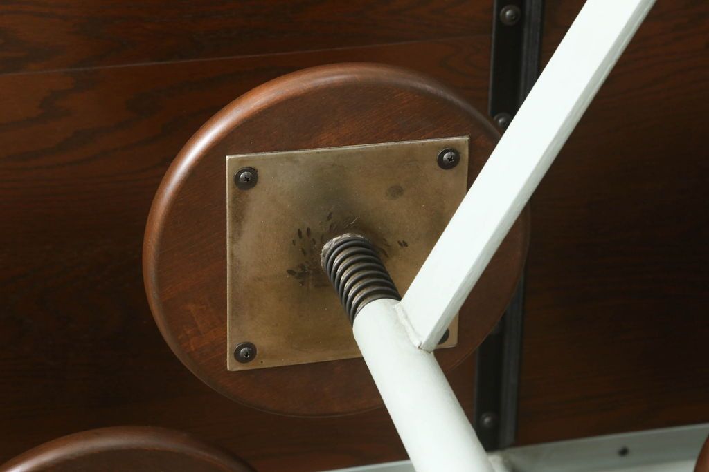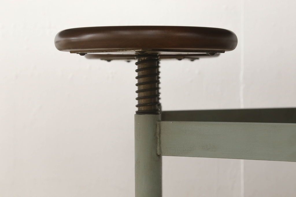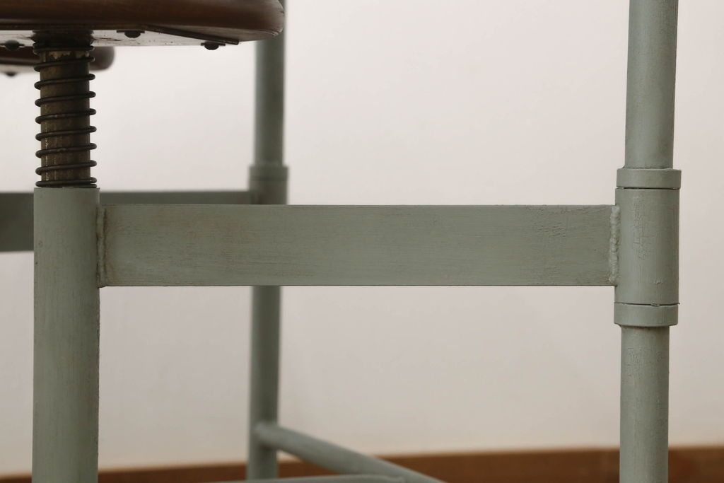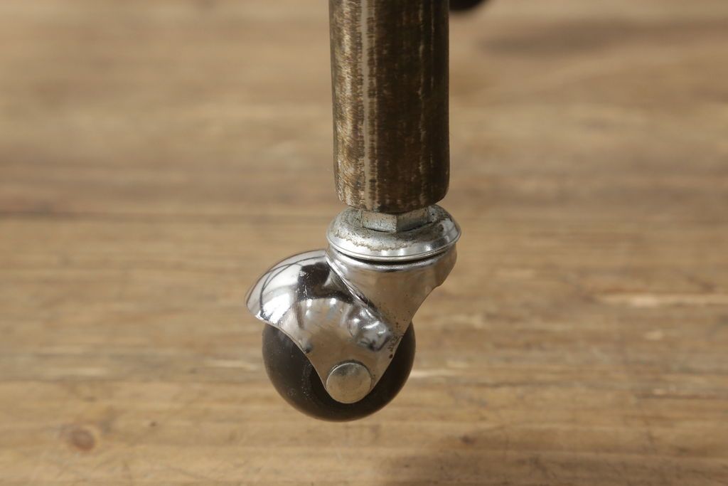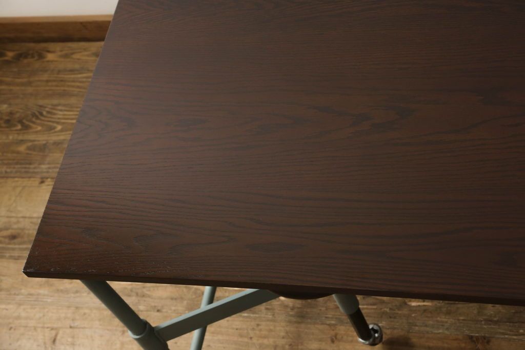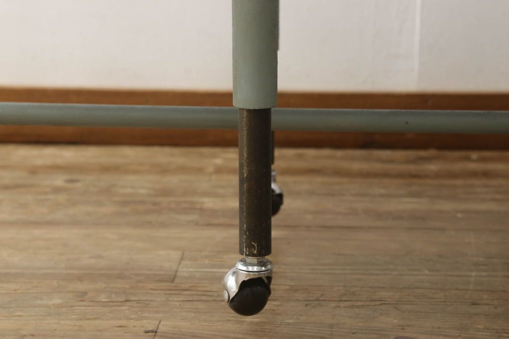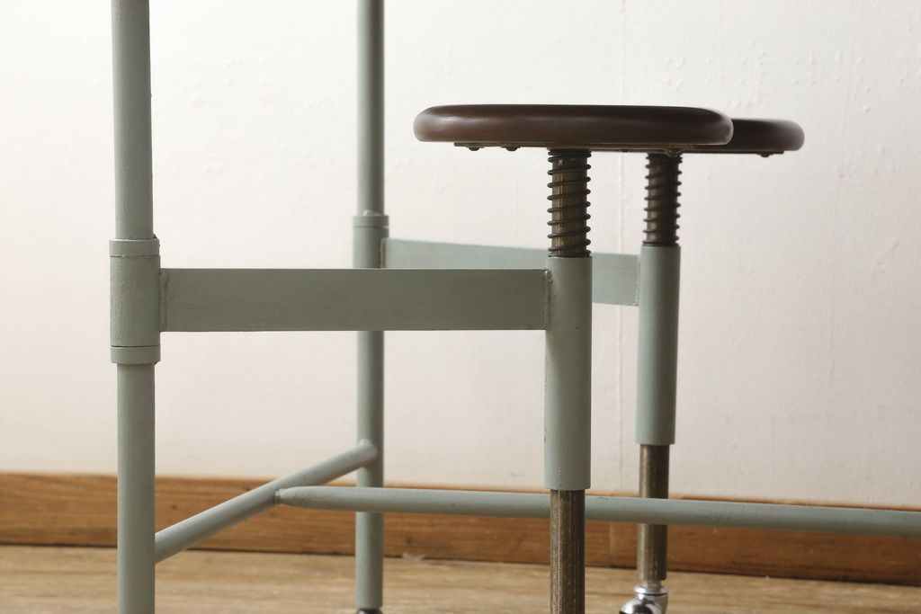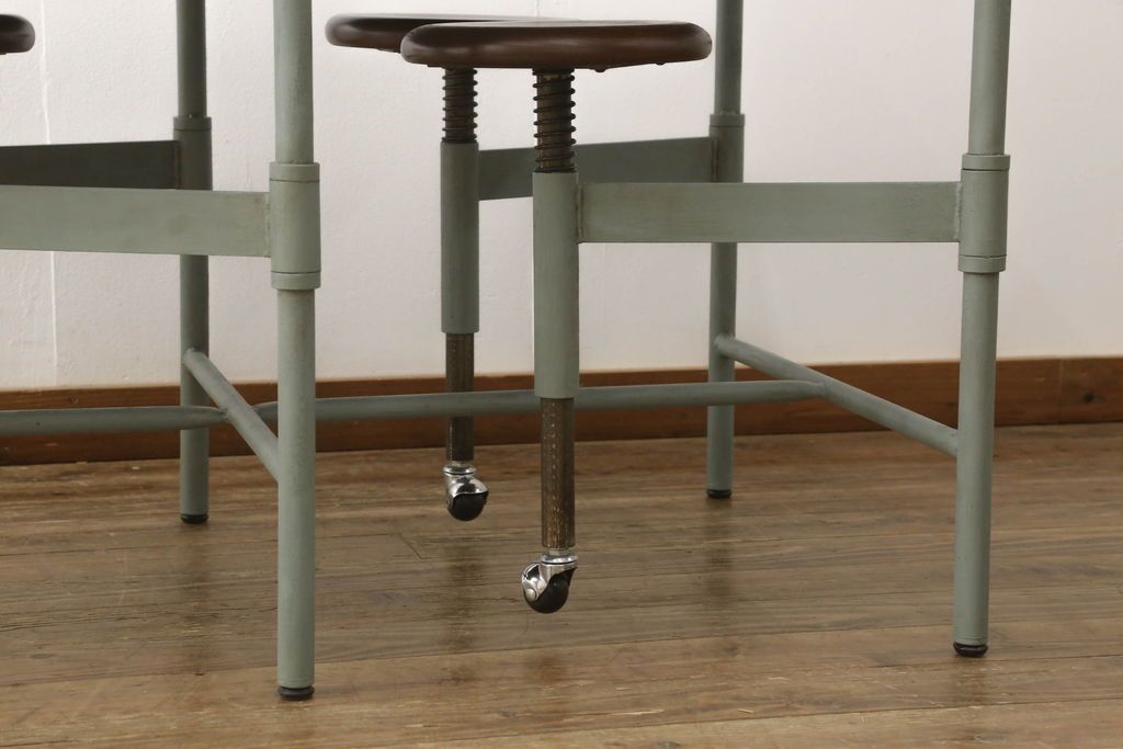 テーブル> 鉄脚テーブル > 格納スツール6脚付きテーブルをリペア&カスタム!当店商品を参考に天板と座面を交換。天板、キャスターを着色して仕上げ。(6人用ダイニングテーブル、作業台)