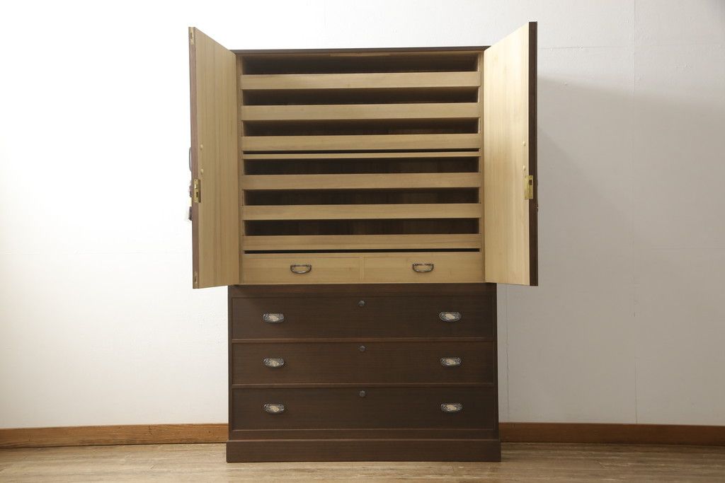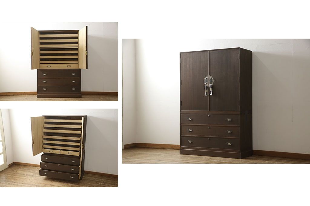 和箪笥> 衣装箪笥 > 総桐箪笥をリペア&カスタム!色味は当店オーダー家具を参考にチェスナット系に着色。 (並厚、桐たんす、着物箪笥、和タンス、衣装箪笥、引き出し)