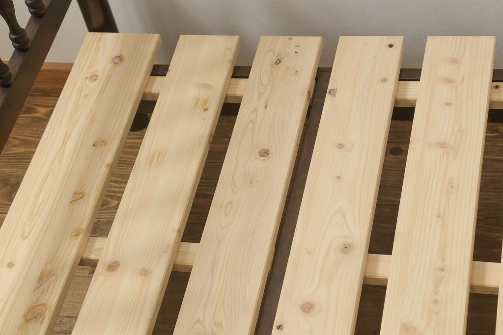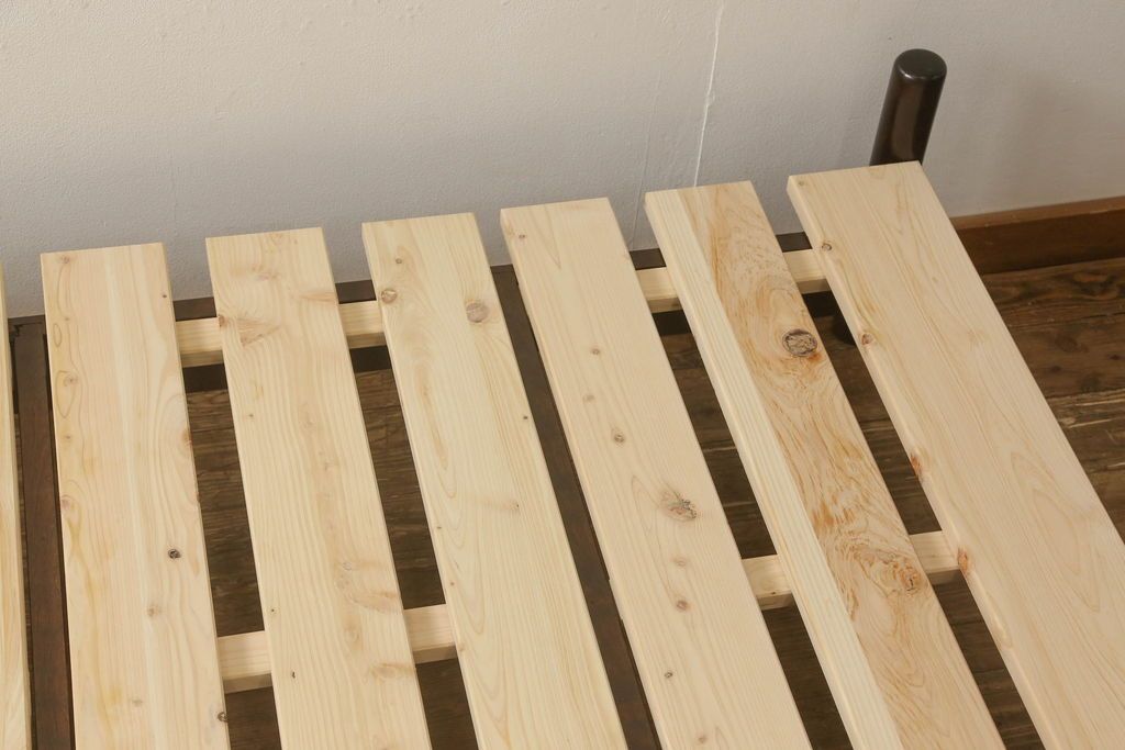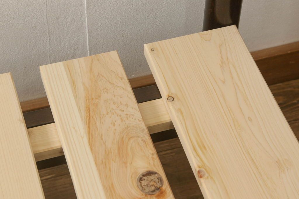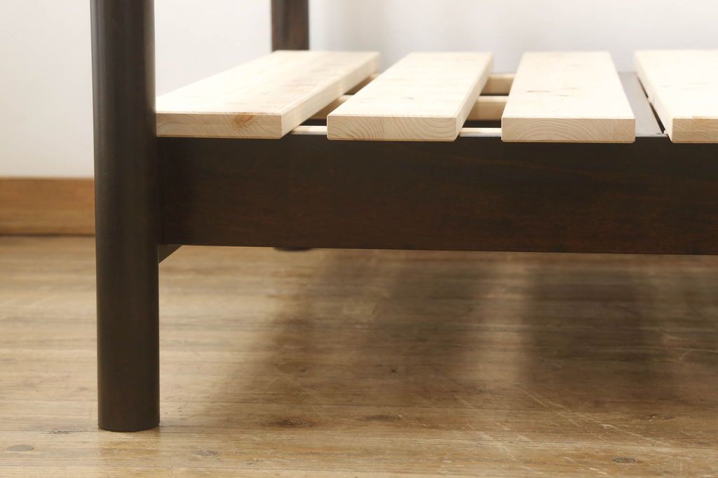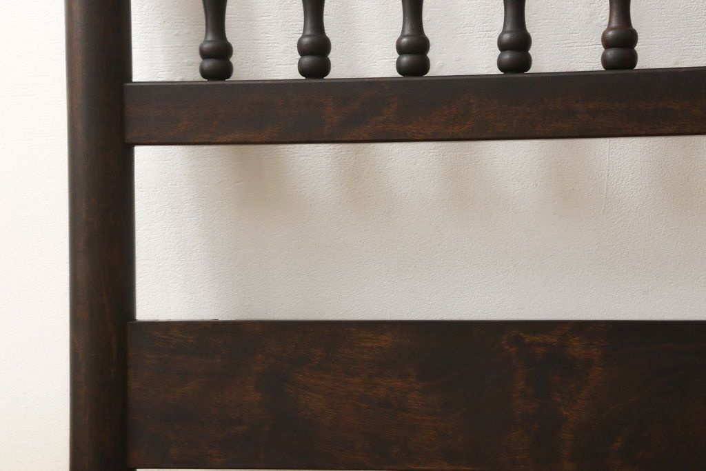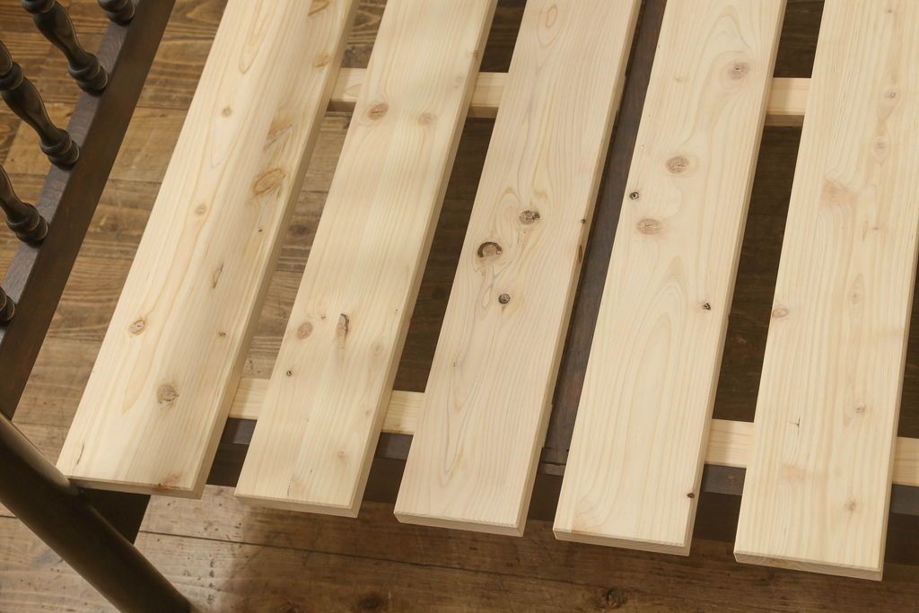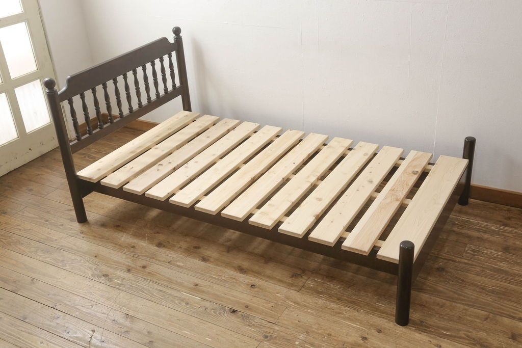 民芸家具 > ベッドフレームをリペア&カスタム!ベットフレームに合わせてすのこを製作。本体は現状をベースにして1トーン程落ち着いた色味に着色し、修繕箇所は本体と馴染むよう仕上げ。(シングル)
