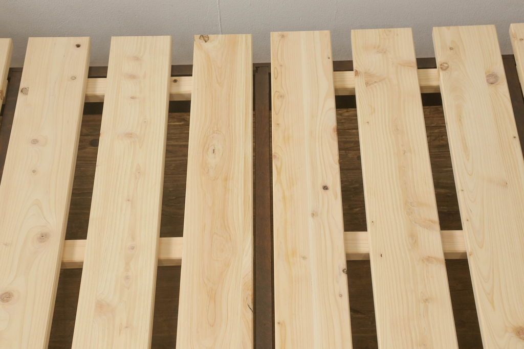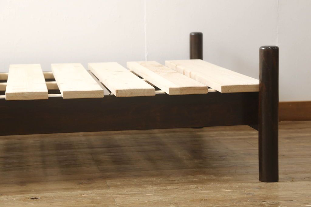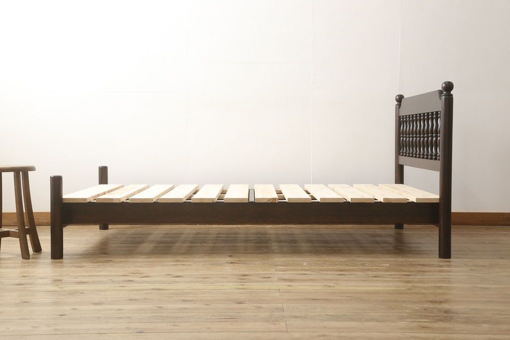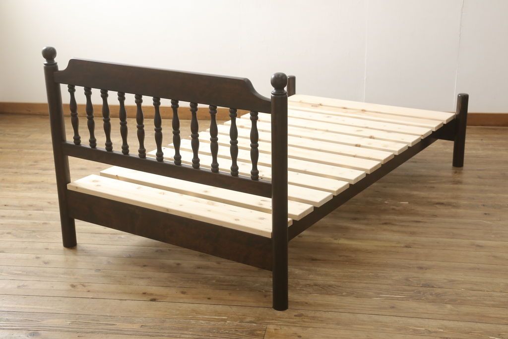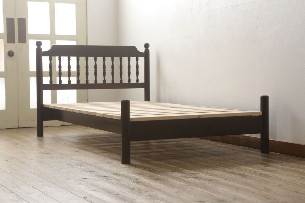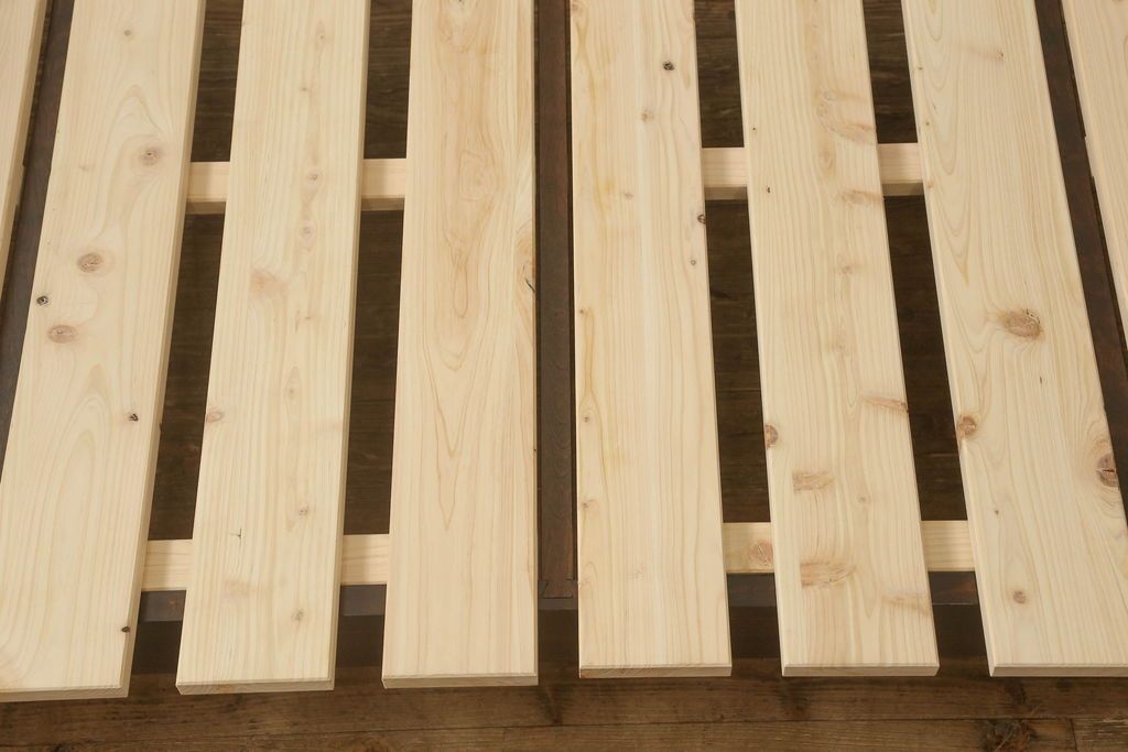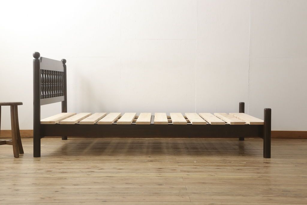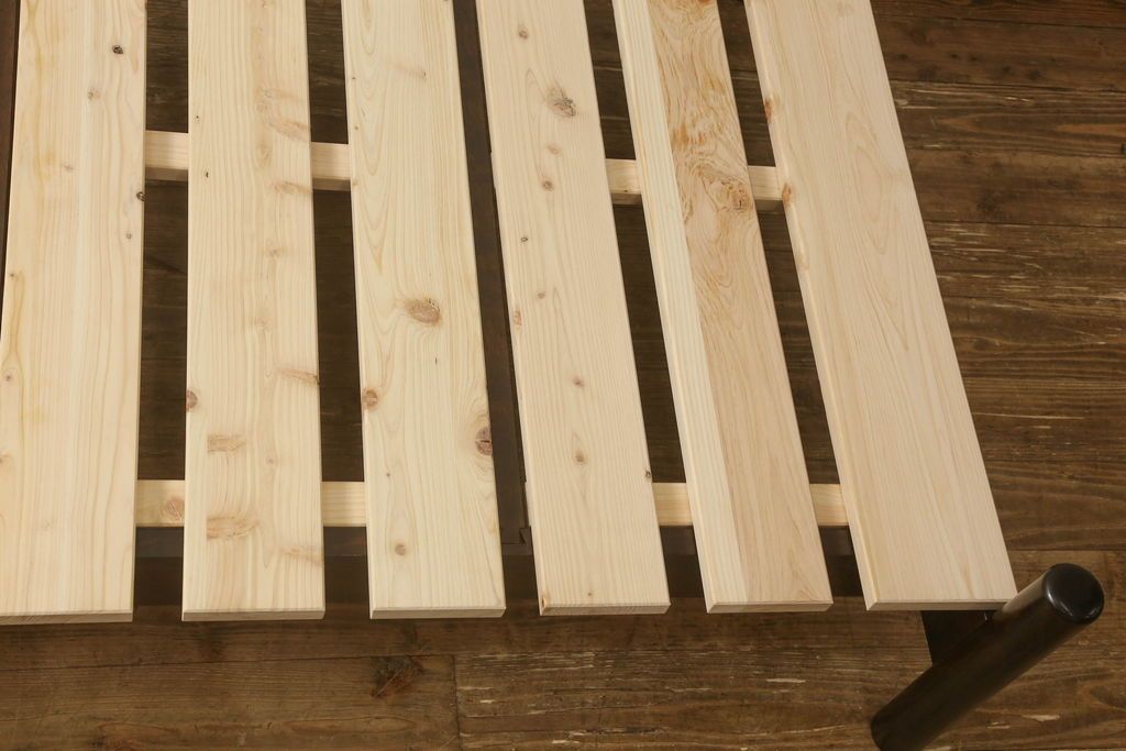 民芸家具 > ベッドフレームをリペア&カスタム!ベットフレームに合わせてすのこを製作。本体は現状をベースにして1トーン程落ち着いた色味に着色し、修繕箇所は本体と馴染むよう仕上げ。(シングル)