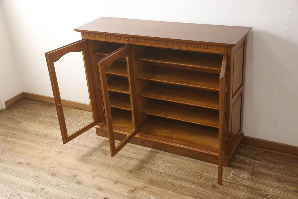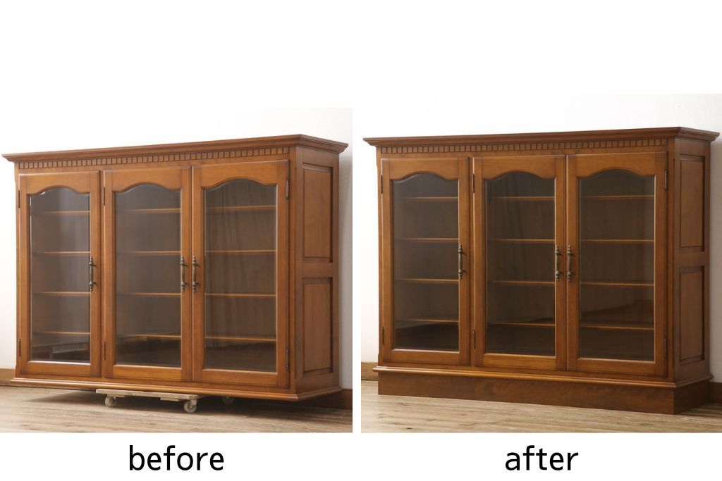 キャビネット・戸棚> 本箱 > サイドボードをリペア&カスタム!当店商品を参考に台輪を製作。本体は現状をベースにして1トーン程落ち着いた色味に着色し、台輪は本体に馴染むよう着色仕上げ。(キャビネット、収納棚、戸棚、飾り棚、カップボード)