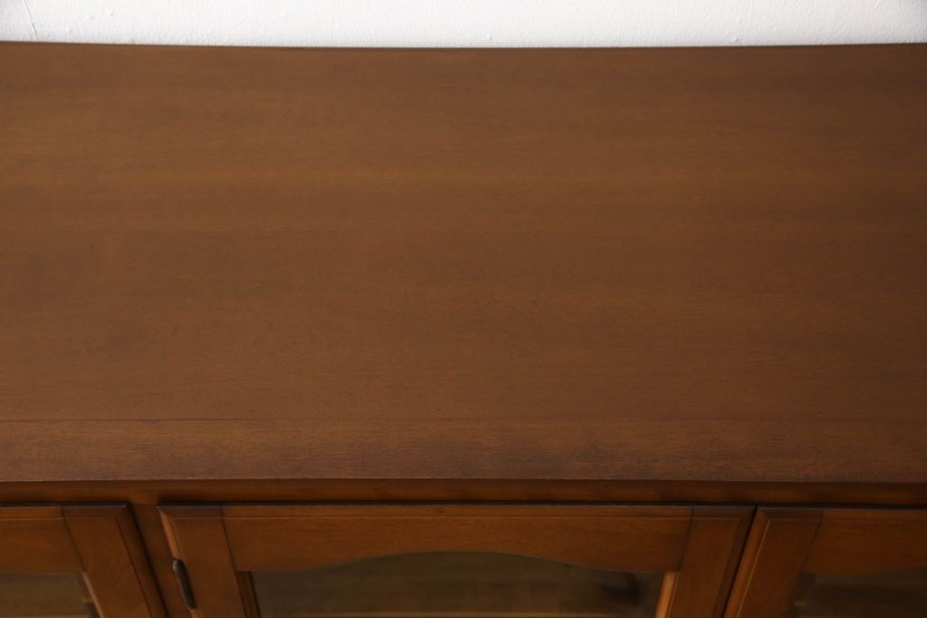 キャビネット・戸棚> 食器棚・カップボード > サイドボードをリペア&カスタム!当店商品を参考に台輪を製作。本体は現状をベースにして1トーン程落ち着いた色味に着色し、台輪は本体に馴染むよう着色仕上げ。(キャビネット、収納棚、戸棚、飾り棚、カップボード)