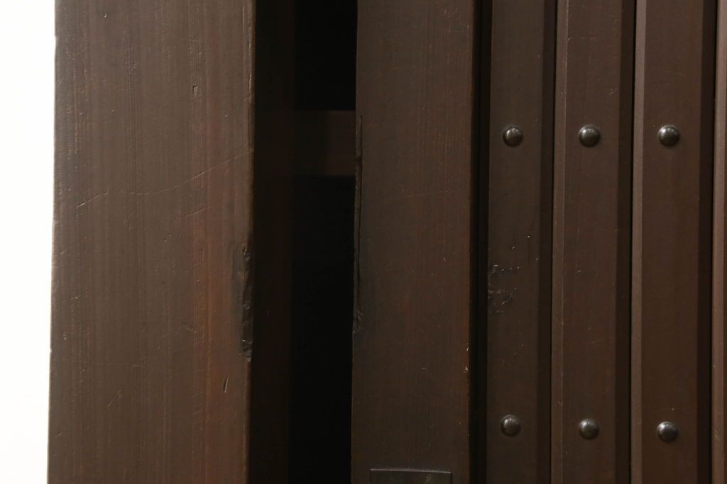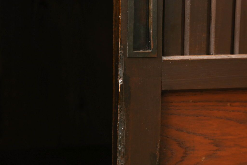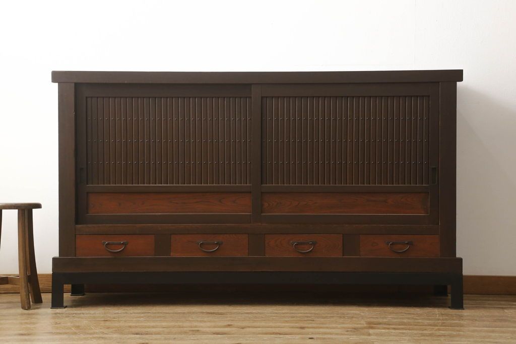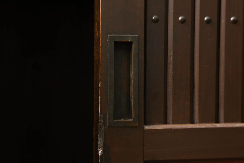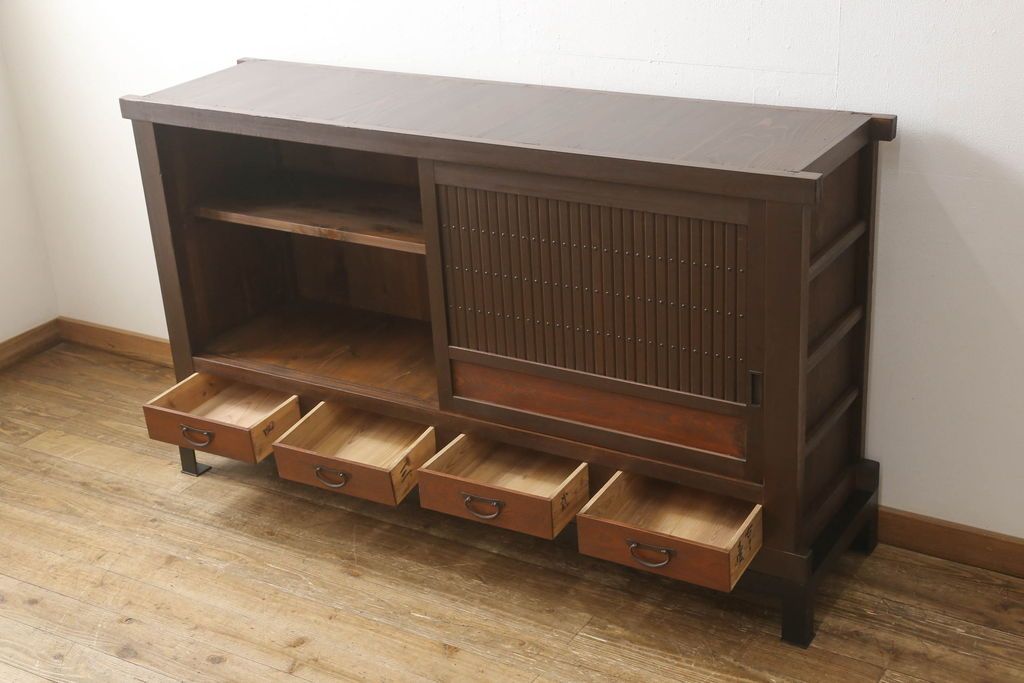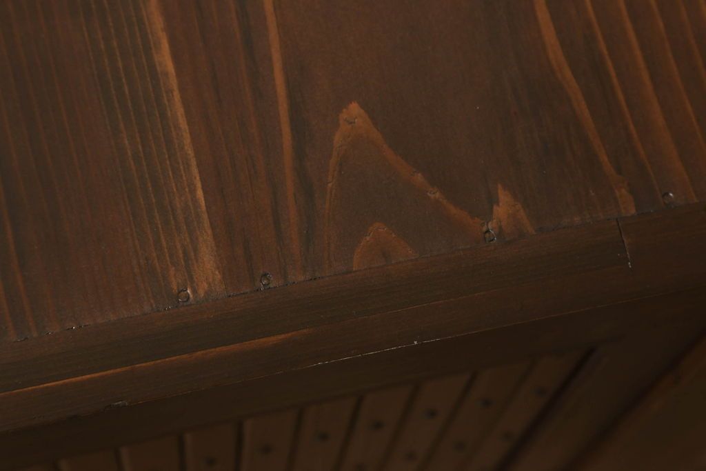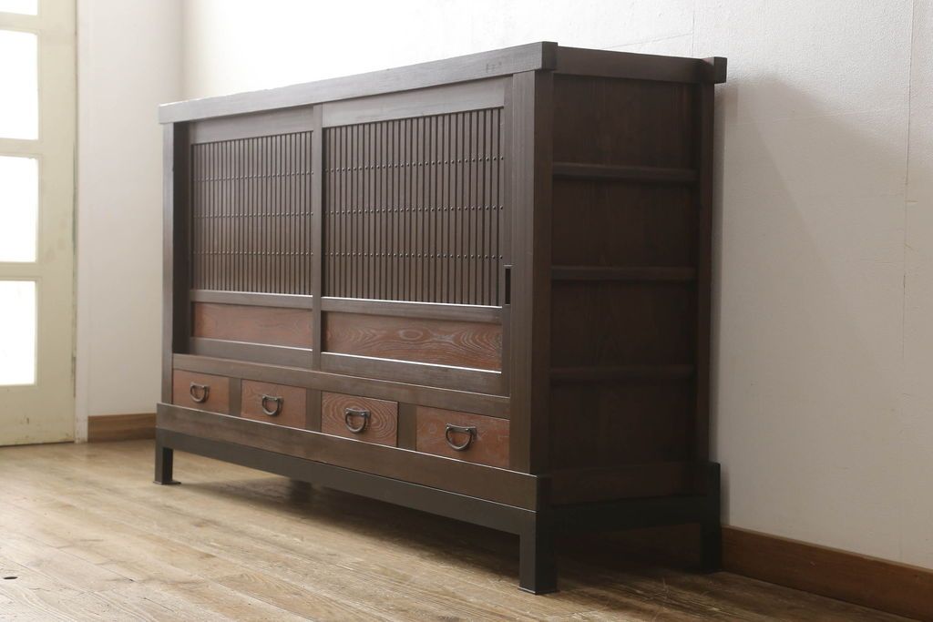 和箪笥> 水屋箪笥 > サイドボードをリペア&カスタム!当店の商品を参考に鉄脚を製作し取り付け。木部は現状の品物に合わせて1トーン程落ち着いた色に着色し、修繕箇所は本体と馴染むよう仕上げ。(水屋箪笥、収納棚、戸棚、サイドボード)