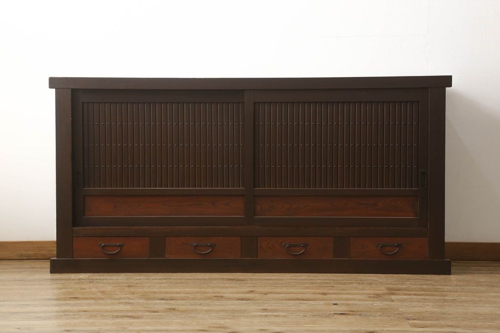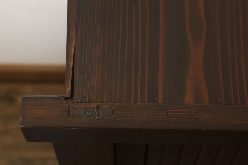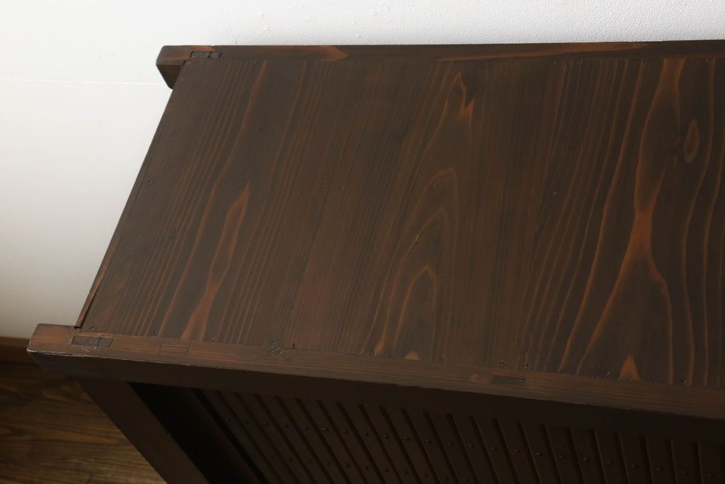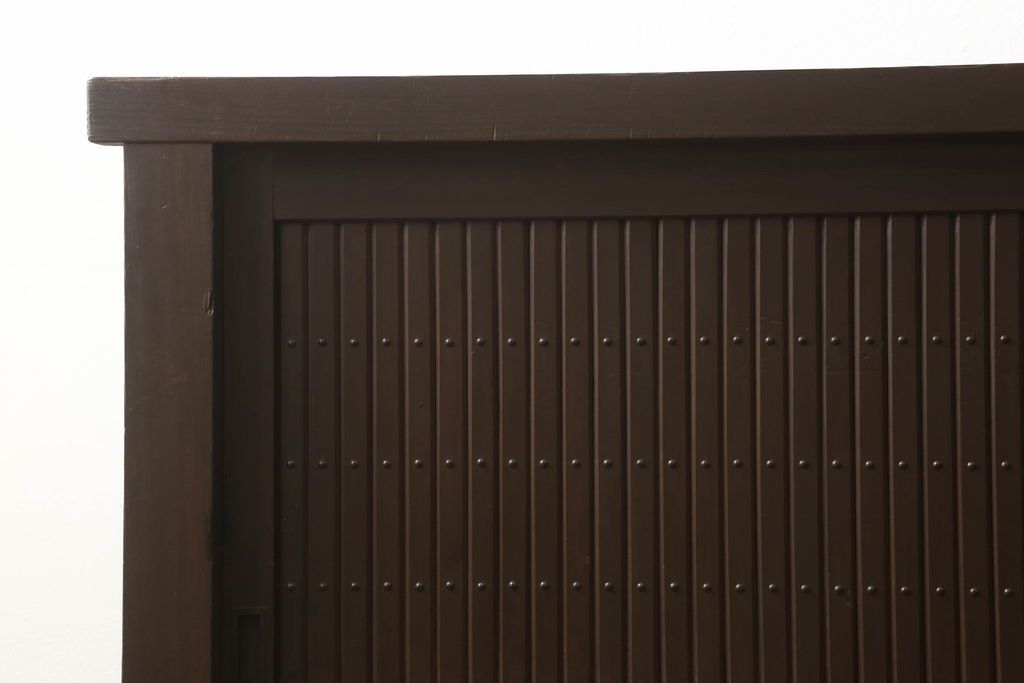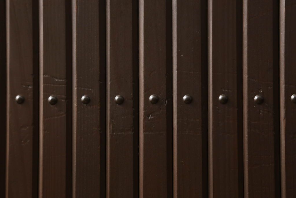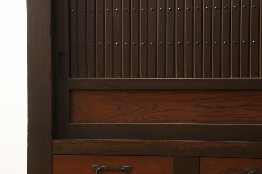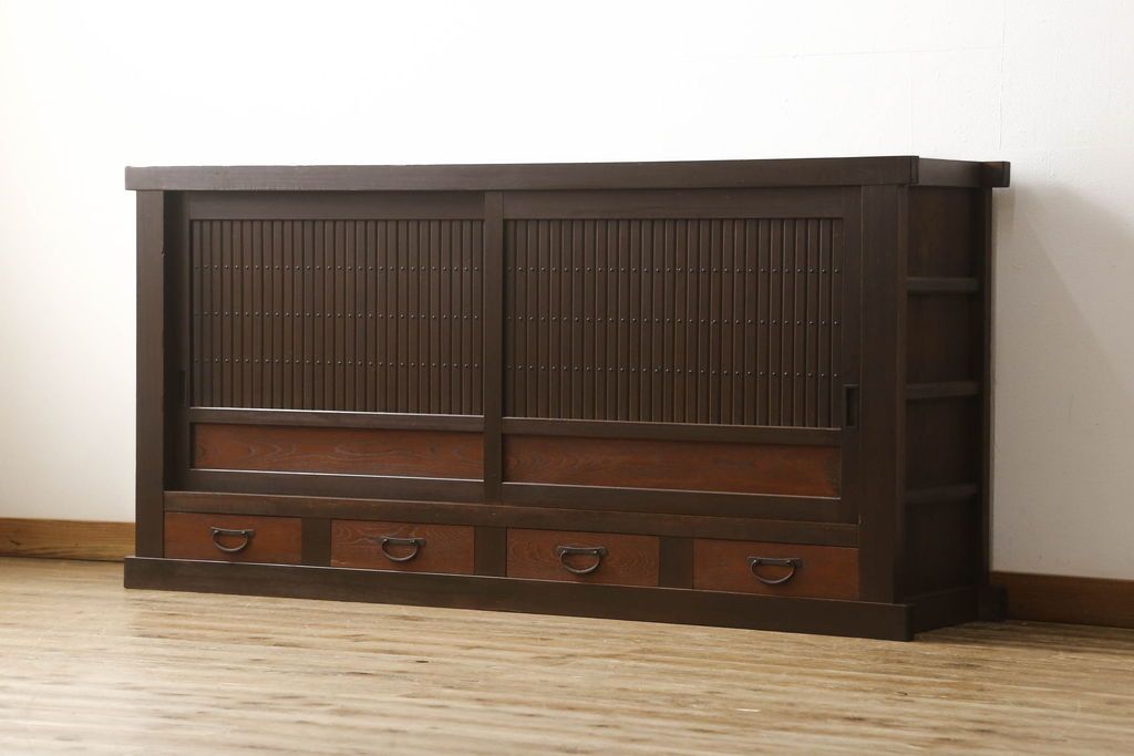 和箪笥> 水屋箪笥 > サイドボードをリペア&カスタム!当店の商品を参考に鉄脚を製作し取り付け。木部は現状の品物に合わせて1トーン程落ち着いた色に着色し、修繕箇所は本体と馴染むよう仕上げ。(水屋箪笥、収納棚、戸棚、サイドボード)