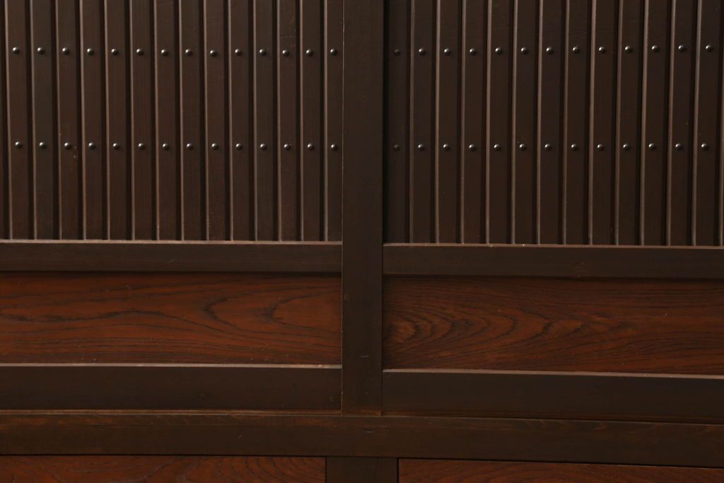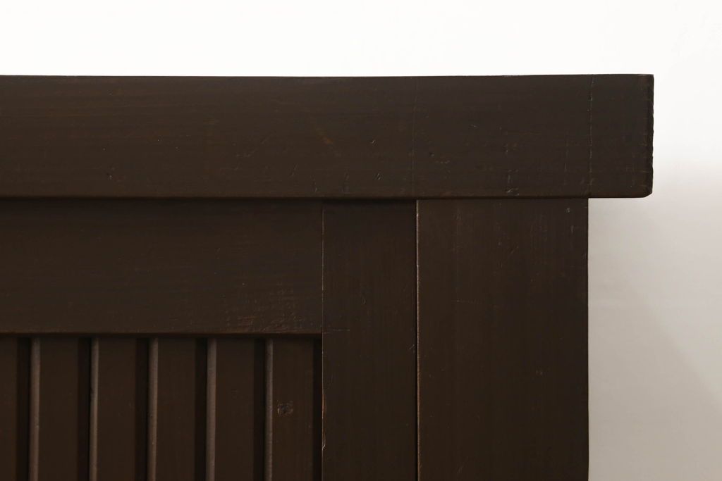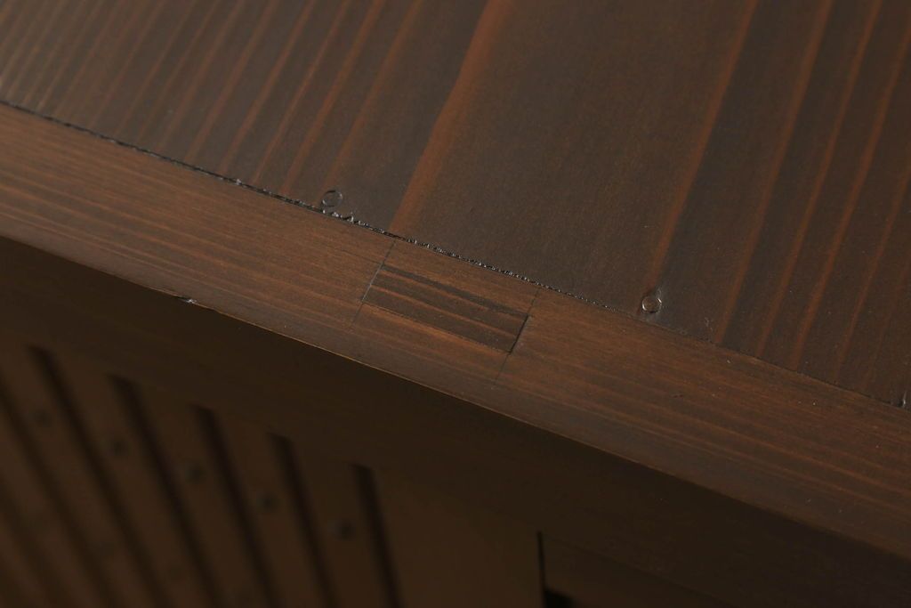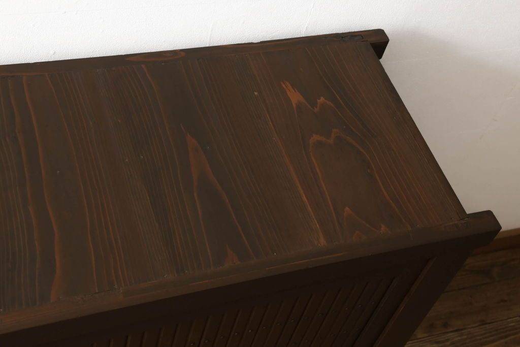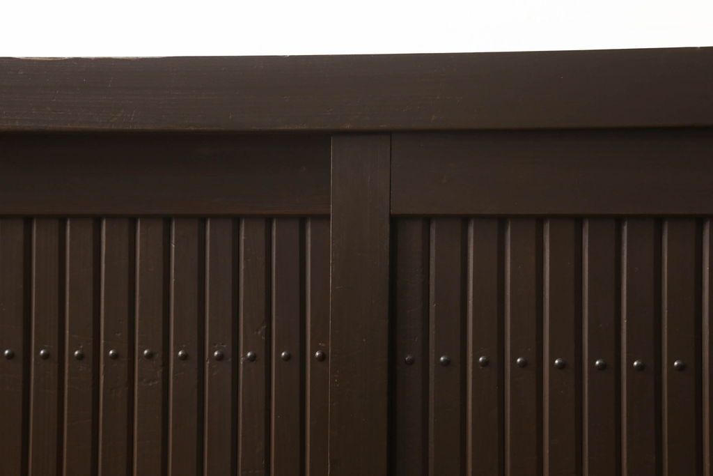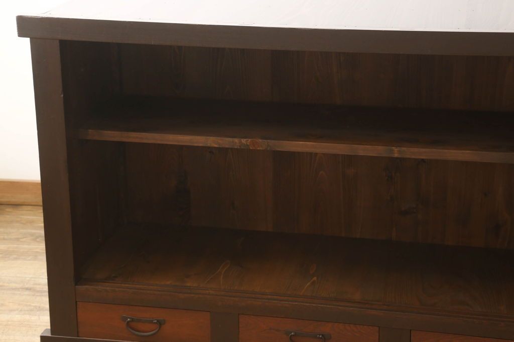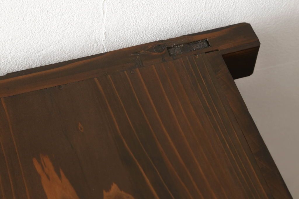和箪笥> 水屋箪笥 > サイドボードをリペア&カスタム!当店の商品を参考に鉄脚を製作し取り付け。木部は現状の品物に合わせて1トーン程落ち着いた色に着色し、修繕箇所は本体と馴染むよう仕上げ。(水屋箪笥、収納棚、戸棚、サイドボード)