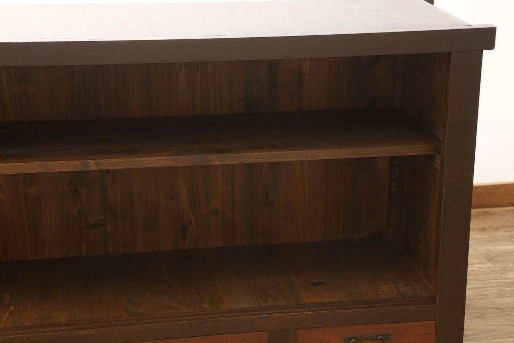 セミオーダー家具実績 > サイドボードをリペア&カスタム!当店の商品を参考に鉄脚を製作し取り付け。木部は現状の品物に合わせて1トーン程落ち着いた色に着色し、修繕箇所は本体と馴染むよう仕上げ。(水屋箪笥、収納棚、戸棚、サイドボード)