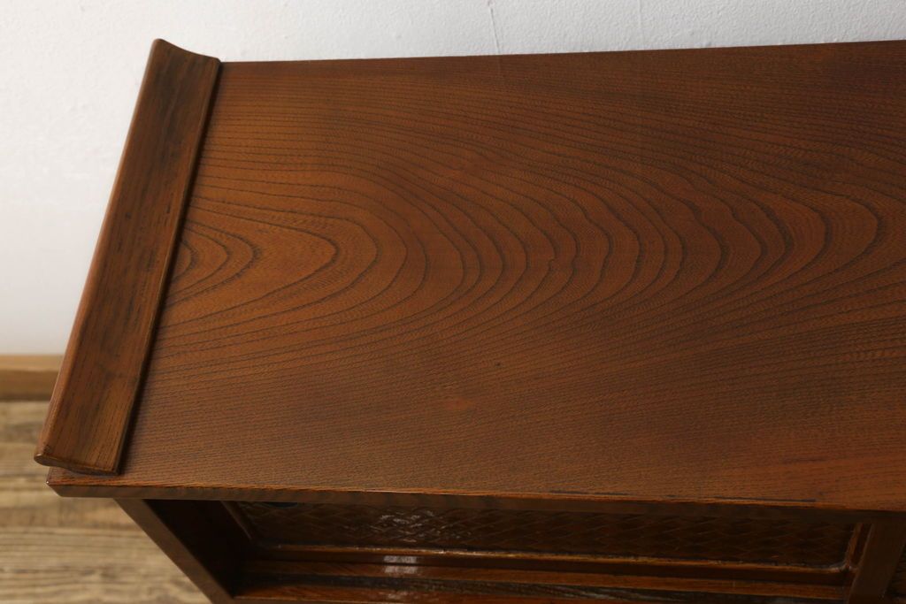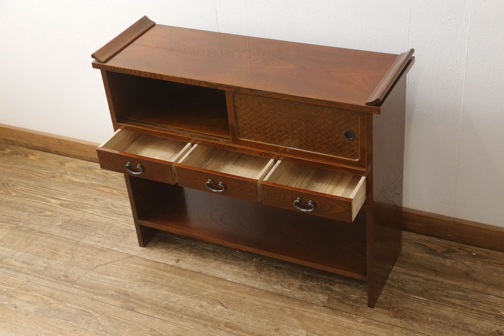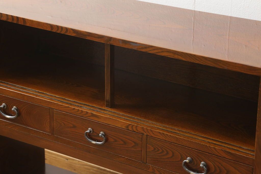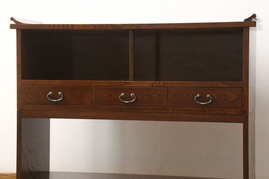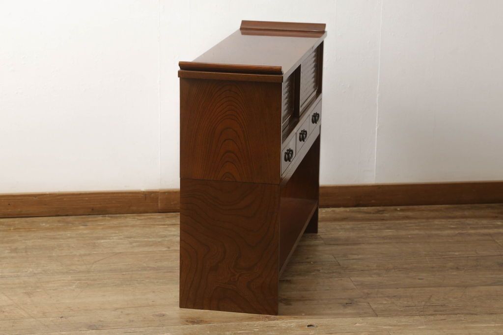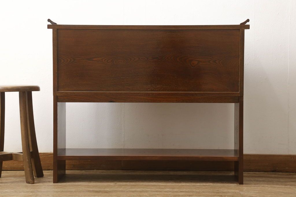 民芸家具 > 置き床をリペア&カスタム!お客様ご希望のデザインを参考に脚を製作し取り付け。色味はカシュー漆にて仕上げ。 (ローボード、テレビ台、戸棚、収納棚、飾り台)