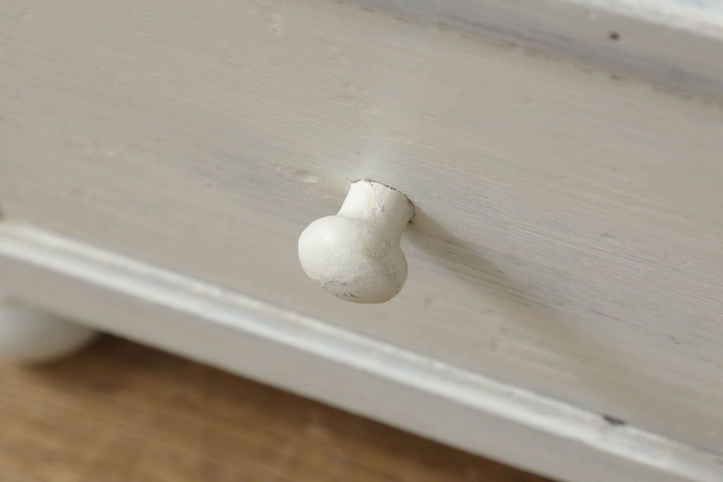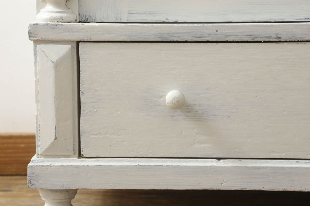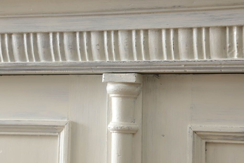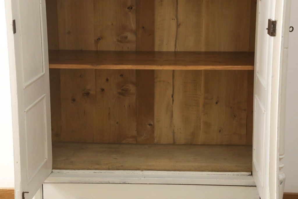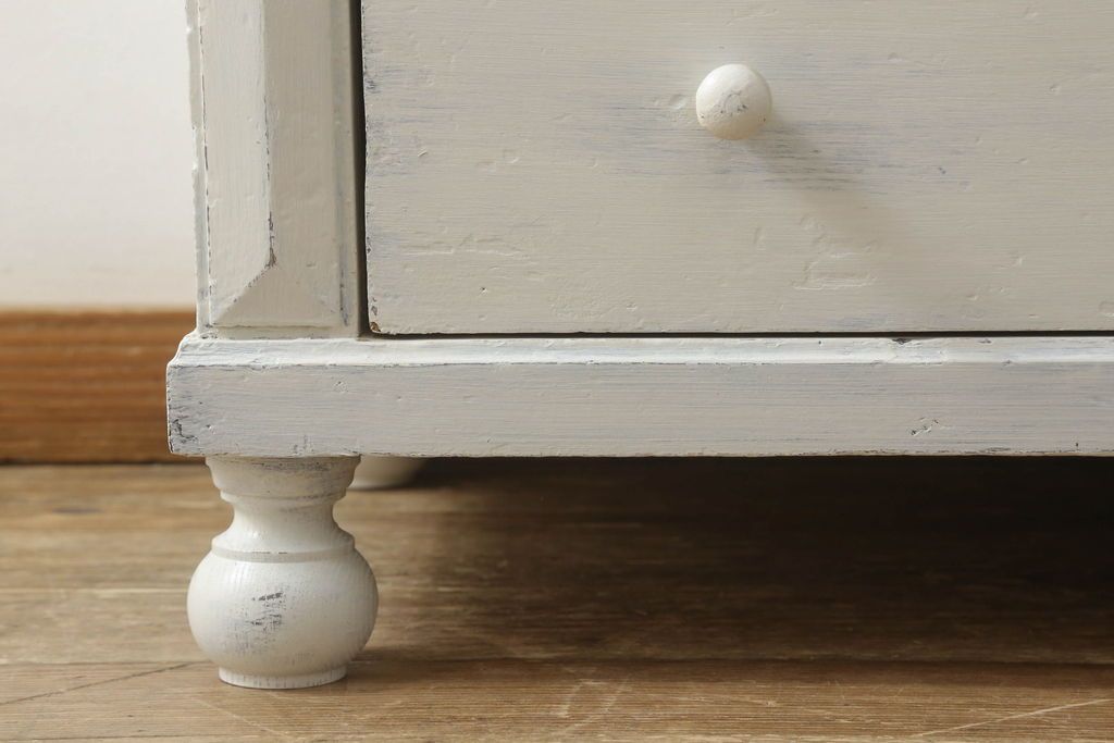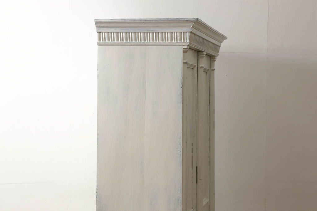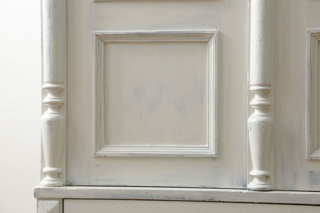 セミオーダー家具実績 > ワードローブをリペア&カスタム!木製脚 ・ハンガーポールを取り付け、開閉用の鍵を製作。既存の棚板は近しい色味で再着色し、本体はアンティークホワイトにペイント。(洋服タンス、収納棚、キャビネット、引き出し)