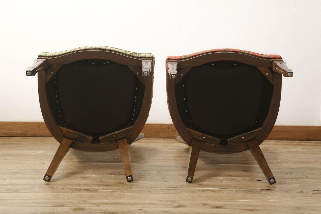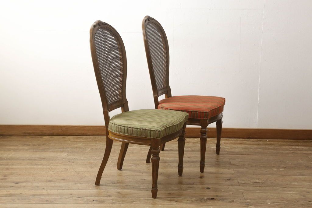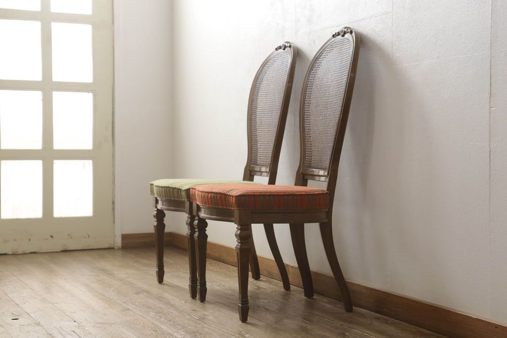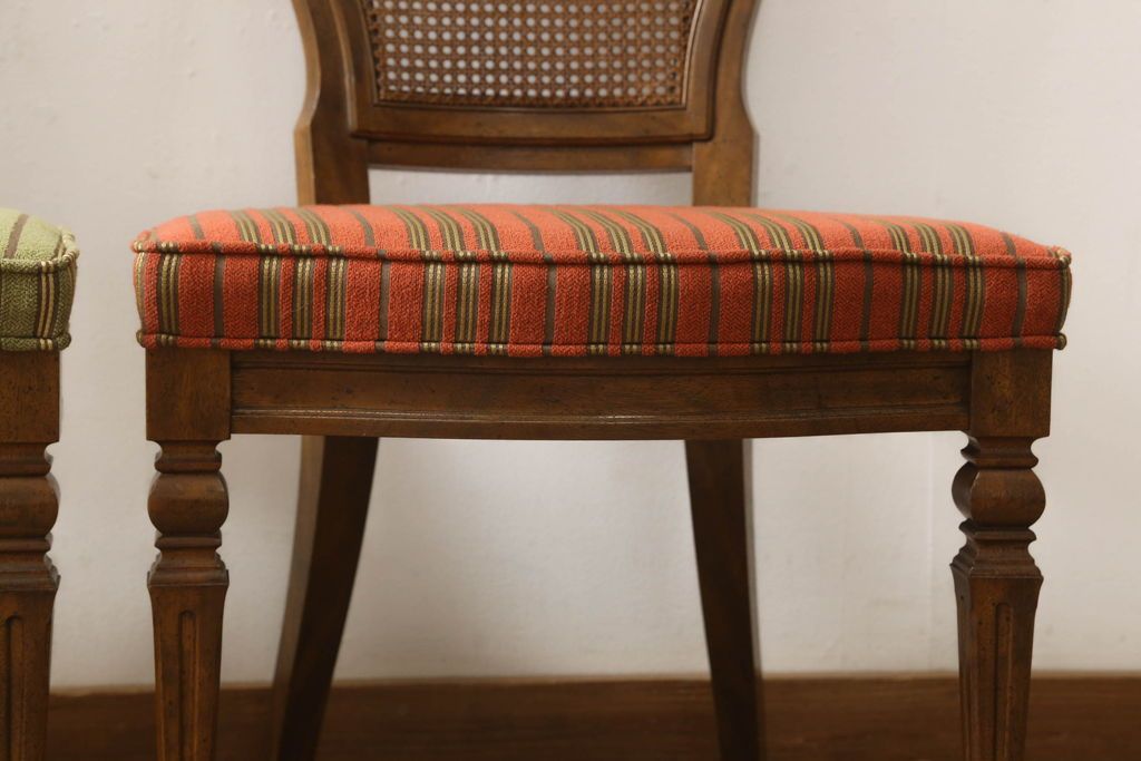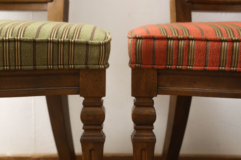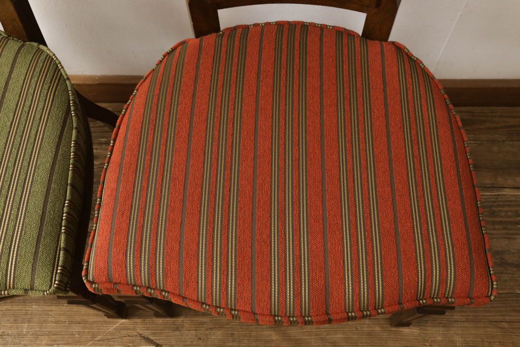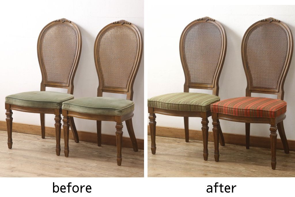 ダイニングチェア2脚をリペア&カスタム!それぞれ1脚ずつご希望の生地で座面を張り替え。(椅子、イス)