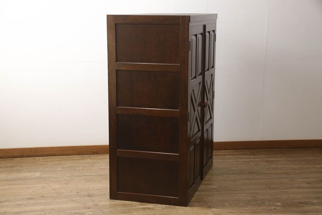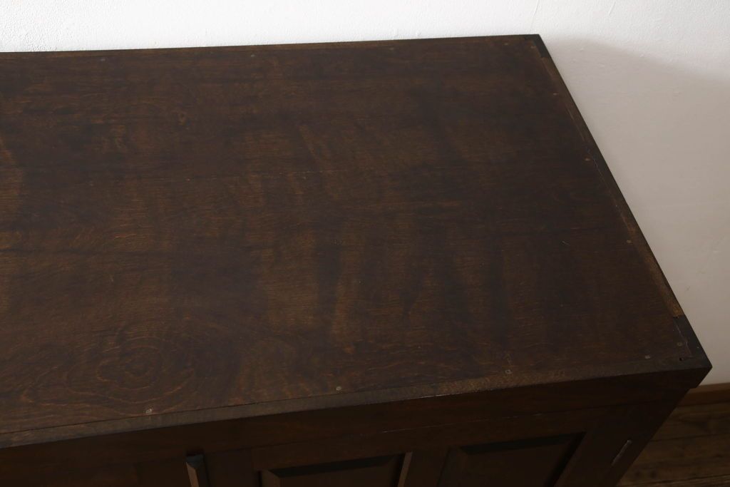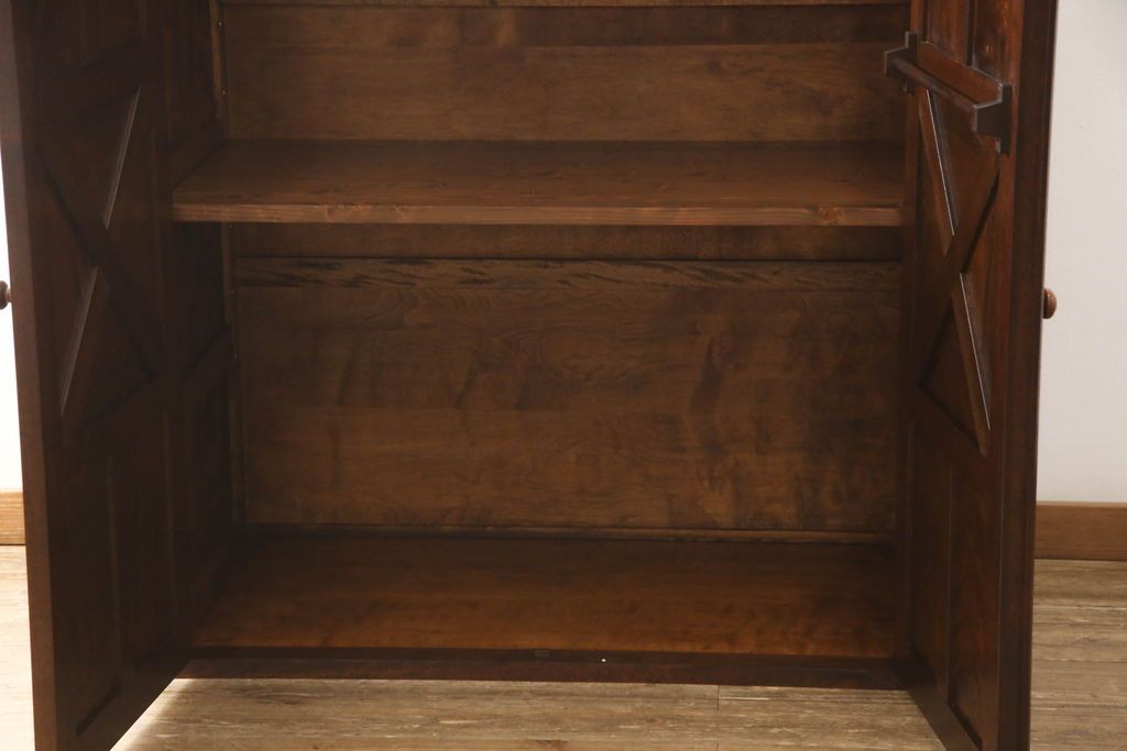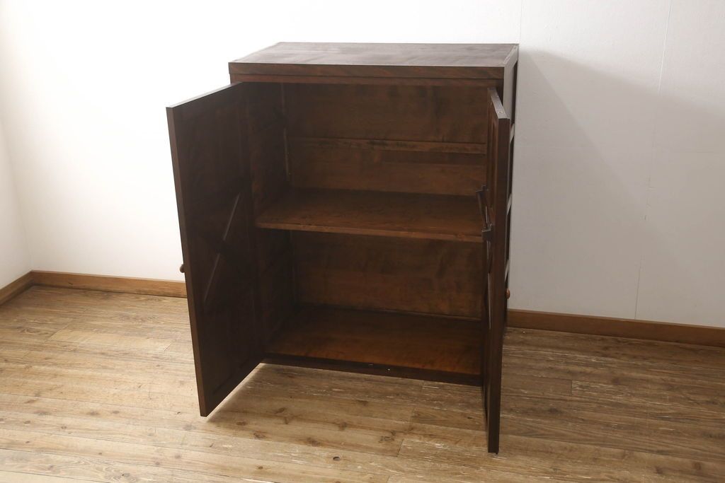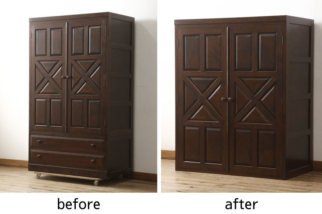 民芸家具 > 収納棚をリペア&カスタム!上段を使用し、棚板1枚を新規製作し、棚受けは棚ダボ仕様に。本体は現状をベースにして1トーン程落ち着いた色味に着色し、修繕箇所は本体と馴染むように。(靴箱、下駄箱、キャビネット、ワードローブ)