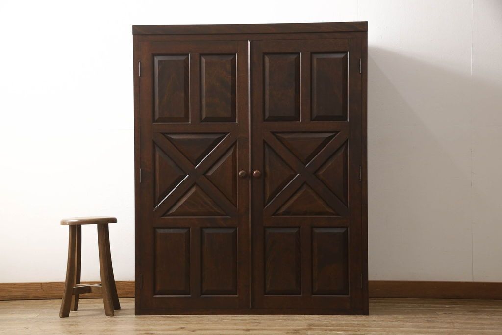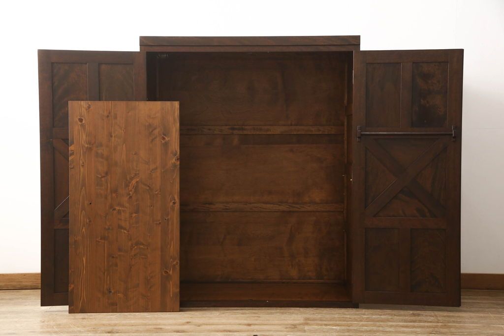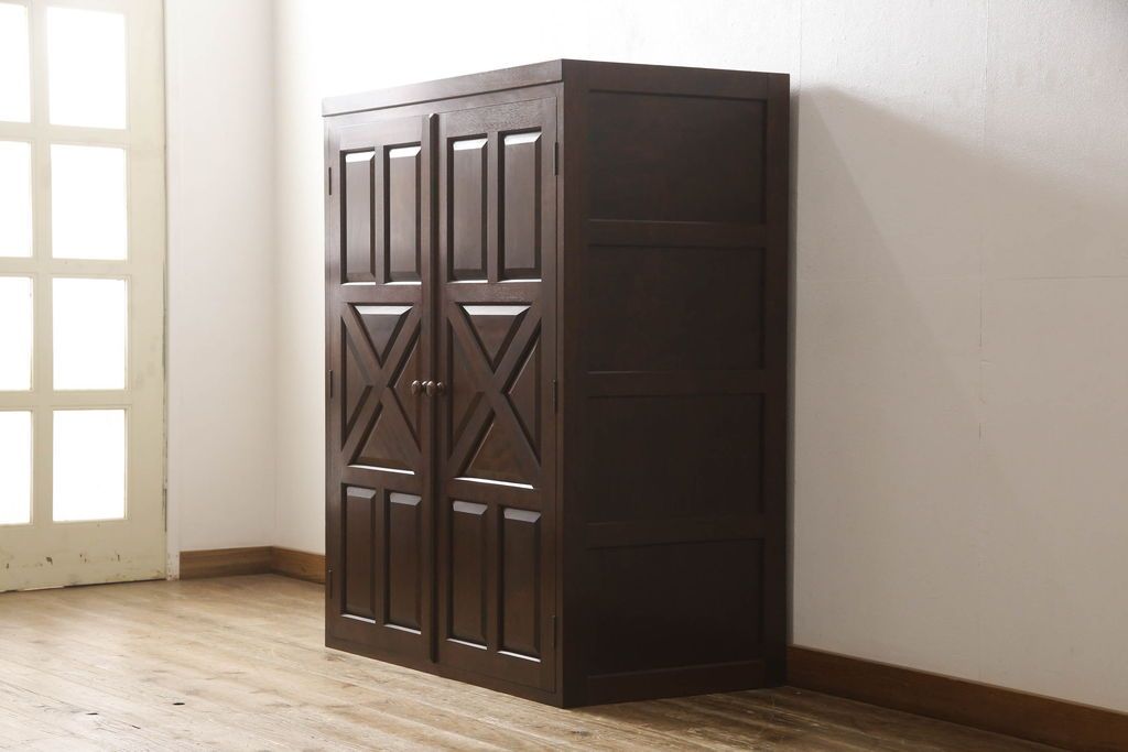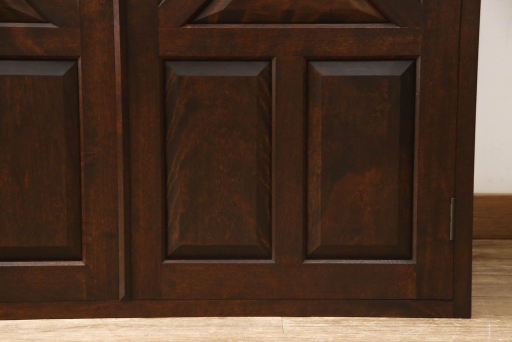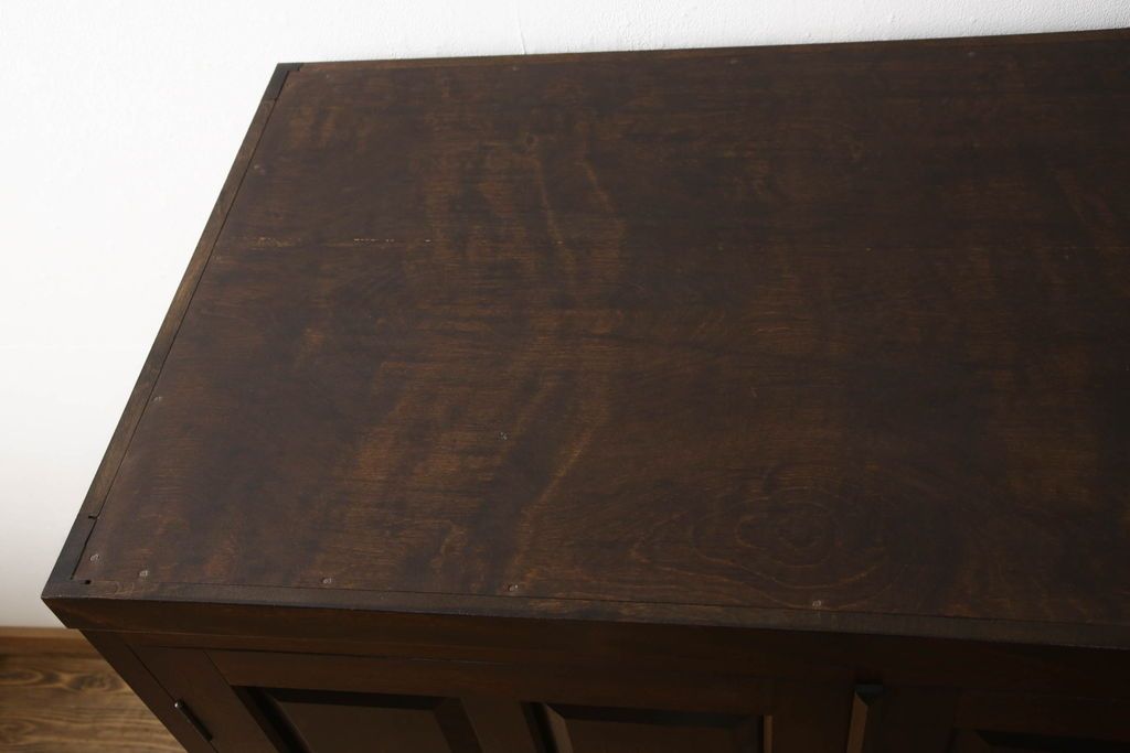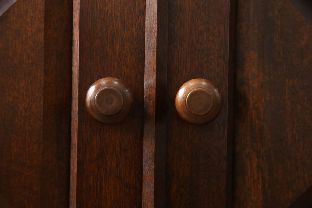 民芸家具 > 収納棚をリペア&カスタム!上段を使用し、棚板1枚を新規製作し、棚受けは棚ダボ仕様に。本体は現状をベースにして1トーン程落ち着いた色味に着色し、修繕箇所は本体と馴染むように。(靴箱、下駄箱、キャビネット、ワードローブ)