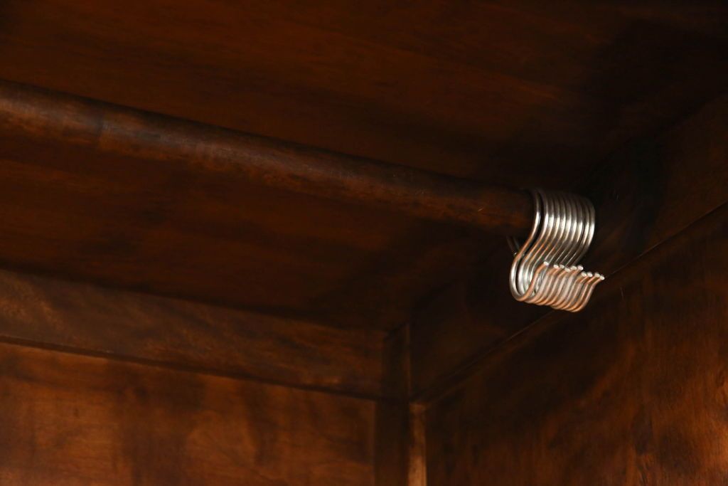 ワードローブ・ロッカー> ワードローブ > 収納棚をリペア&カスタム!上段を使用し、棚板1枚を新規製作し、棚受けは棚ダボ仕様に。本体は現状をベースにして1トーン程落ち着いた色味に着色し、修繕箇所は本体と馴染むように。(靴箱、下駄箱、キャビネット、ワードローブ)