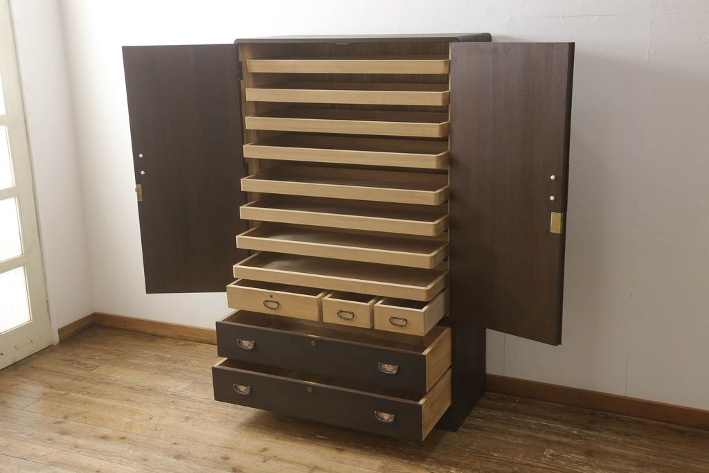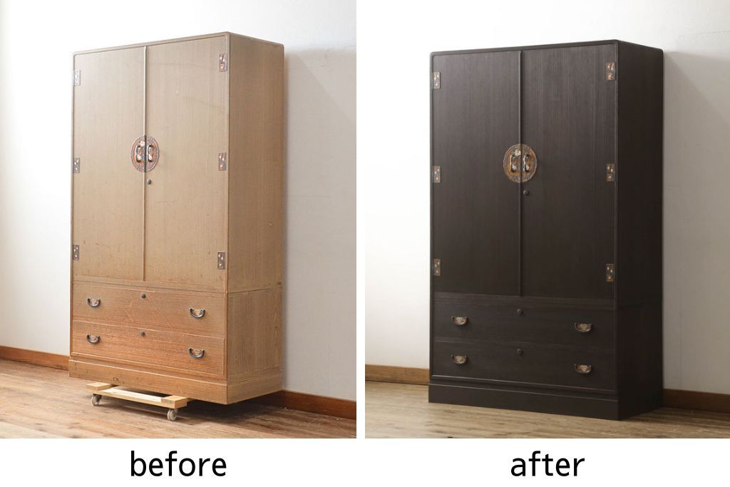 セミオーダー家具実績 > 春日部桐箪笥をリペア&カスタム!内部は着色せず、本体外側はチェスナット系に着色。(桐たんす、和タンス、着物箪笥、衣装箪笥、引き出し、チェスト、並厚)
