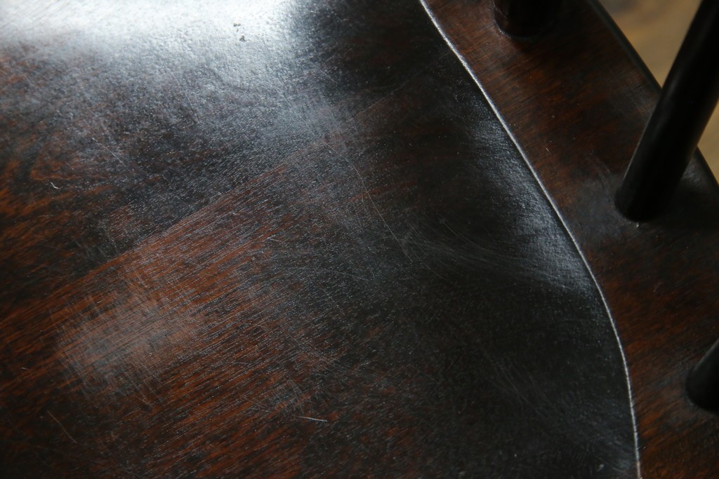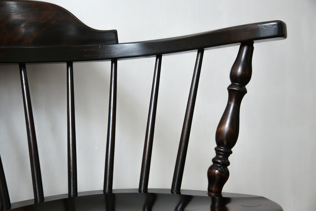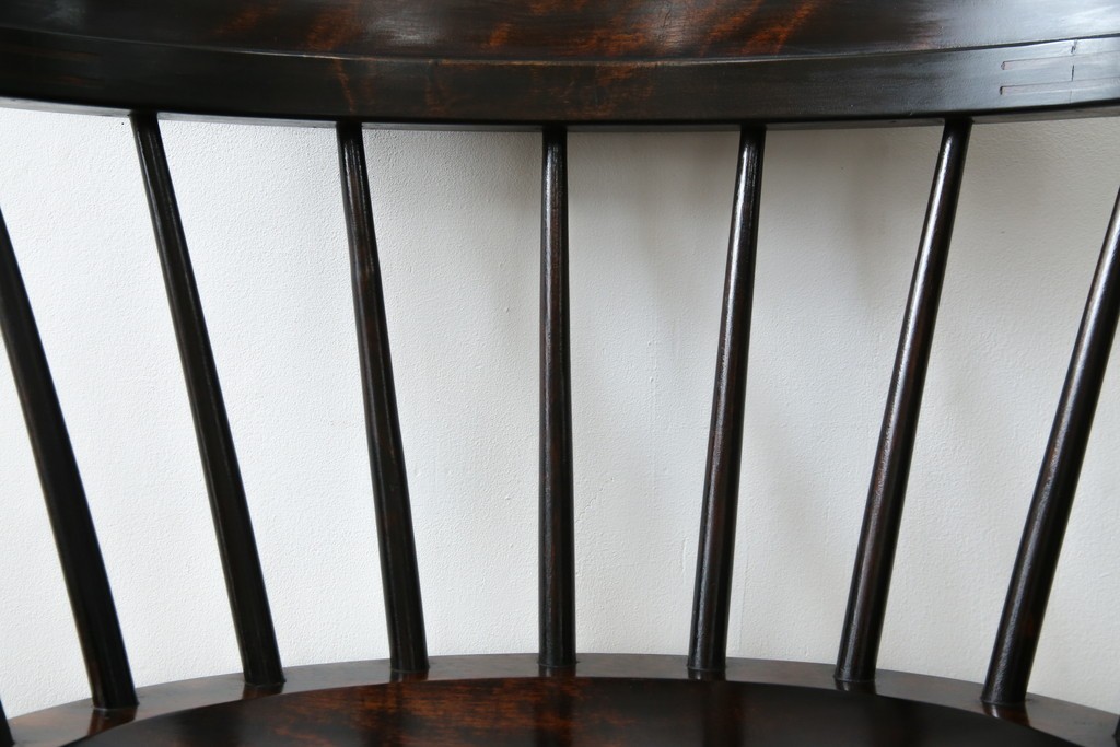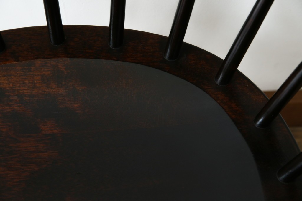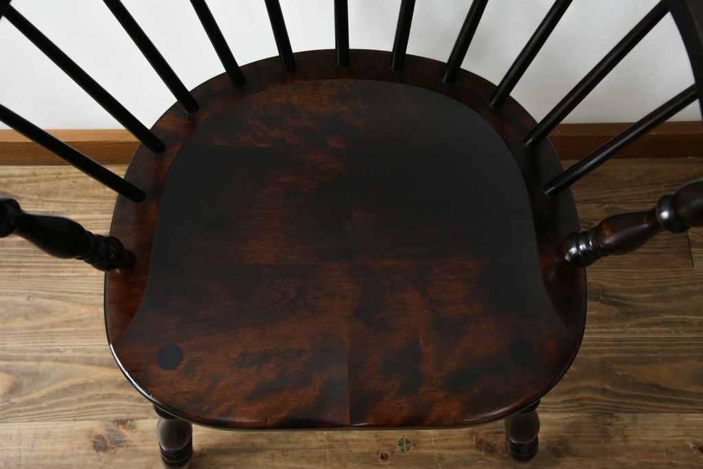 細身のスポークバックや挽き物加工の脚が魅力的で、品の良さを感じる逸品です。