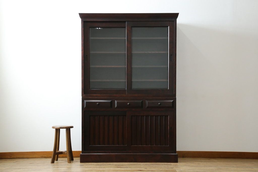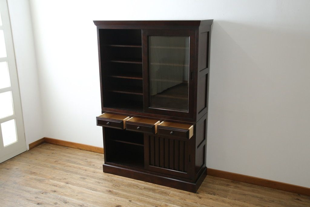中古 美品 国産民芸家具 和モダンな空間づくりにも活躍するキャビネット(食器棚、飾り棚、収納棚、戸棚、カップボード)(R-073743)