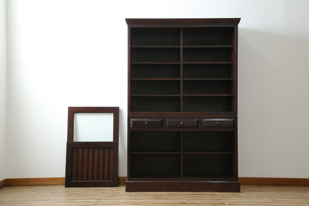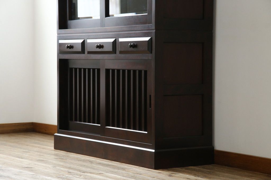 ラフジュ工房> 民芸家具 > 中古 美品 国産民芸家具 和モダンな空間づくりにも活躍するキャビネット(食器棚、飾り棚、収納棚、戸棚、カップボード)(R-073743)