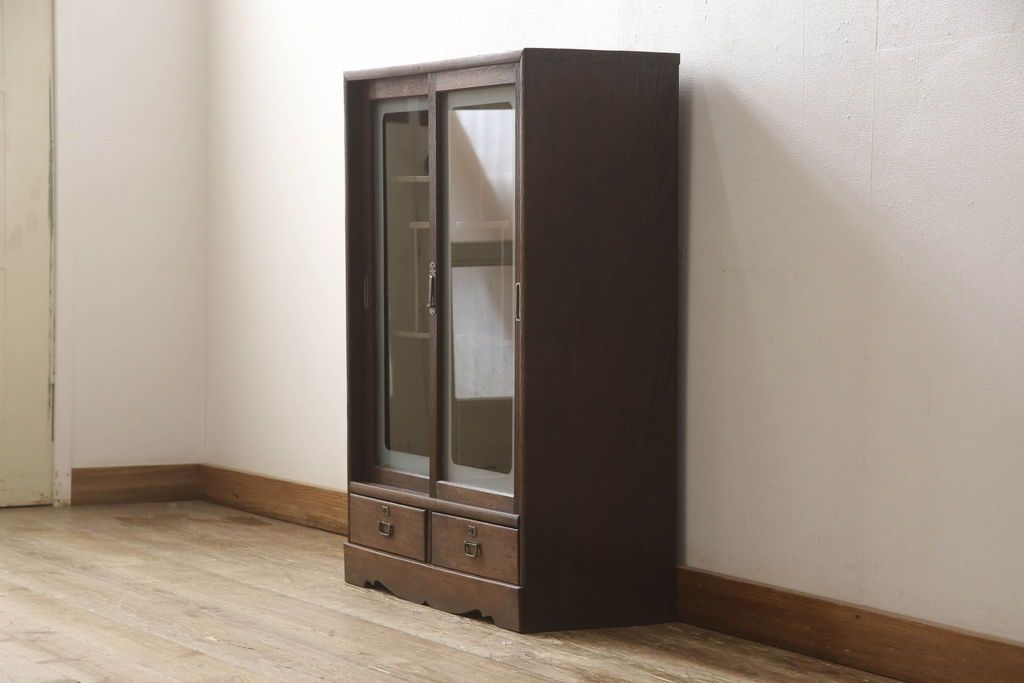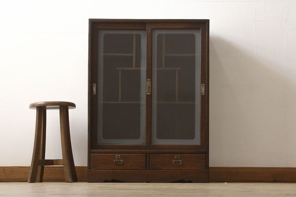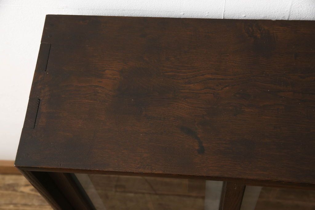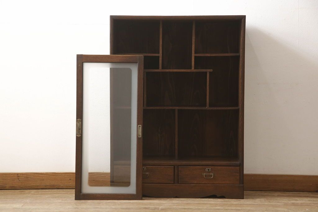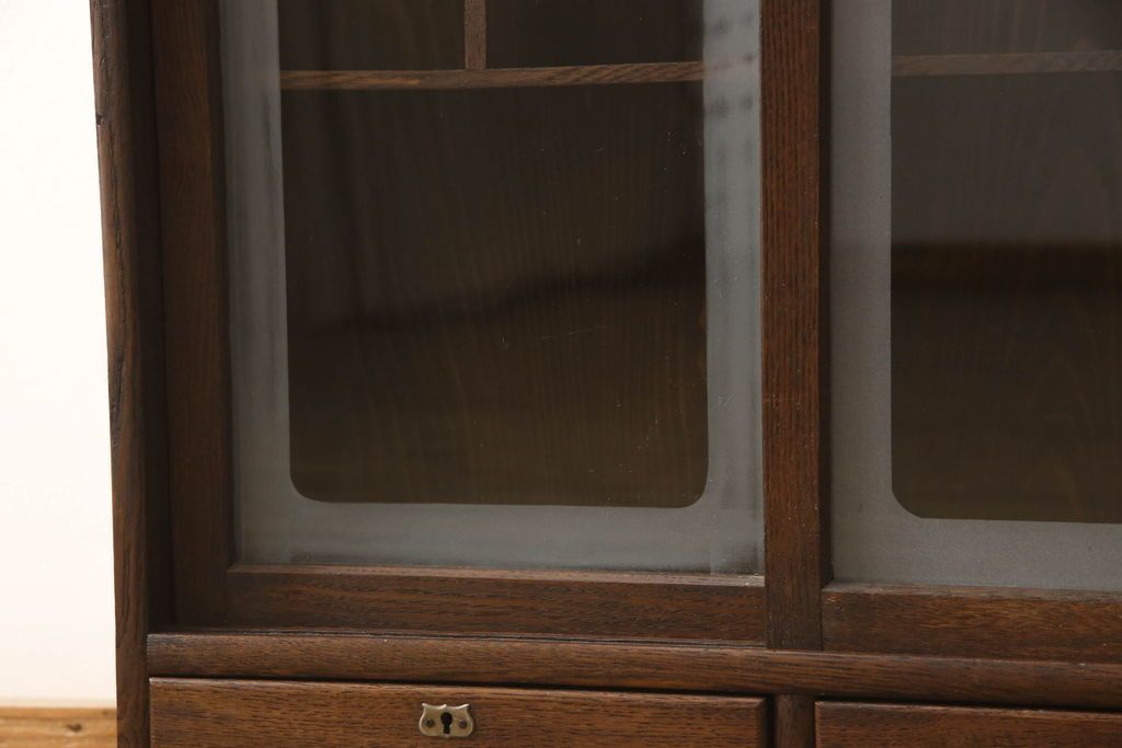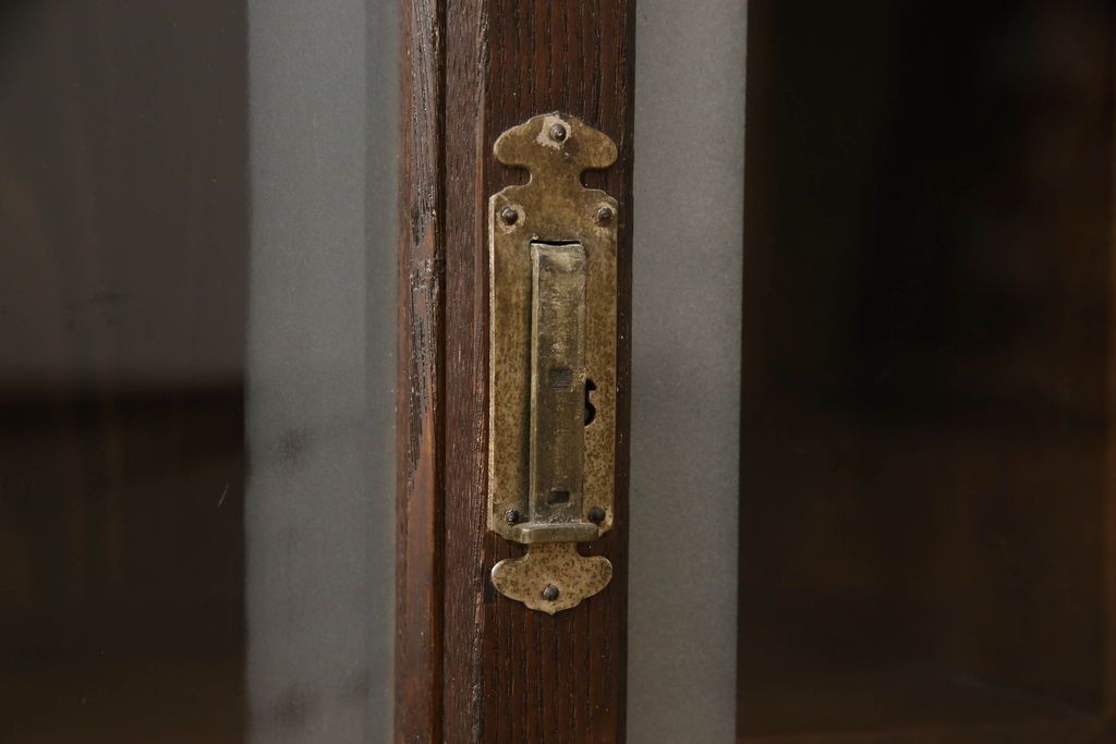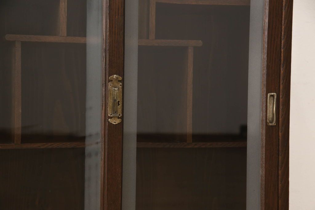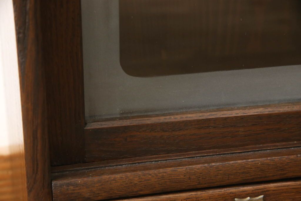 セミオーダー家具実績 > ガラス戸棚をリペア&カスタム!取っ手は似た雰囲気のものに交換。木部は現状の品物に合わせて1トーン程落ち着いた色に着色し、内部棚板・修繕箇所は本体と馴染むように。(飾り棚、収納棚、キャビネット)
