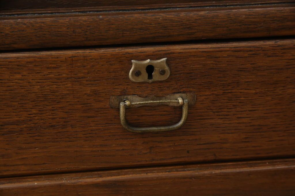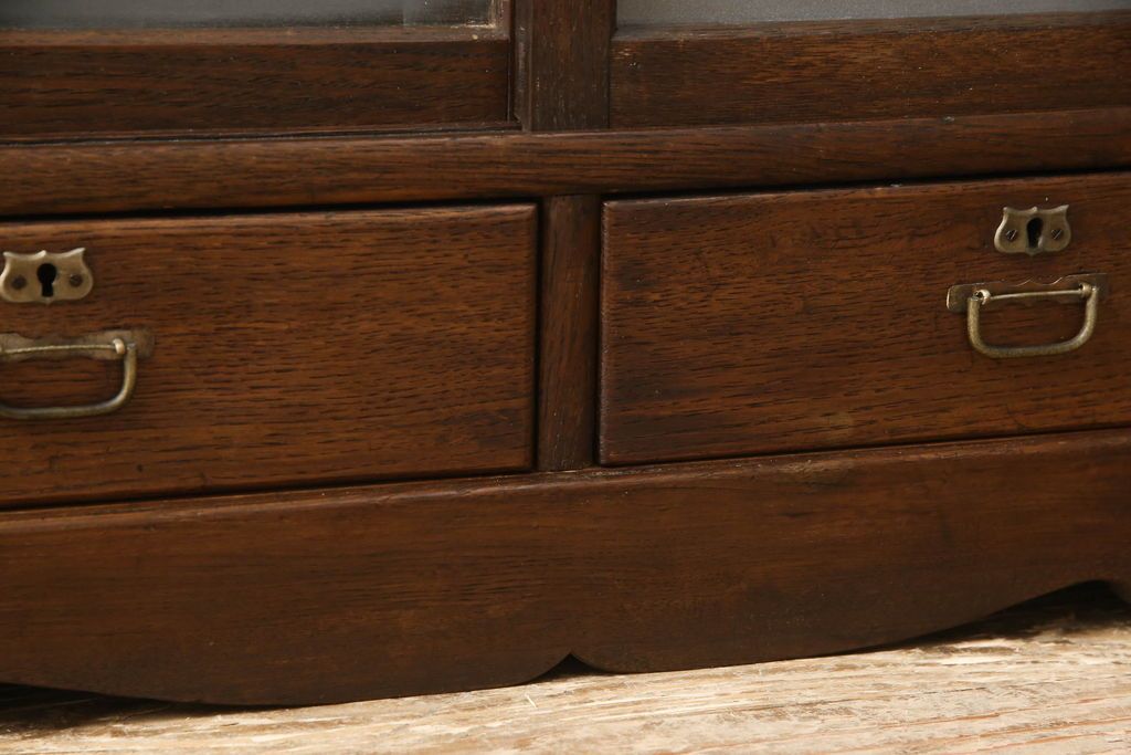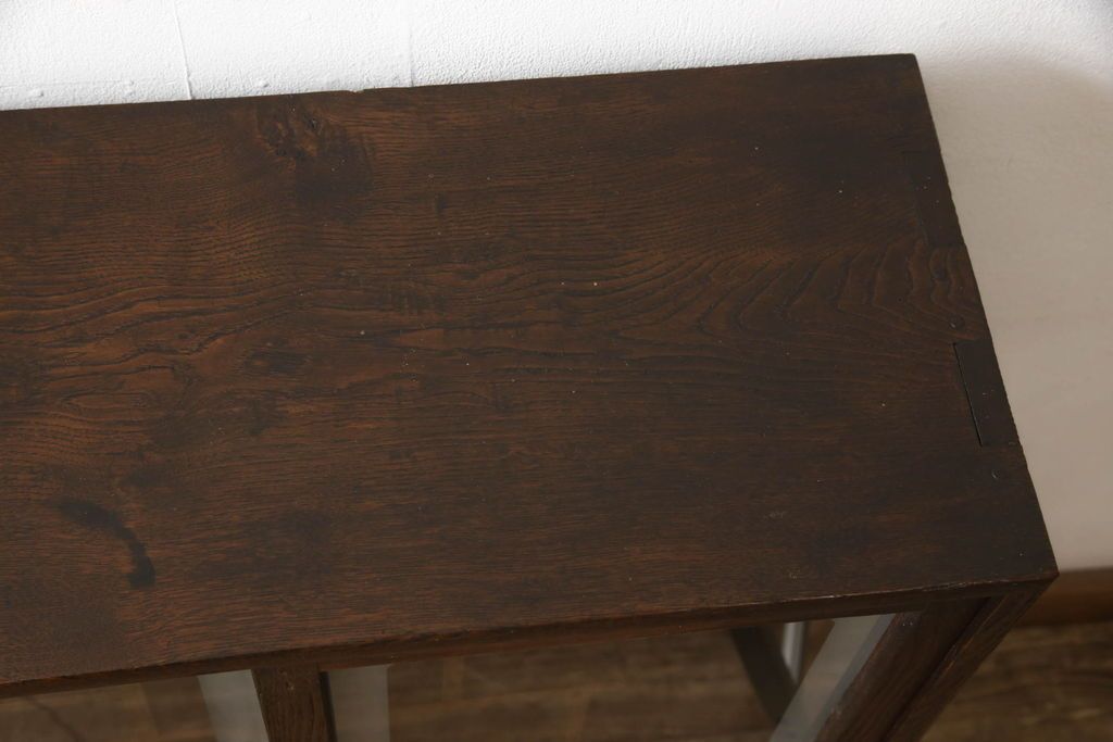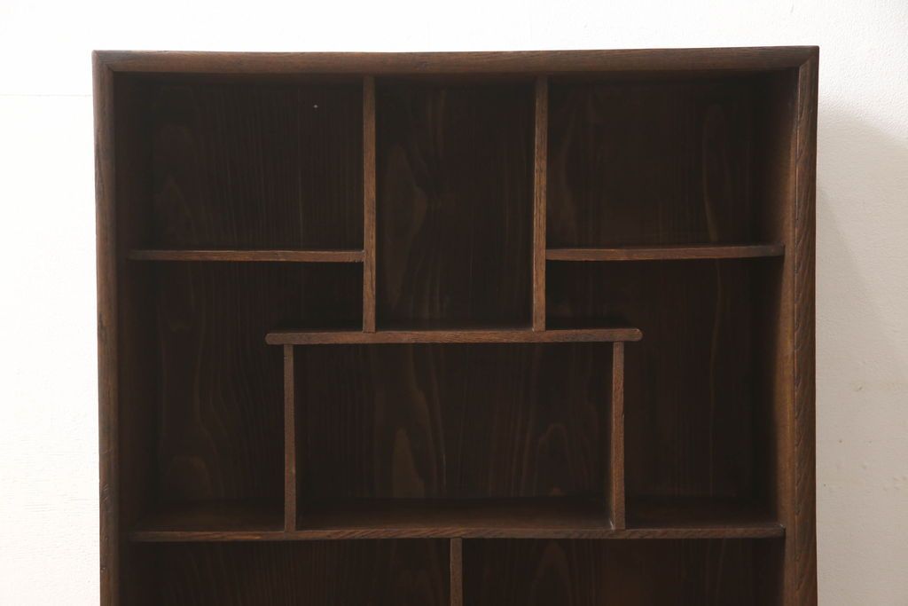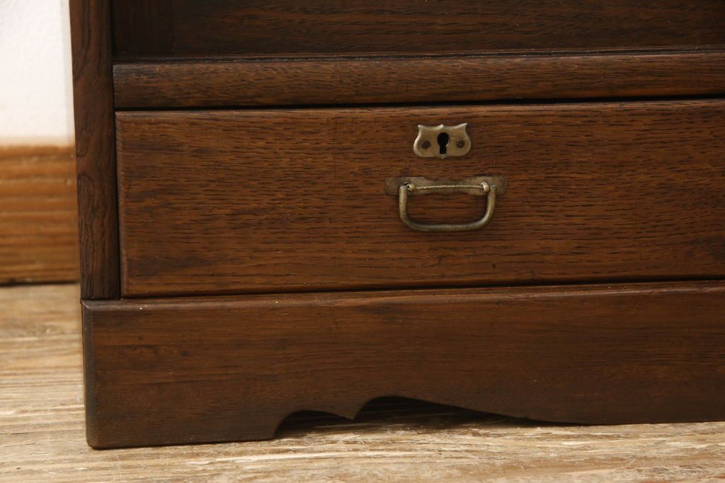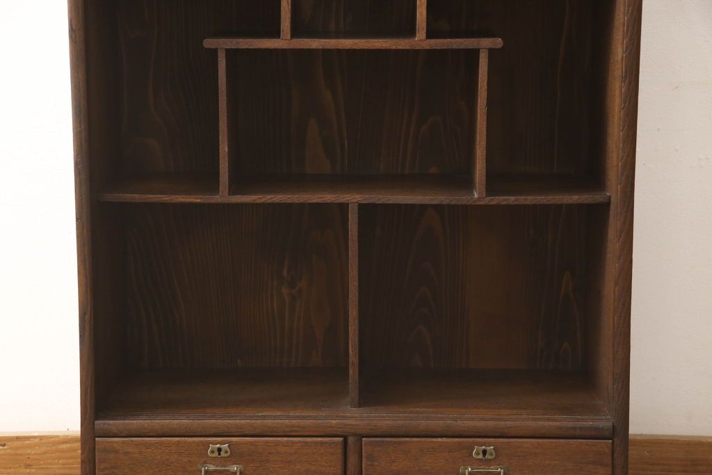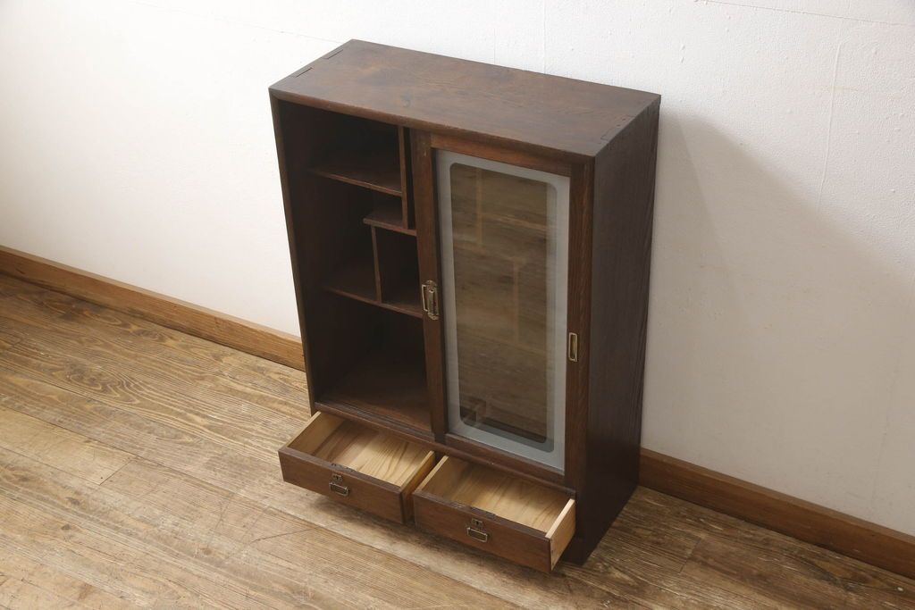 セミオーダー家具実績 > ガラス戸棚をリペア&カスタム!取っ手は似た雰囲気のものに交換。木部は現状の品物に合わせて1トーン程落ち着いた色に着色し、内部棚板・修繕箇所は本体と馴染むように。(飾り棚、収納棚、キャビネット)