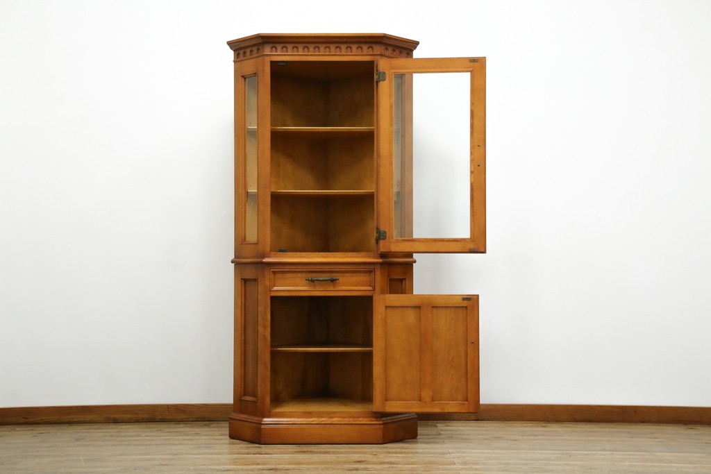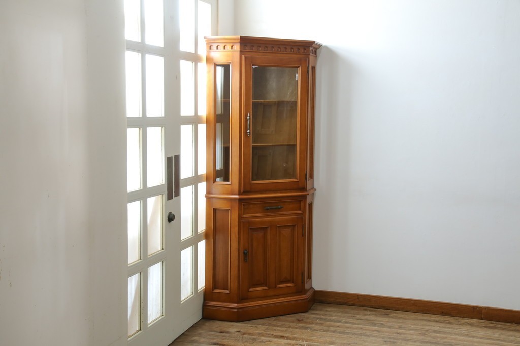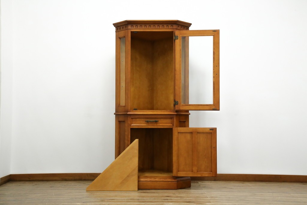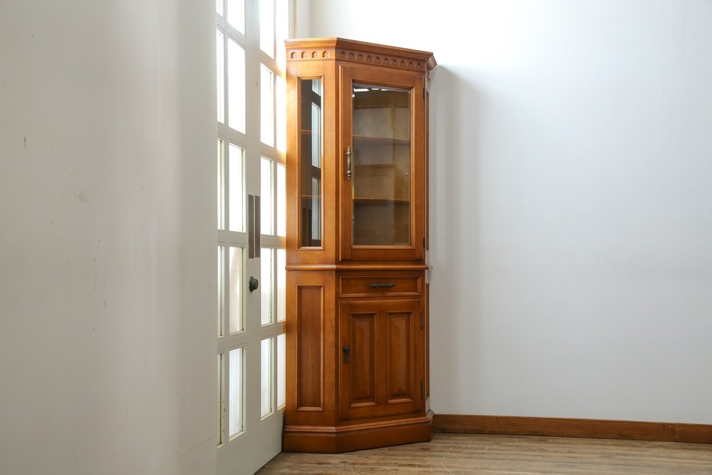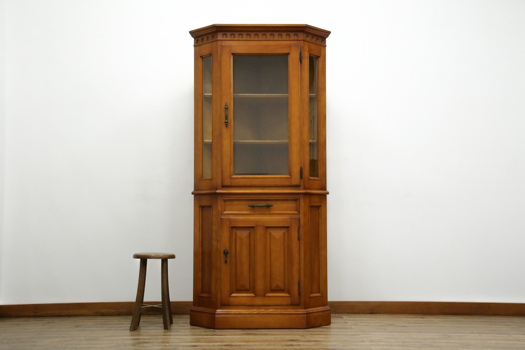 中古 美品 横浜ダニエル(daniel) 品のある佇まいが魅力的なコーナーキャビネット(コーナーラック、飾り棚、陳列棚、食器棚、カップボード)(R-073796)