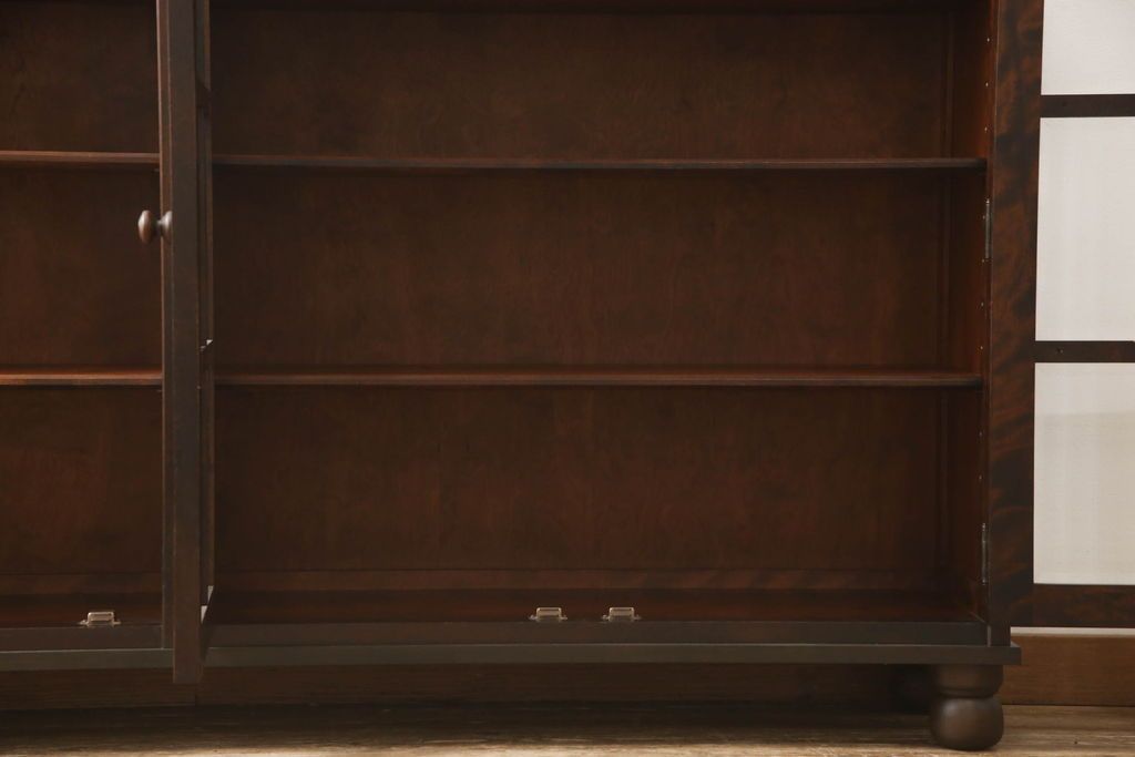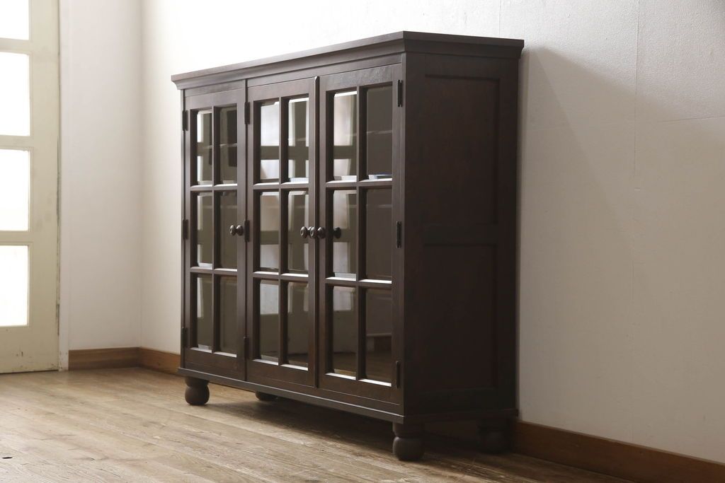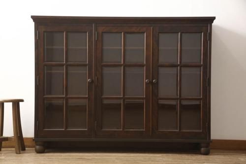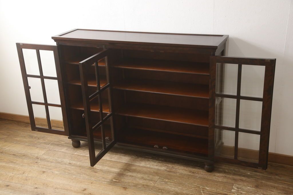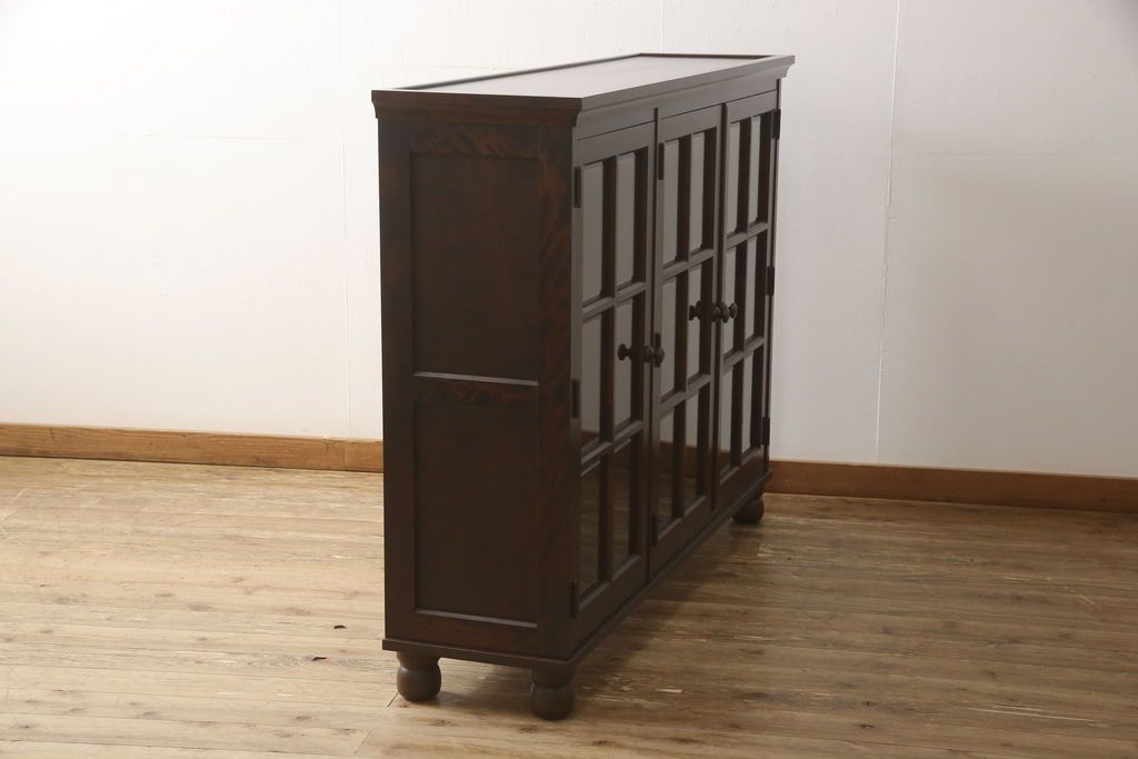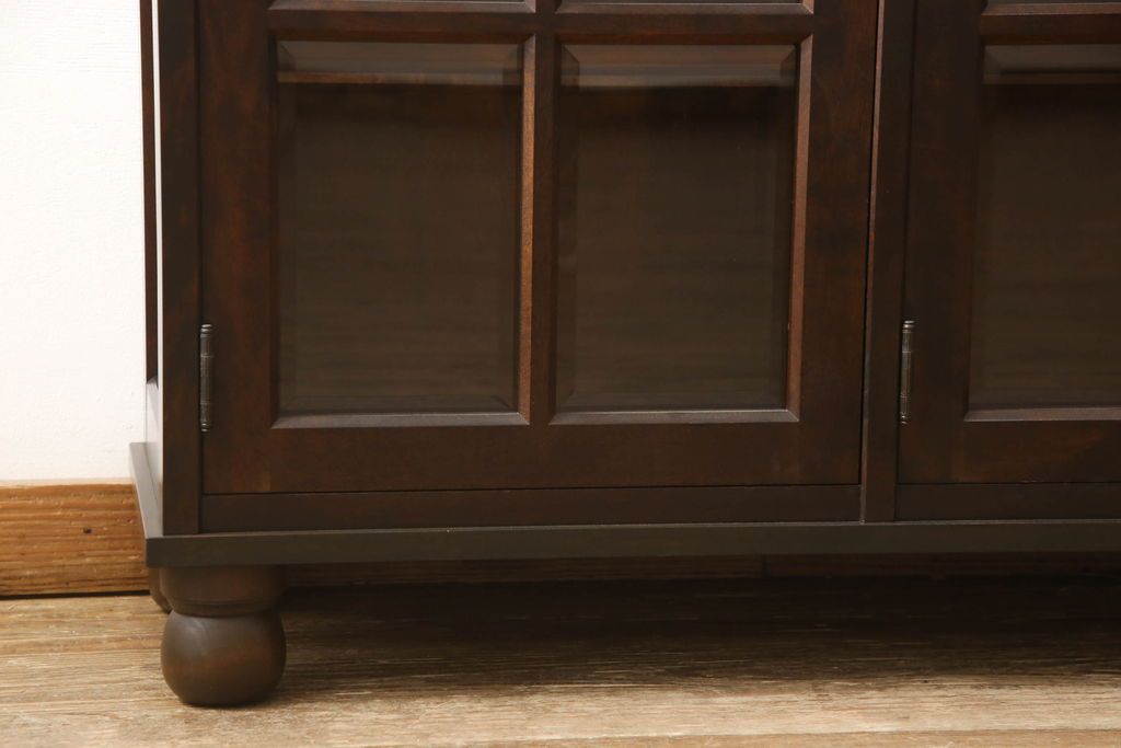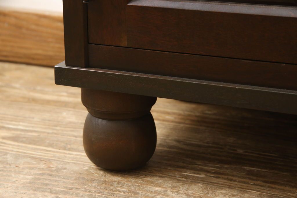 民芸家具 > キャビネットをリペア&カスタム!木製の脚を取り付け、本体は現状をベースにして1トーン程落ち着いた色味に着色して仕上げ。(食器棚、カップボード、飾り棚、収納棚、本箱、ブックケース、サイドボード、サイドキャビネット)