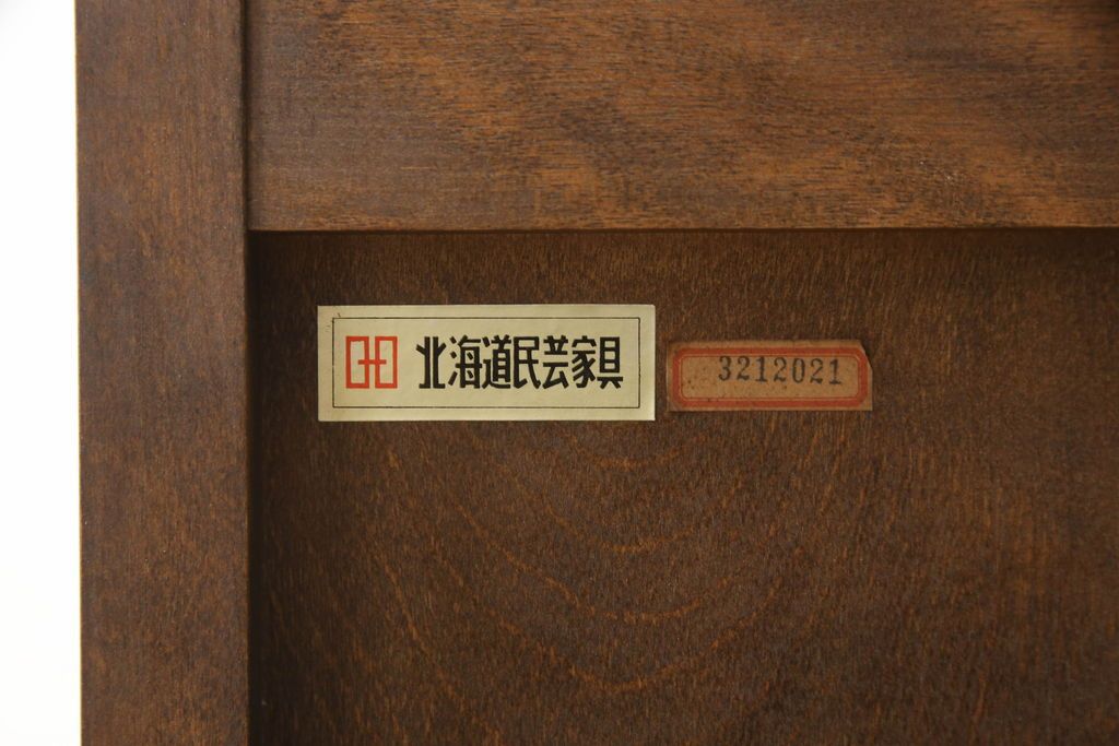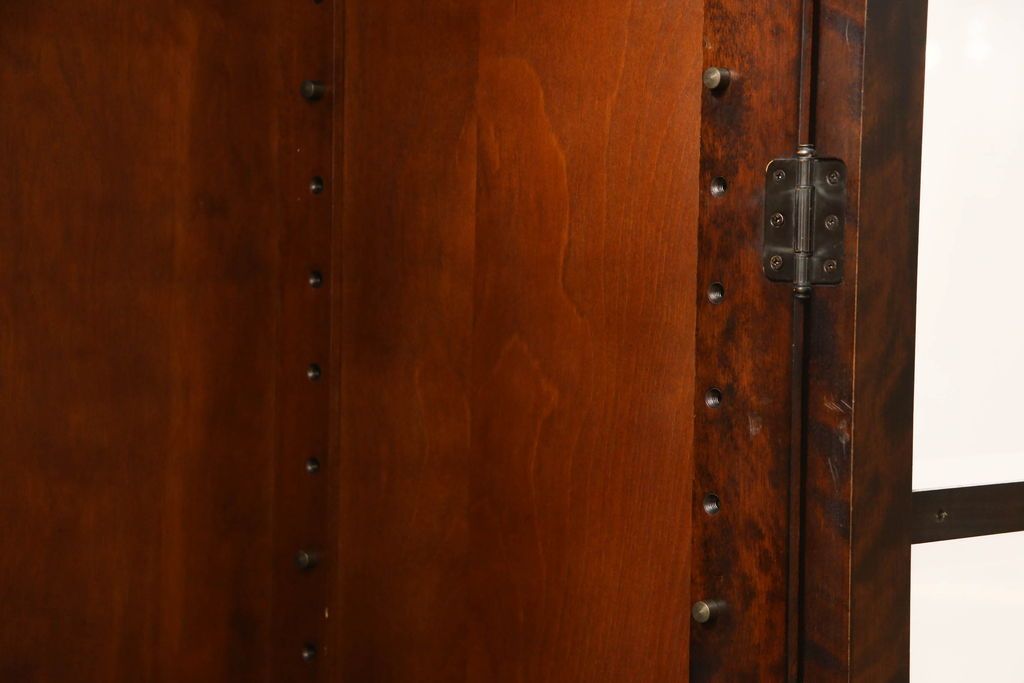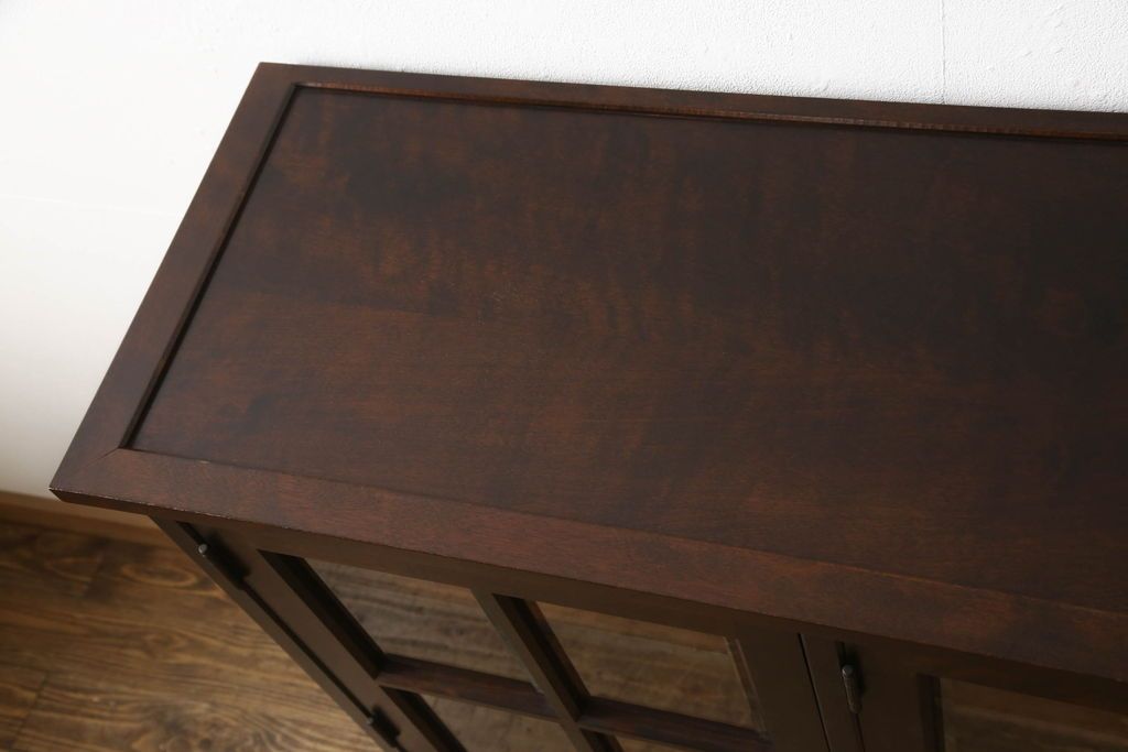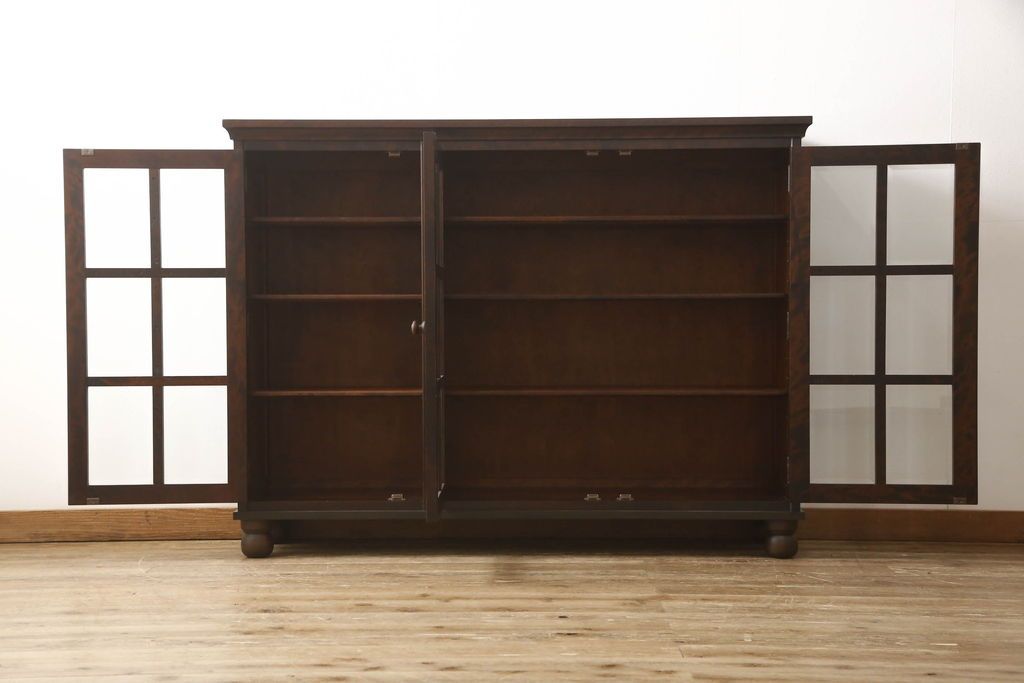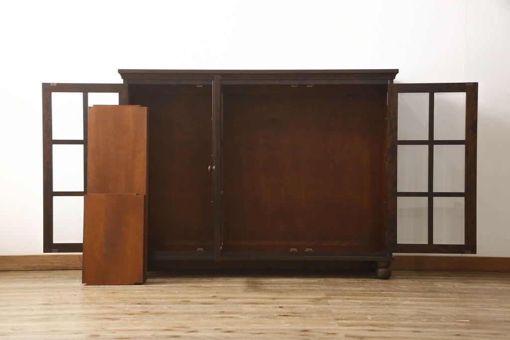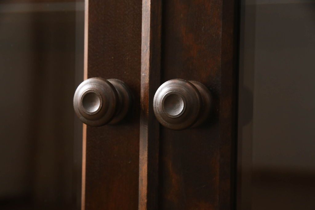 民芸家具 > キャビネットをリペア&カスタム!木製の脚を取り付け、本体は現状をベースにして1トーン程落ち着いた色味に着色して仕上げ。(食器棚、カップボード、飾り棚、収納棚、本箱、ブックケース、サイドボード、サイドキャビネット)