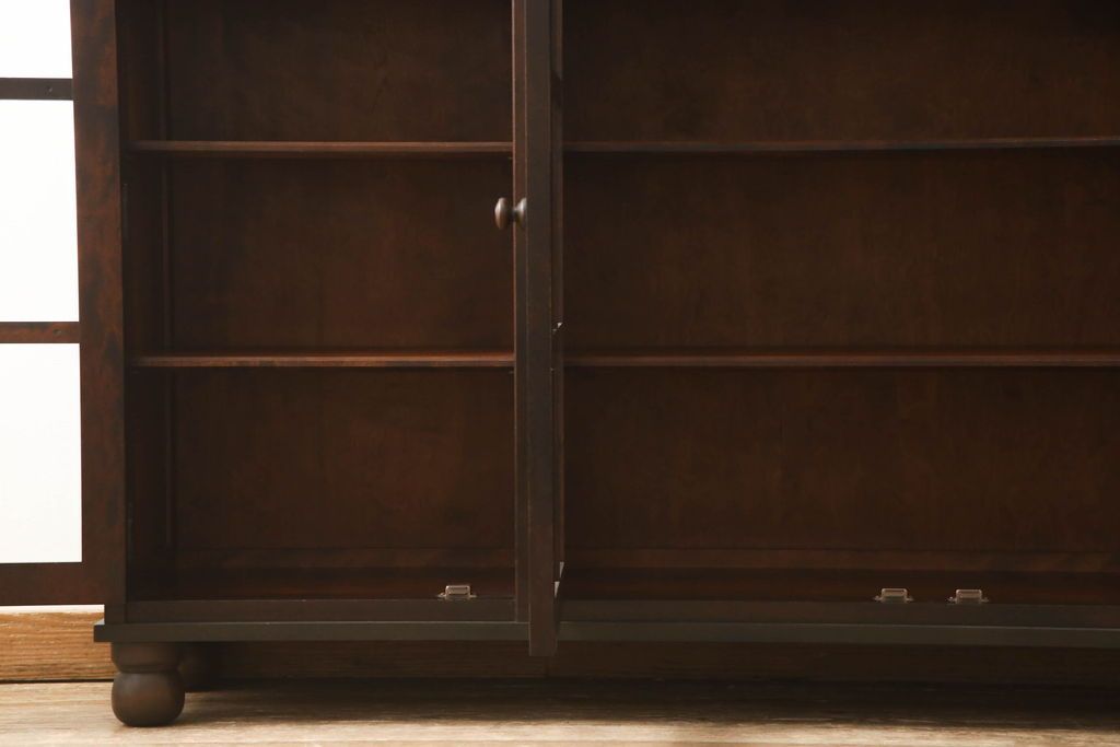 キャビネットをリペア&カスタム!木製の脚を取り付け、本体は現状をベースにして1トーン程落ち着いた色味に着色して仕上げ。(食器棚、カップボード、飾り棚、収納棚、本箱、ブックケース、サイドボード、サイドキャビネット)