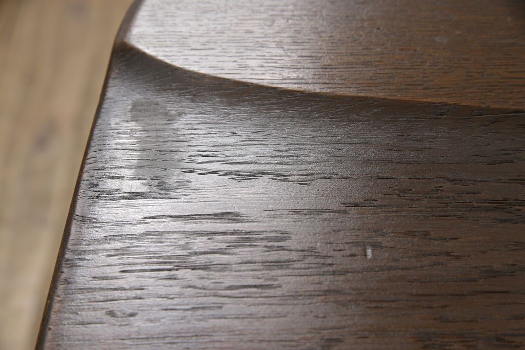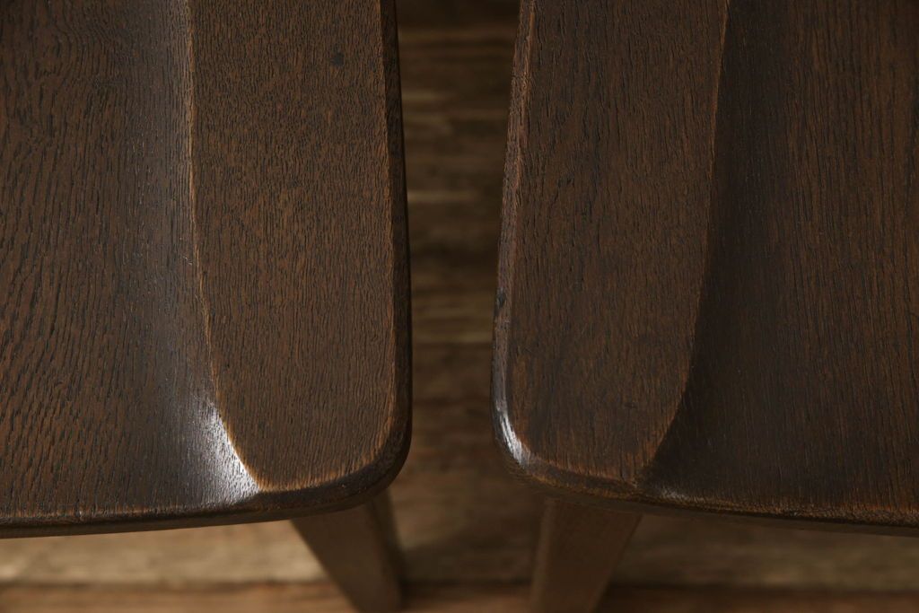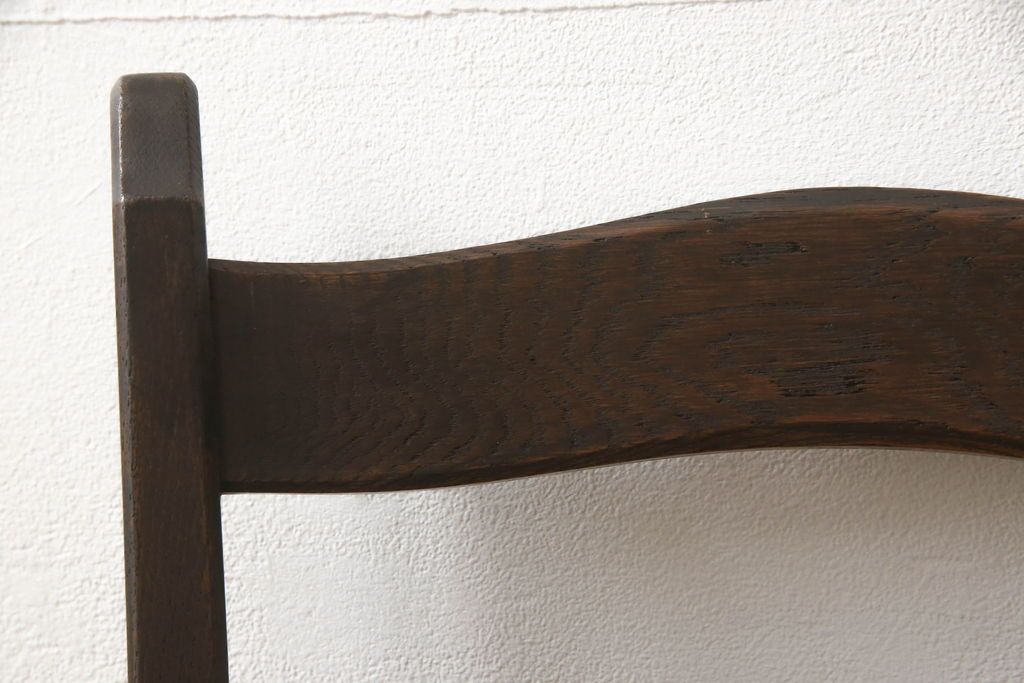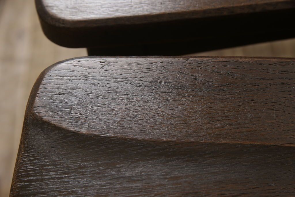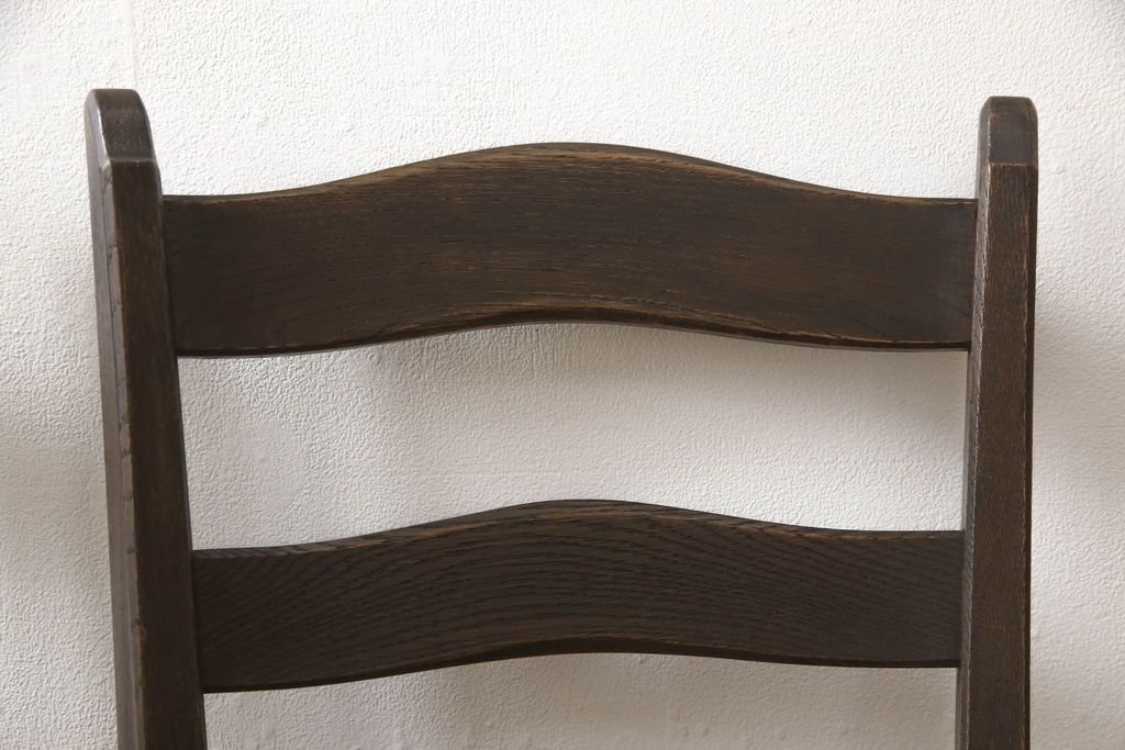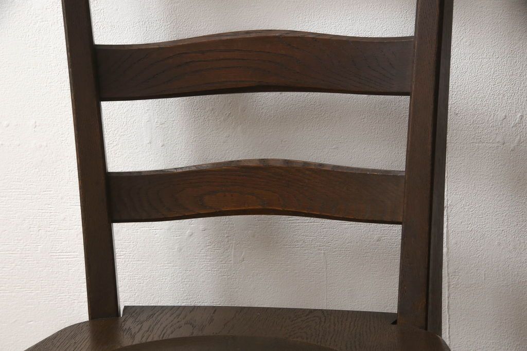 セミオーダー家具実績 > ラダー型食堂椅子2脚をリペア&カスタム!座面までの高さをリサイズし、修繕箇所は本体と馴染ませ、木部は現状をベースにして1トーン程落ち着いた色味に着色。(ダイニングチェア、ラダーバックチェア、ワークチェア、椅子、板座チェア)
