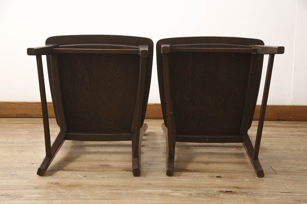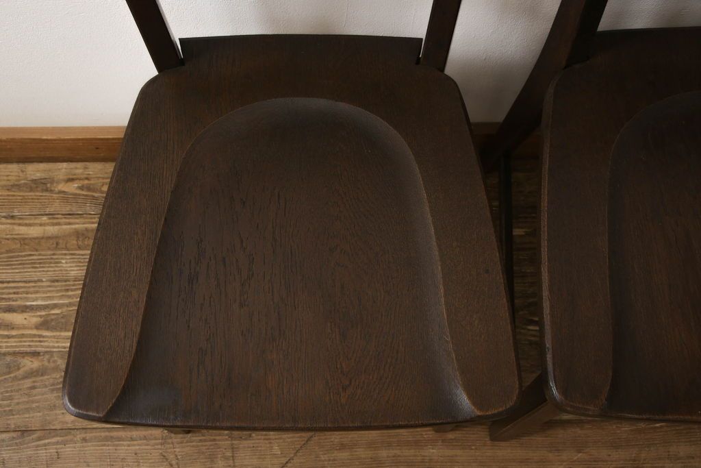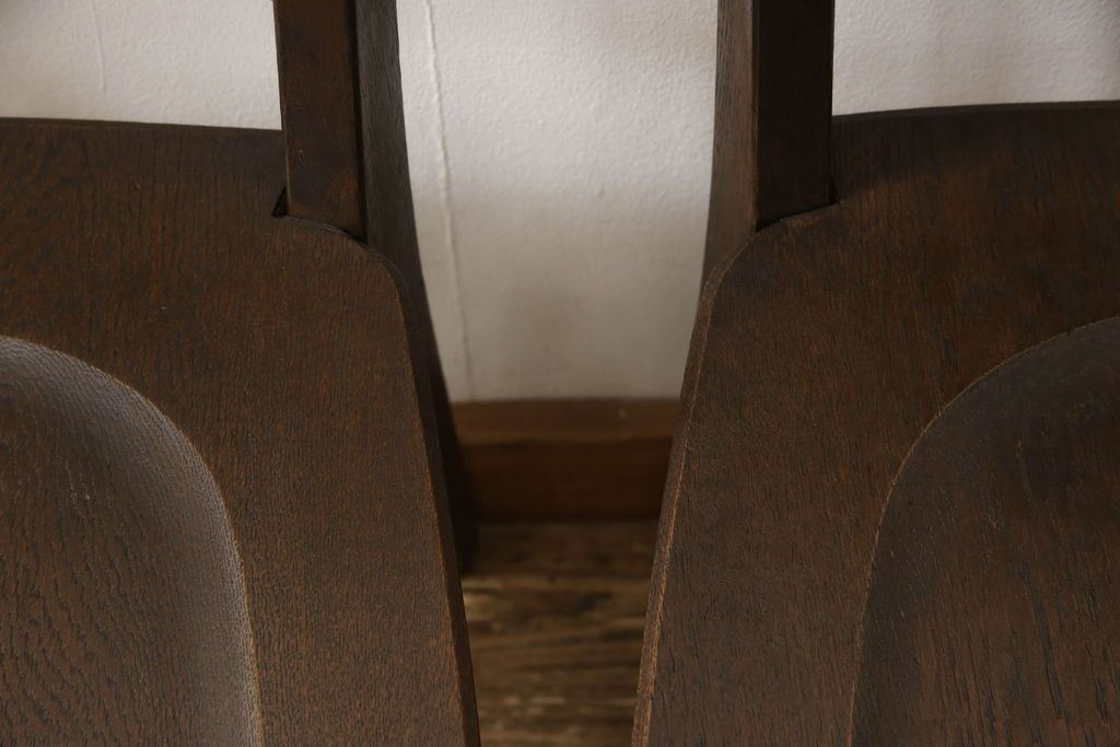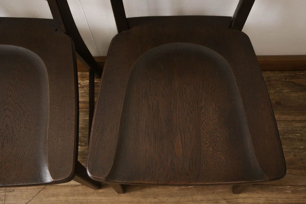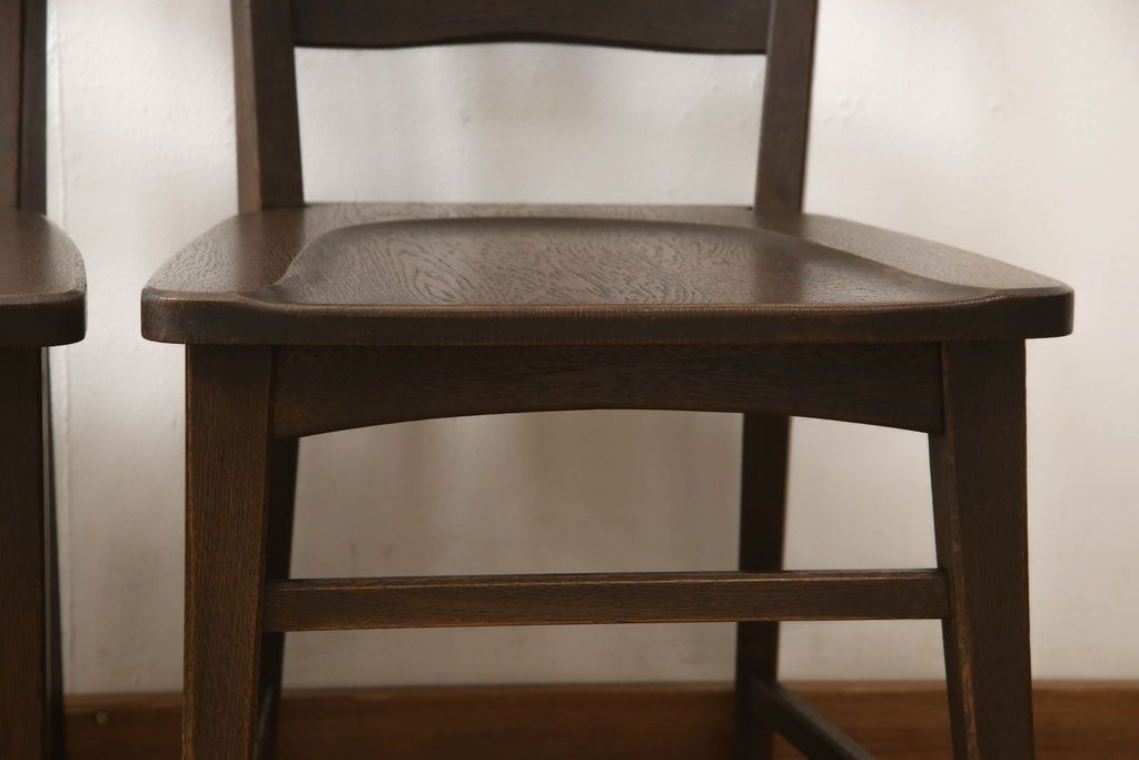 ラダー型食堂椅子2脚をリペア&カスタム!座面までの高さをリサイズし、修繕箇所は本体と馴染ませ、木部は現状をベースにして1トーン程落ち着いた色味に着色。(ダイニングチェア、ラダーバックチェア、ワークチェア、椅子、板座チェア)