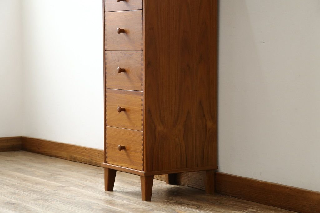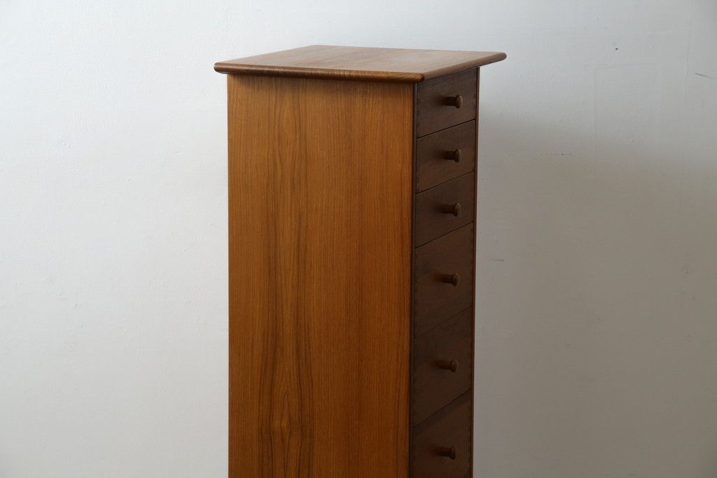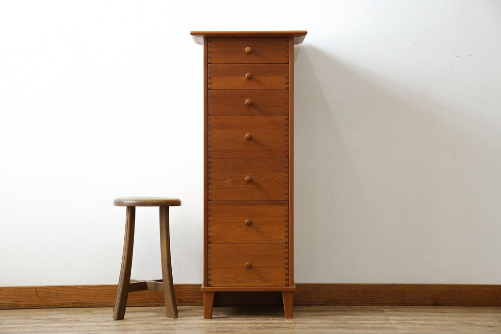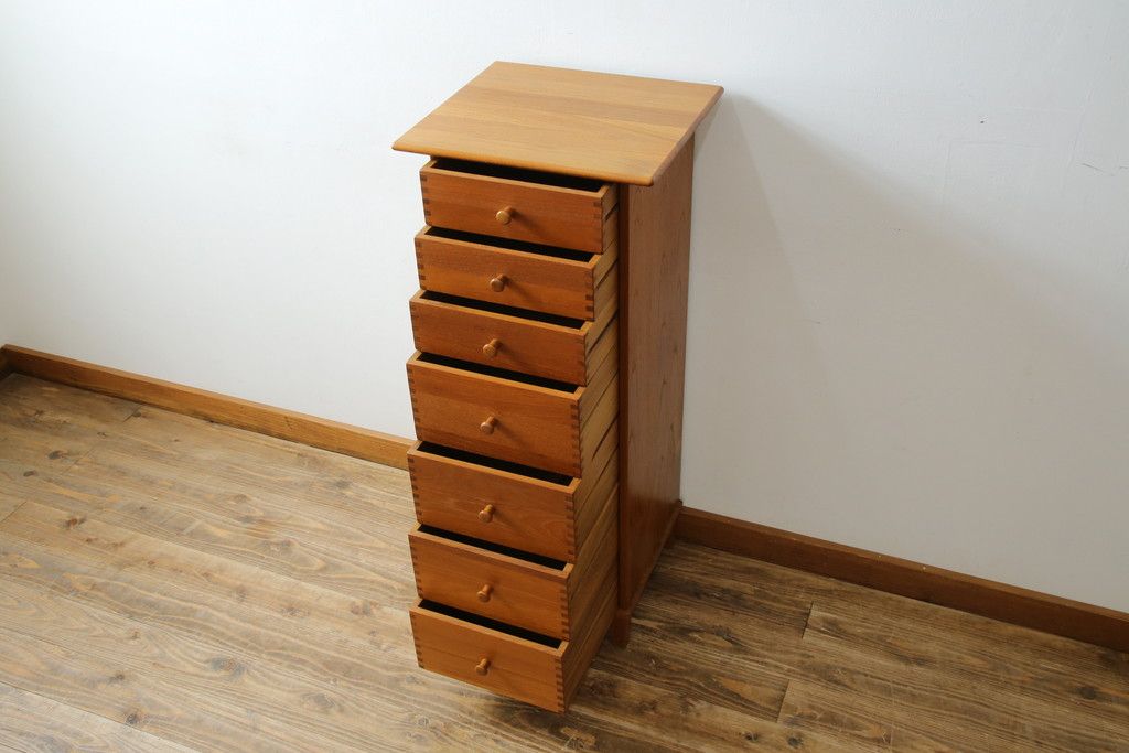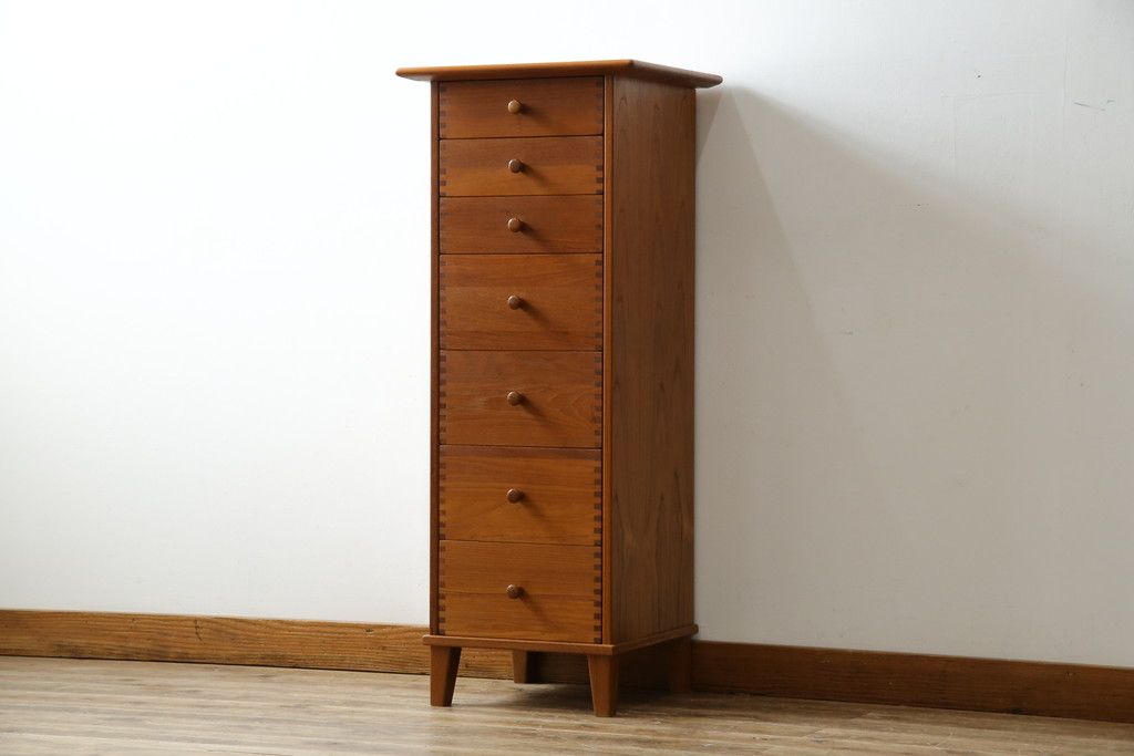 中古 デンマーク Maver Collection(ネイバーコレクション) S?ren Nissen(ソーレン・ニッセン)&Ebbe Gehl(エベ・ゲール)デザイン チェリー材 ナチュラルテイストの空間づくりに活躍する7段サイドチェスト(引き出し、縦型チェスト、縦長チェスト、北欧)(R-073895)