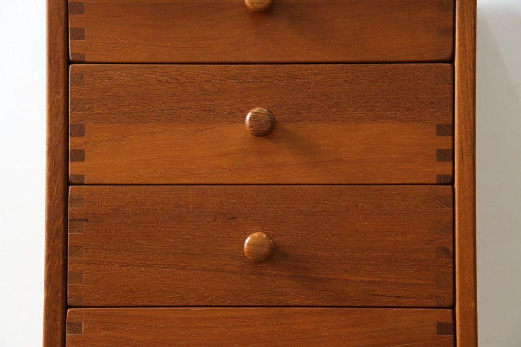 チェスト・引き出し> サイドチェスト > 中古 デンマーク Maver Collection(ネイバーコレクション) S?ren Nissen(ソーレン・ニッセン)&Ebbe Gehl(エベ・ゲール)デザイン チェリー材 ナチュラルテイストの空間づくりに活躍する7段サイドチェスト(引き出し、縦型チェスト、縦長チェスト、北欧)(R-073895)