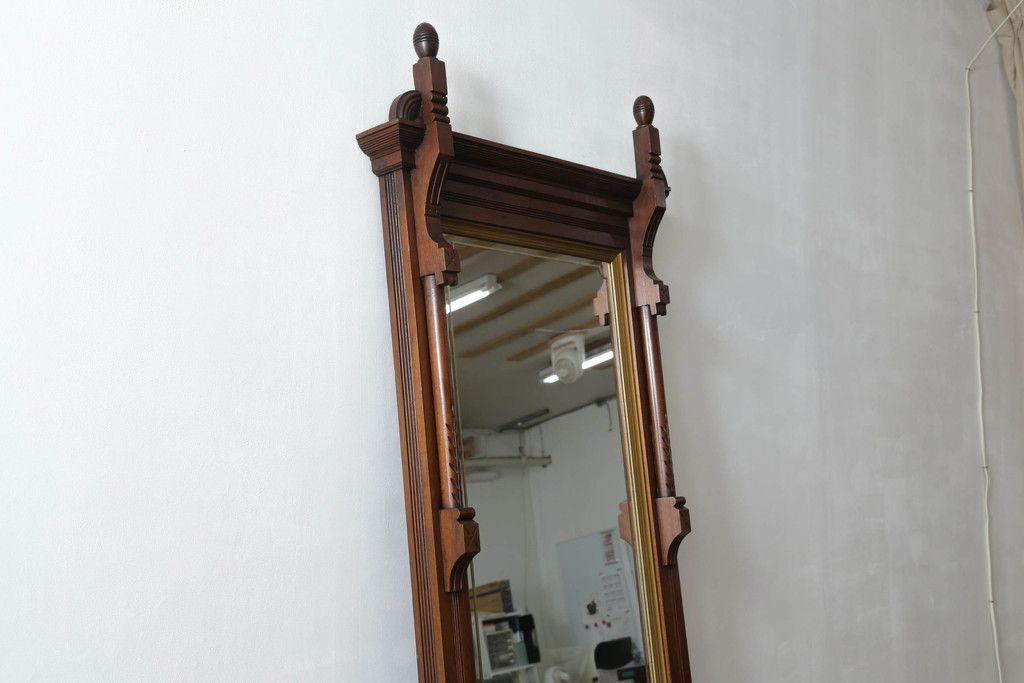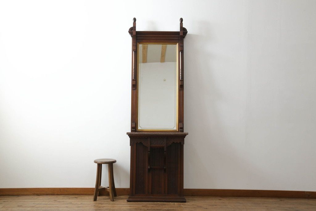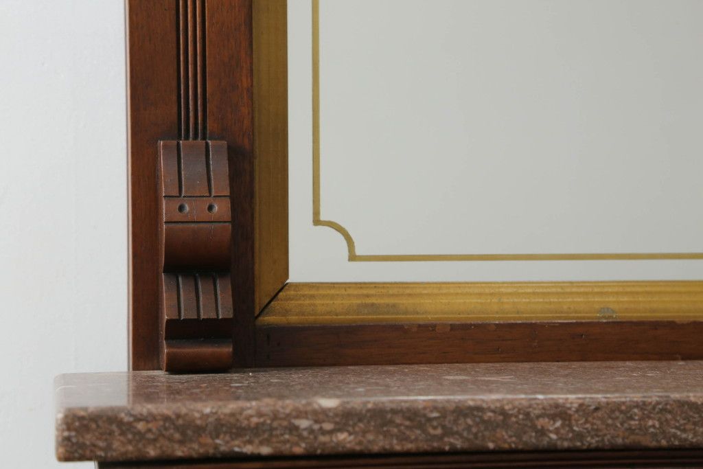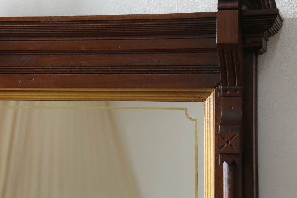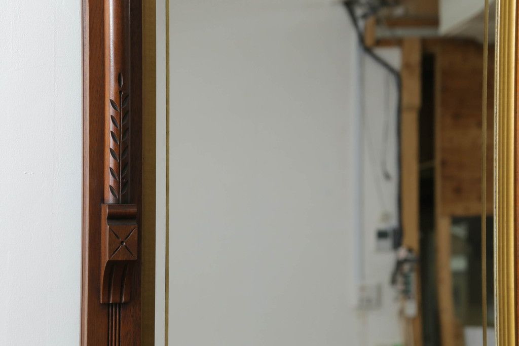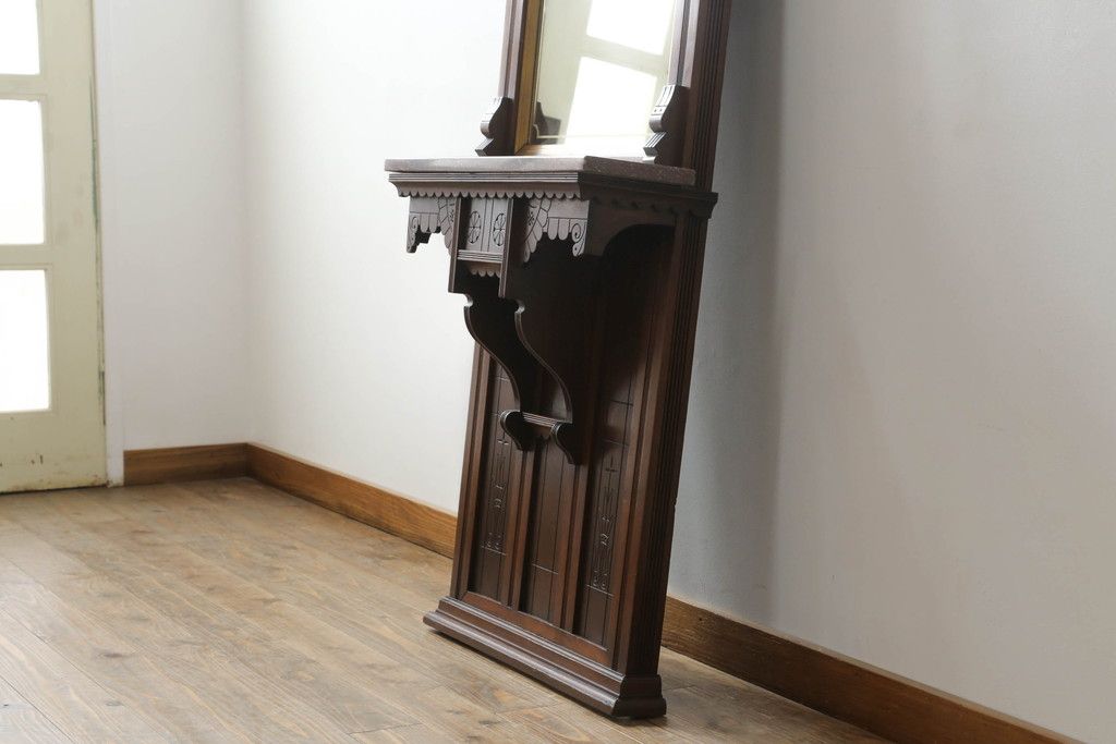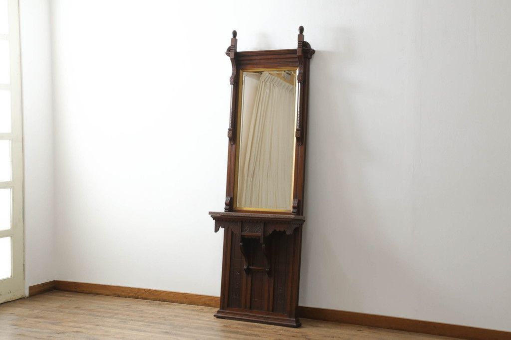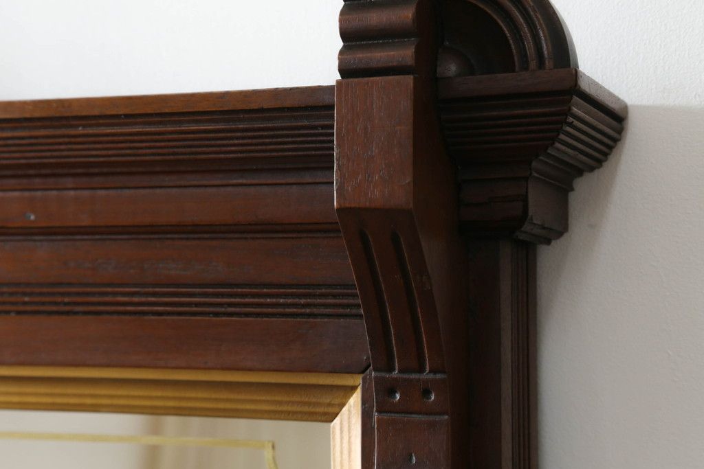 マホガニー材ホールスタンドをリペア&カスタム!鏡を新しいものに交換し、壁への固定用金具を取り付け。全体を1トーン落ち着いた色味に着色仕上げ。(ミラー、鏡、鏡台、ドレッサー、化粧台)