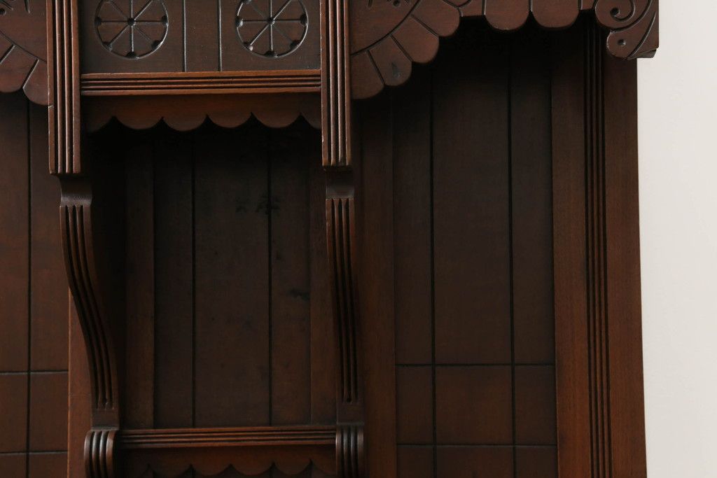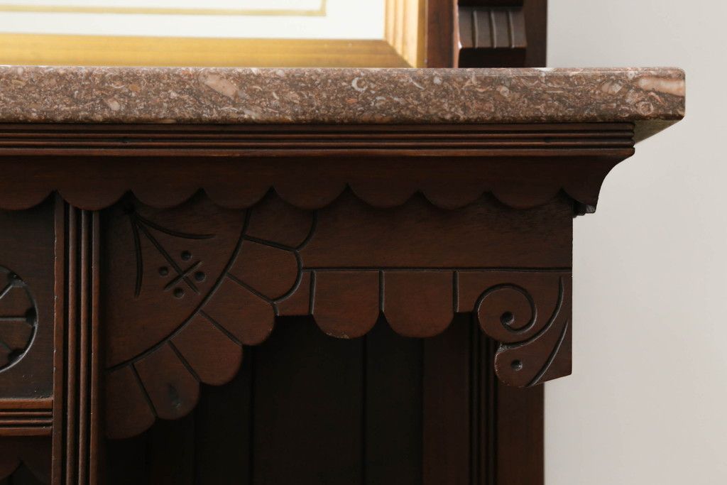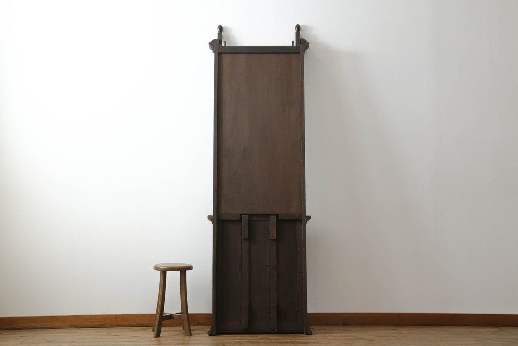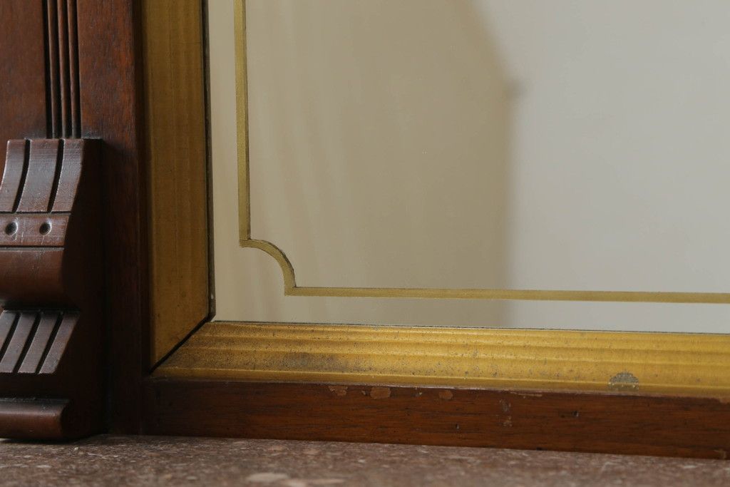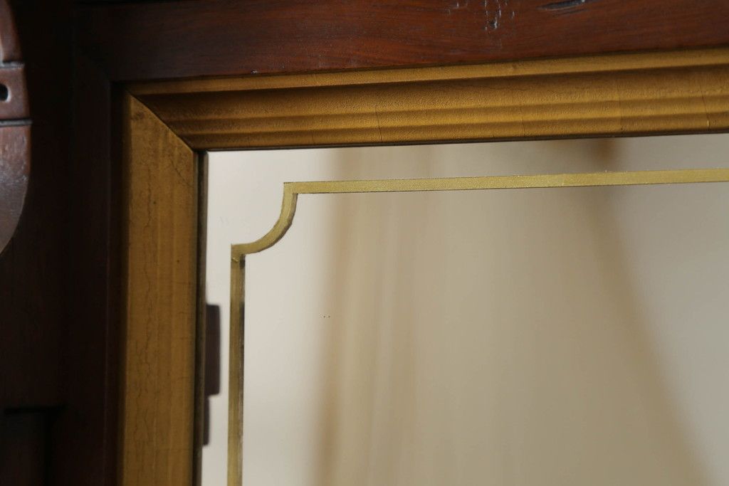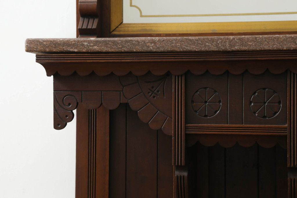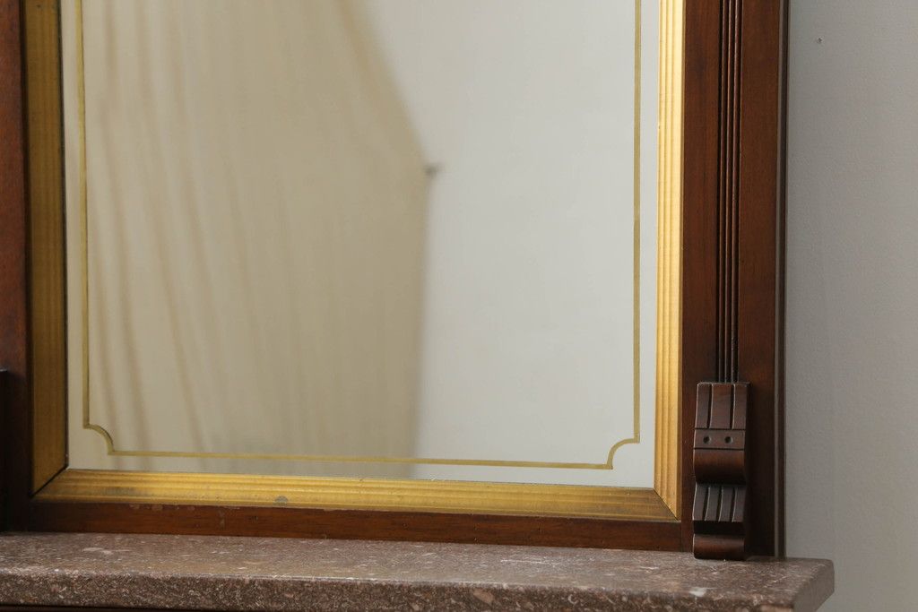 マホガニー材ホールスタンドをリペア&カスタム!鏡を新しいものに交換し、壁への固定用金具を取り付け。全体を1トーン落ち着いた色味に着色仕上げ。(ミラー、鏡、鏡台、ドレッサー、化粧台)