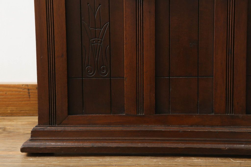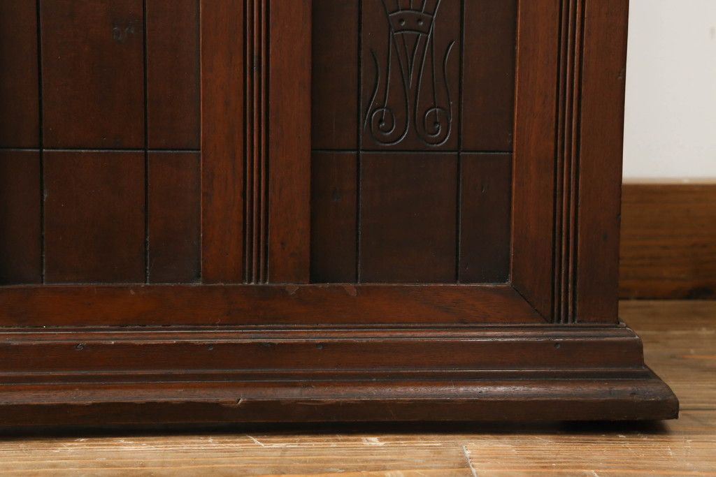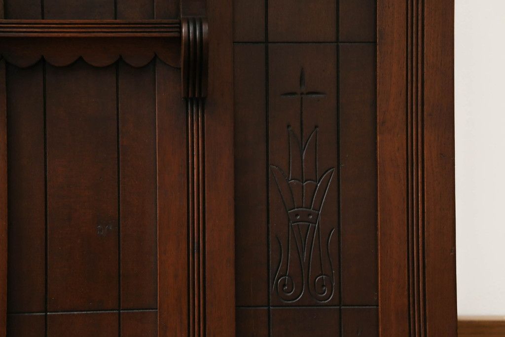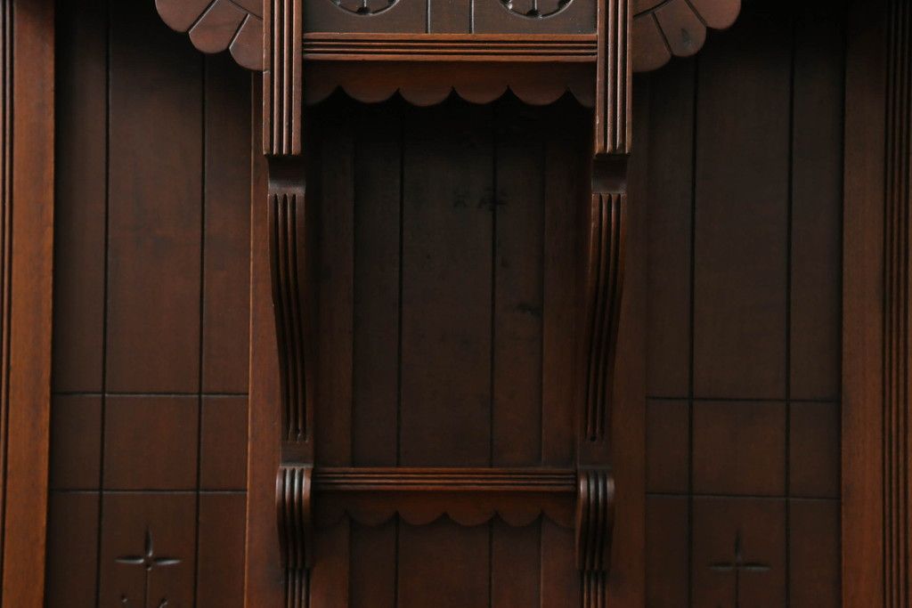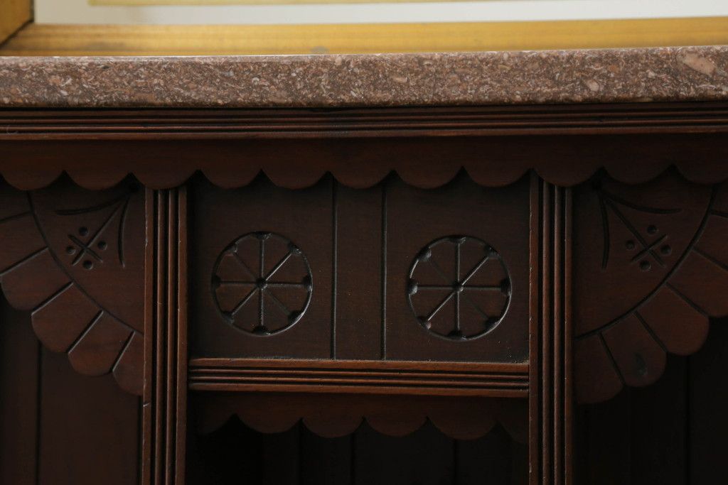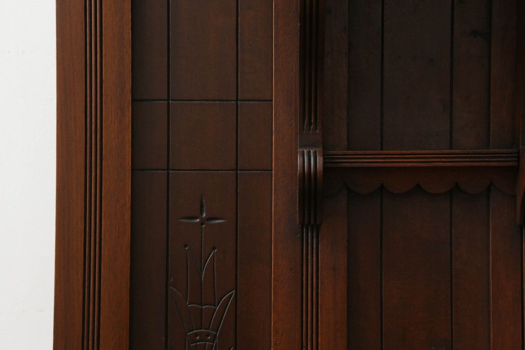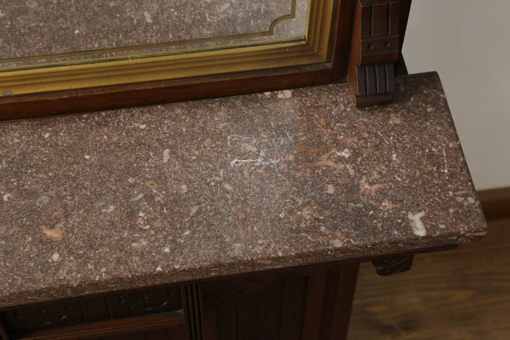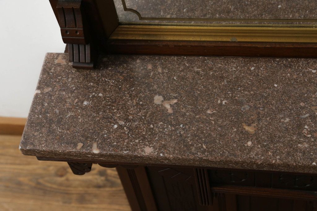マホガニー材ホールスタンドをリペア&カスタム!鏡を新しいものに交換し、壁への固定用金具を取り付け。全体を1トーン落ち着いた色味に着色仕上げ。(ミラー、鏡、鏡台、ドレッサー、化粧台)