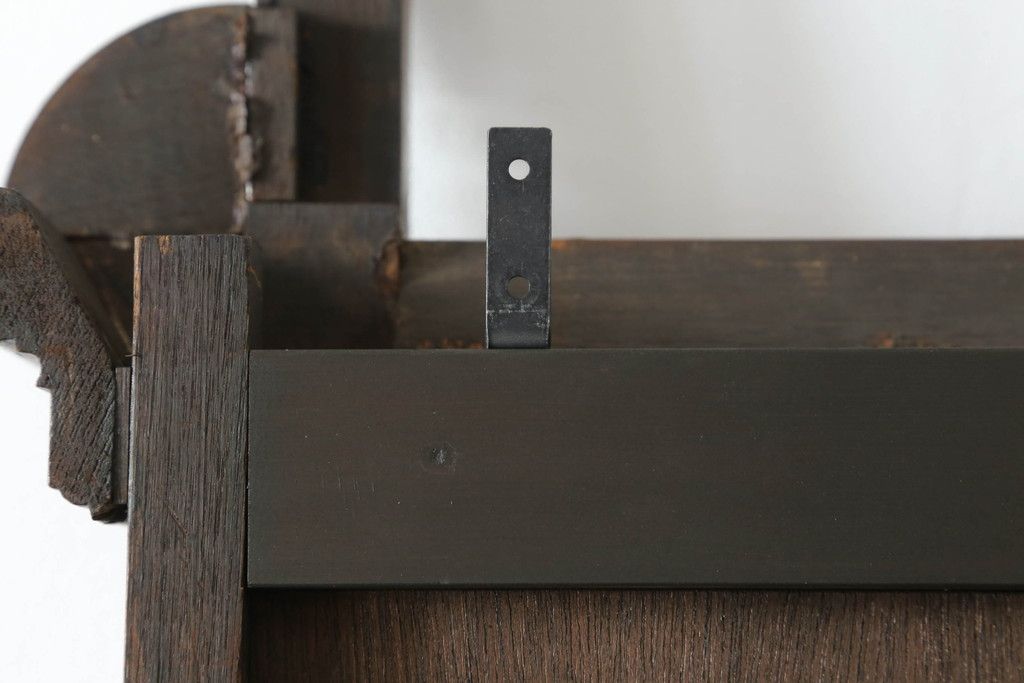 セミオーダー家具実績 > マホガニー材ホールスタンドをリペア&カスタム!鏡を新しいものに交換し、壁への固定用金具を取り付け。全体を1トーン落ち着いた色味に着色仕上げ。(ミラー、鏡、鏡台、ドレッサー、化粧台)