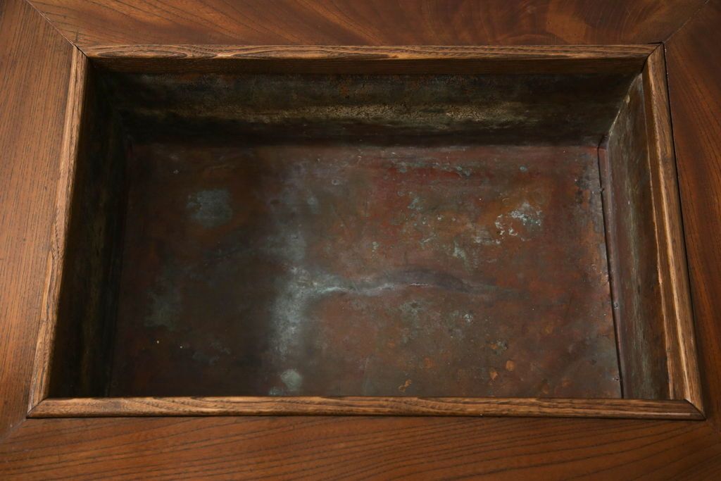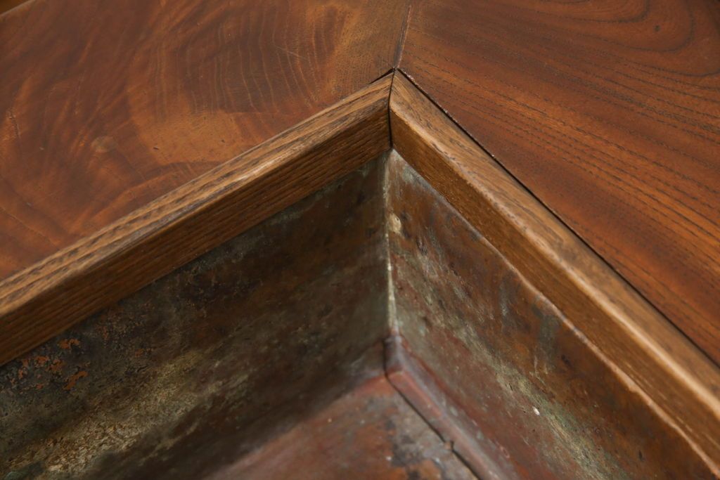 火鉢> 長火鉢 > 関西火鉢をリペア&カスタム!蓋は開口部に合わせ木目の近い栗材で新規製作。蓋の色味は本体に合わせ、本体は現状をベースに着色。(囲炉裏、長火鉢、座卓、ローテーブル)