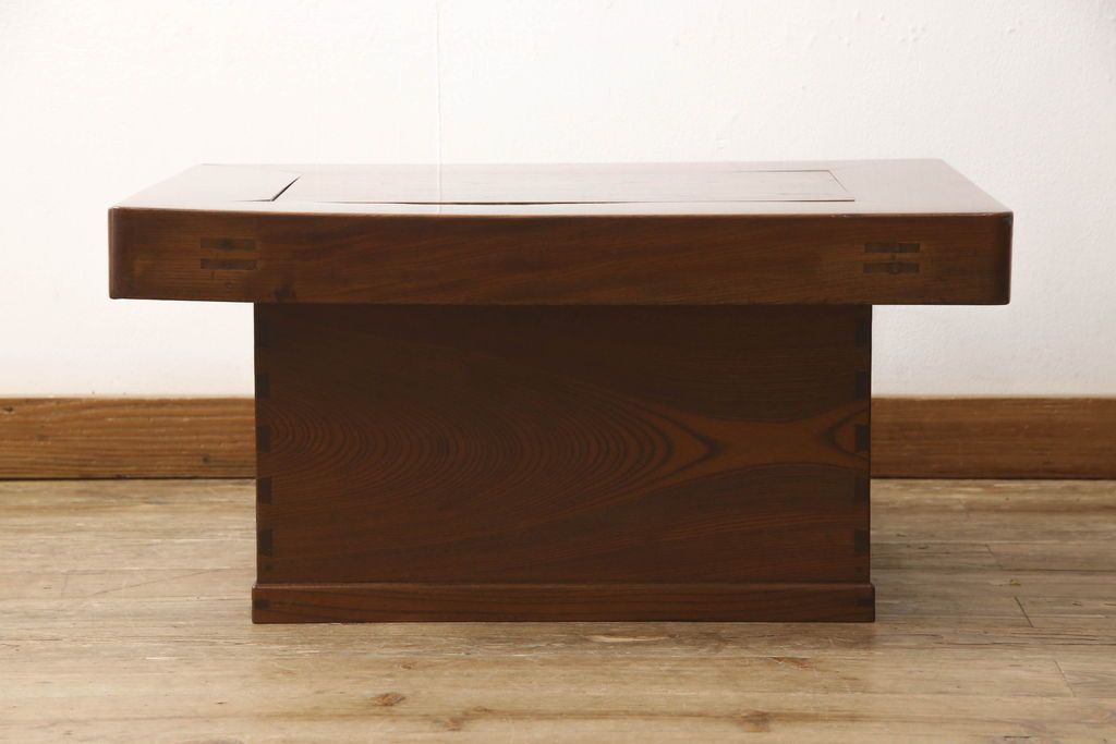 火鉢> 木製火鉢 > 関西火鉢をリペア&カスタム!蓋は開口部に合わせ木目の近い栗材で新規製作。蓋の色味は本体に合わせ、本体は現状をベースに着色。(囲炉裏、長火鉢、座卓、ローテーブル)