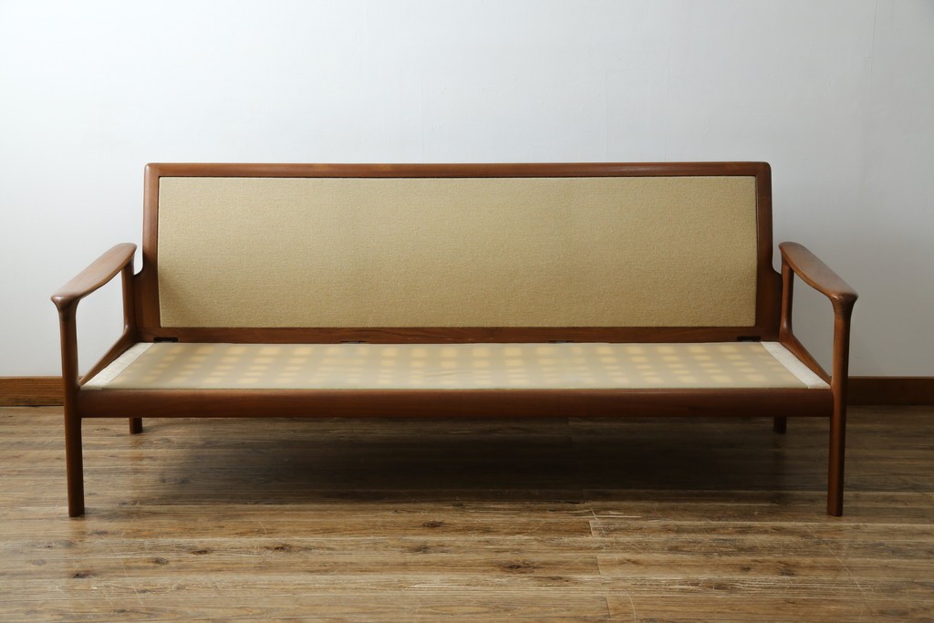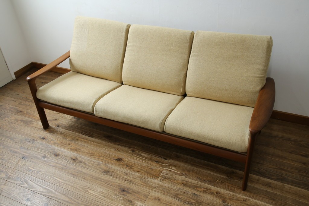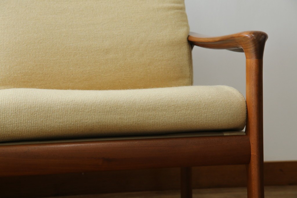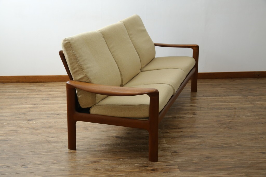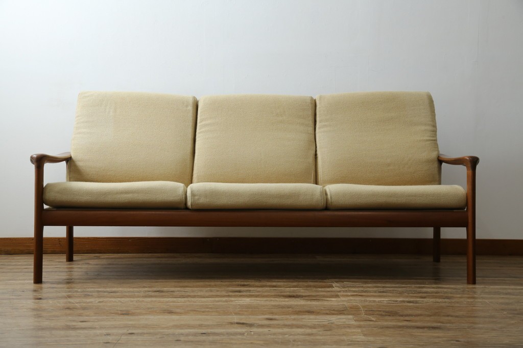 椅子・ベンチ> アームチェア > デンマークビンテージ レア!! komfort チーク材 ナチュラルテイストのお部屋におすすめの3人掛けソファ (R-074046)