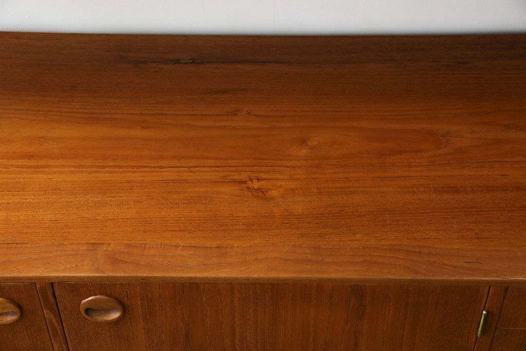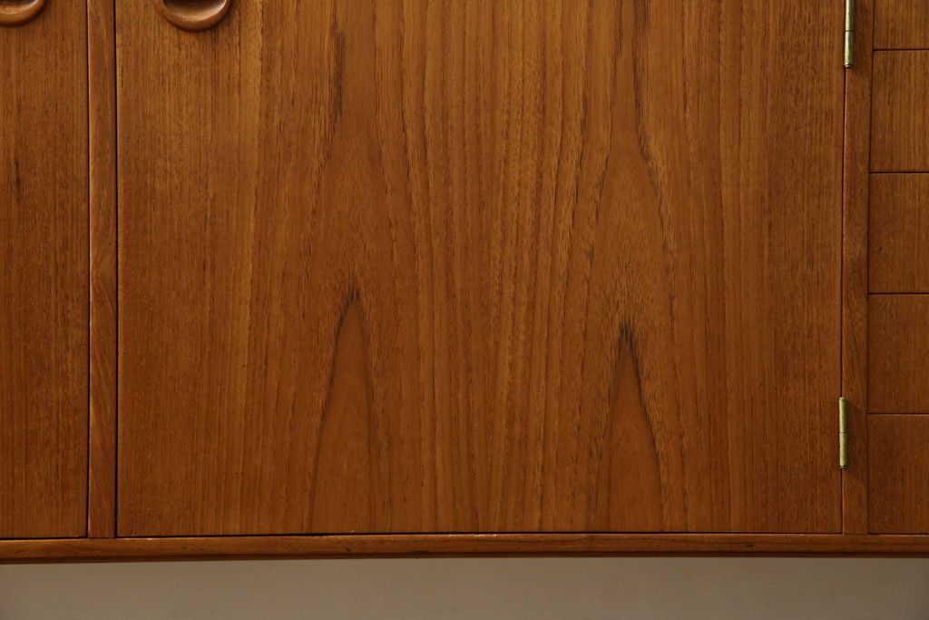デンマークビンテージ チーク材 北欧テイストのお部屋づくりにぴったり!!木の温もりを感じさせる洗練されたフォルムのサイドボード(キャビネット、収納棚、戸棚、ヴィンテージ、北欧)(R-074204)