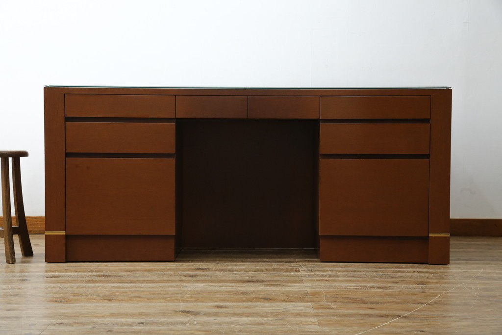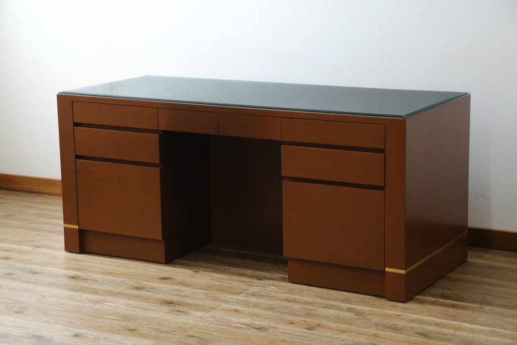 中古 オーダー家具 重厚な佇まいが魅力的な両袖デスク 定価約70万円相当 (R-074238)