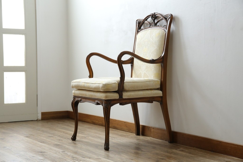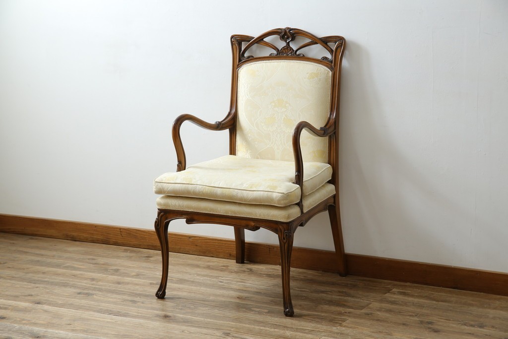 中古 美品 イタリア高級家具 メデア(Medea) エレガントな佇まいが美しいアームチェア (R-074659)