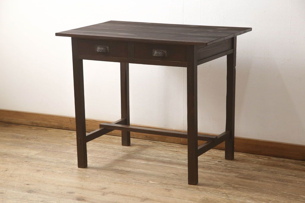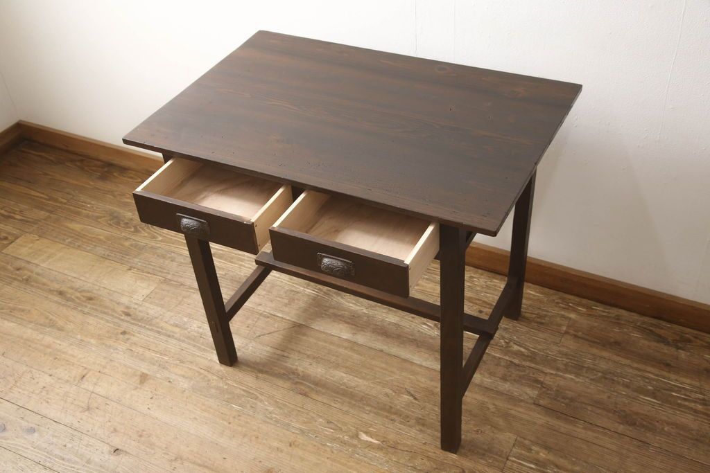 大正期の平机をリペア&カスタム!高品質リペアを施し、1トーン落ち着いた色味に着色仕上げ。(ワークデスク、在宅ワーク、在宅用、作業台)