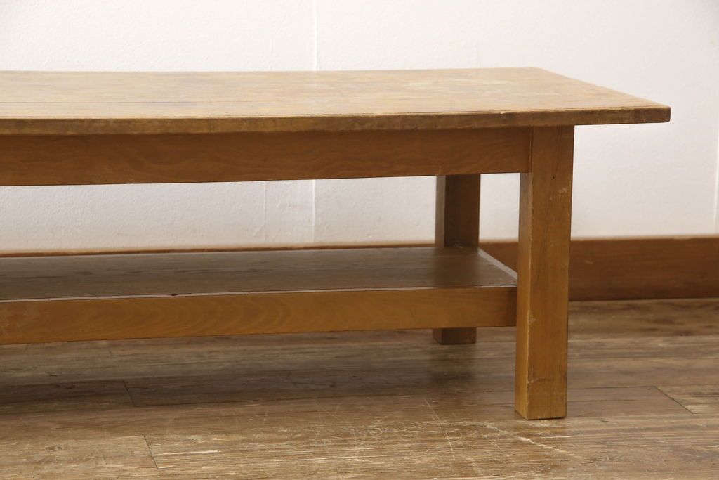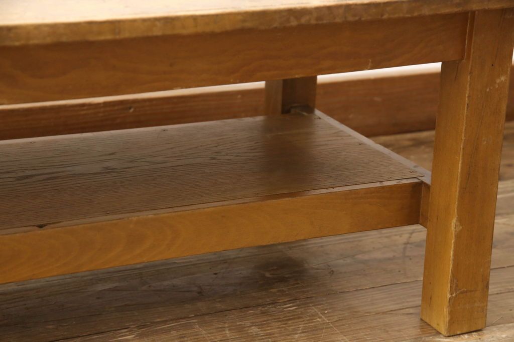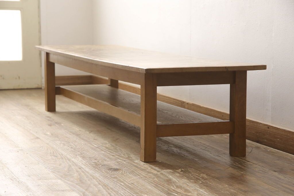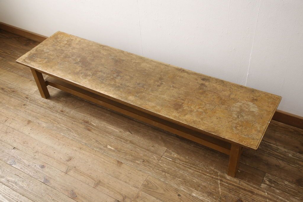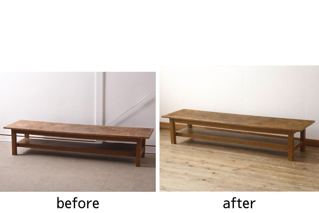 テーブル> 作業台 > 昭和中期の長テーブルの見た目を変えずに奇麗にリペア!無着色・クリアワックスで本来の骨董感を活かして仕上げ。(ローテーブル、飾り台)