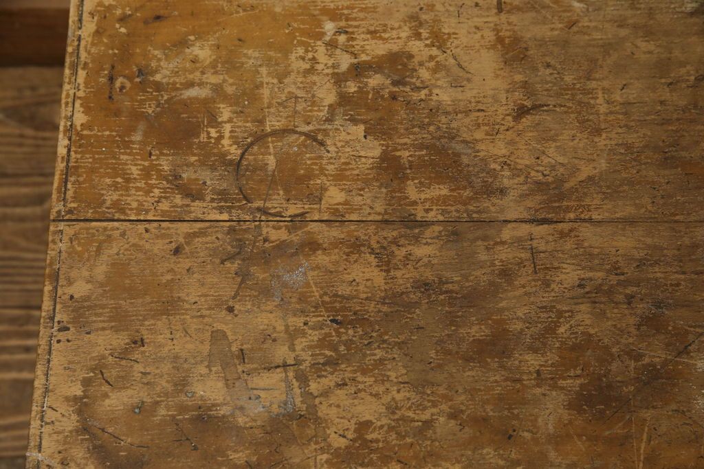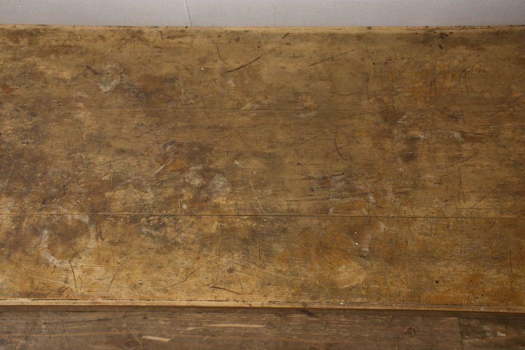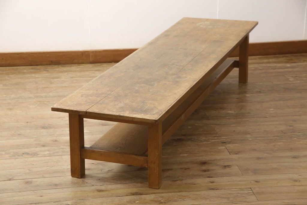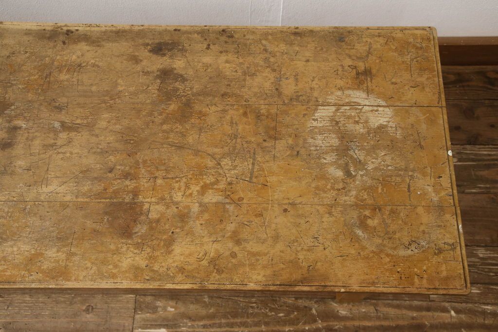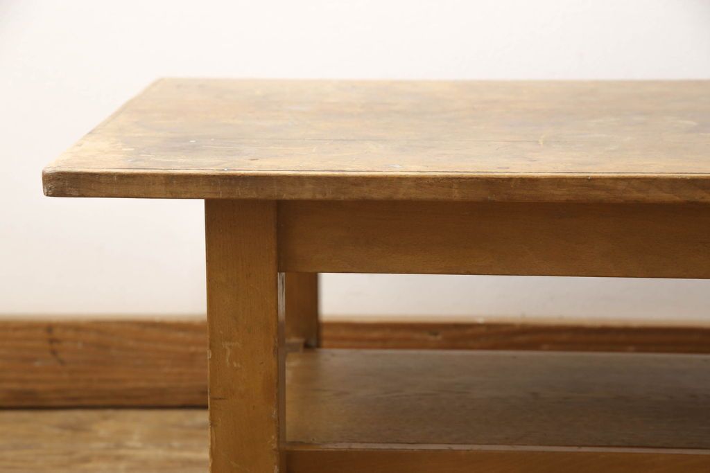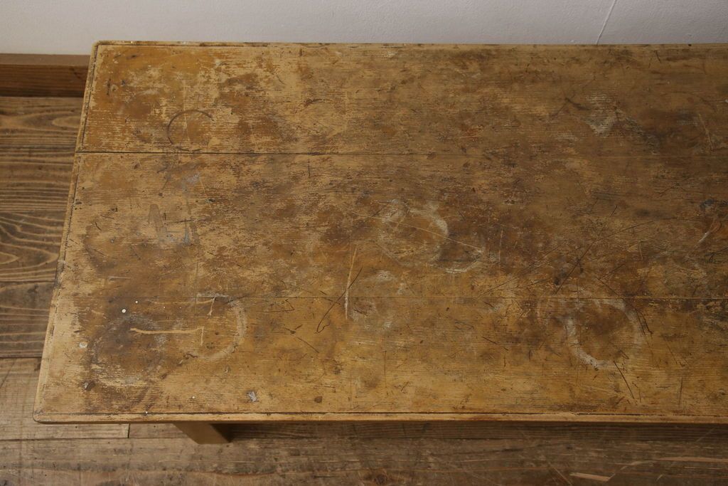 テーブル> 作業台 > 昭和中期の長テーブルの見た目を変えずに奇麗にリペア!無着色・クリアワックスで本来の骨董感を活かして仕上げ。(ローテーブル、飾り台)