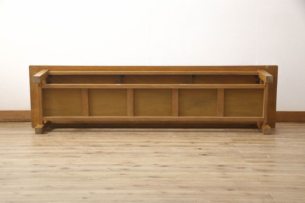昭和中期の長テーブルの見た目を変えずに奇麗にリペア!無着色・クリアワックスで本来の骨董感を活かして仕上げ。(ローテーブル、飾り台)