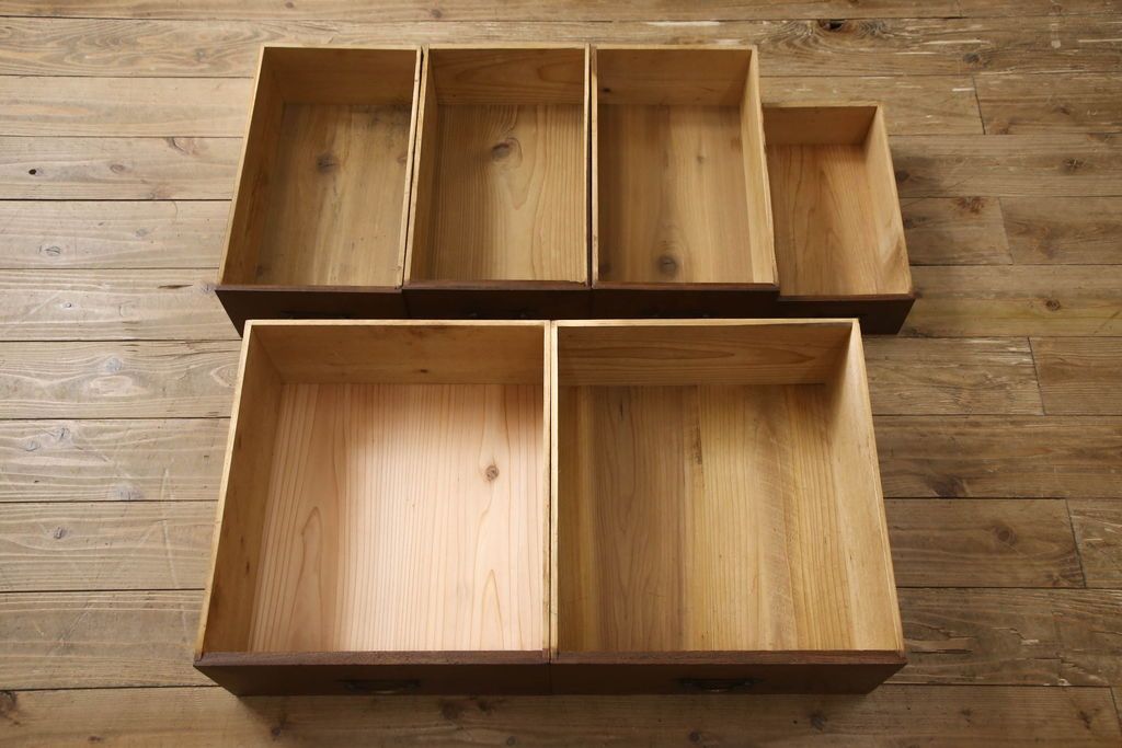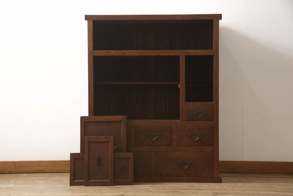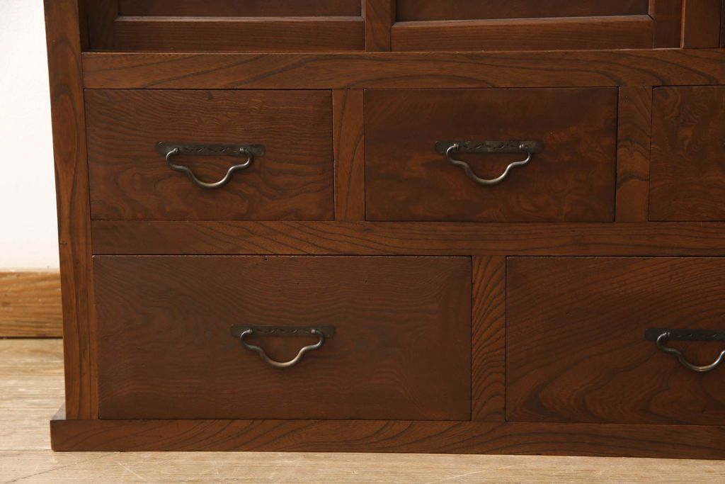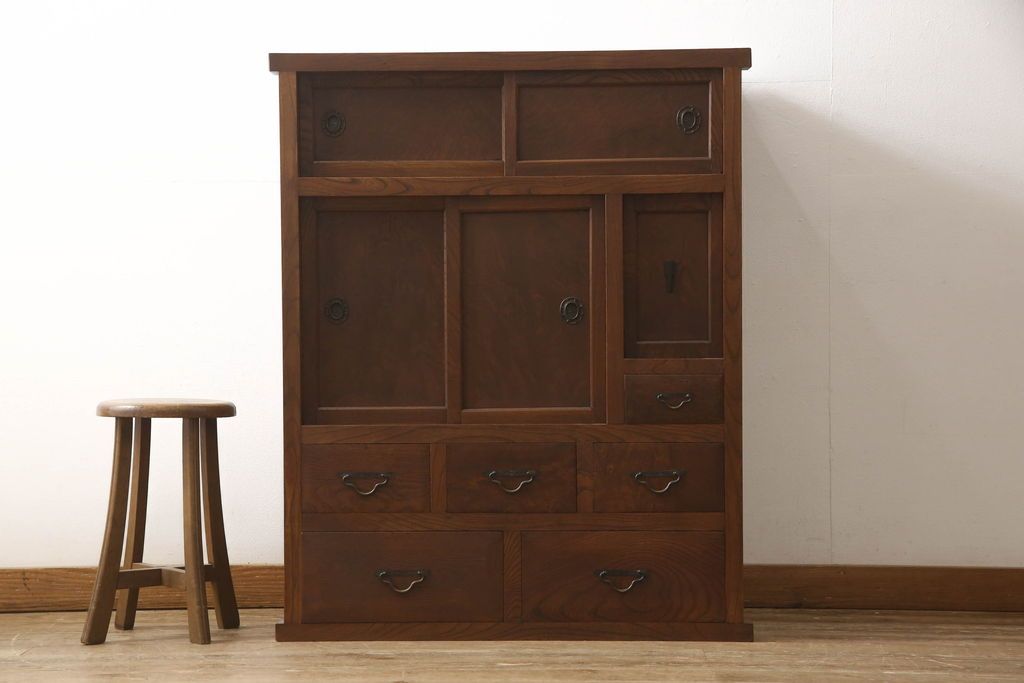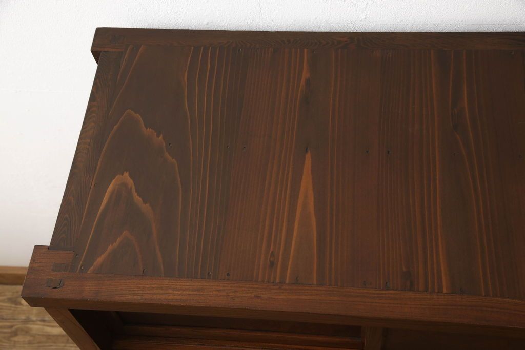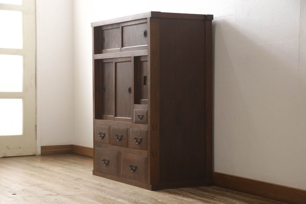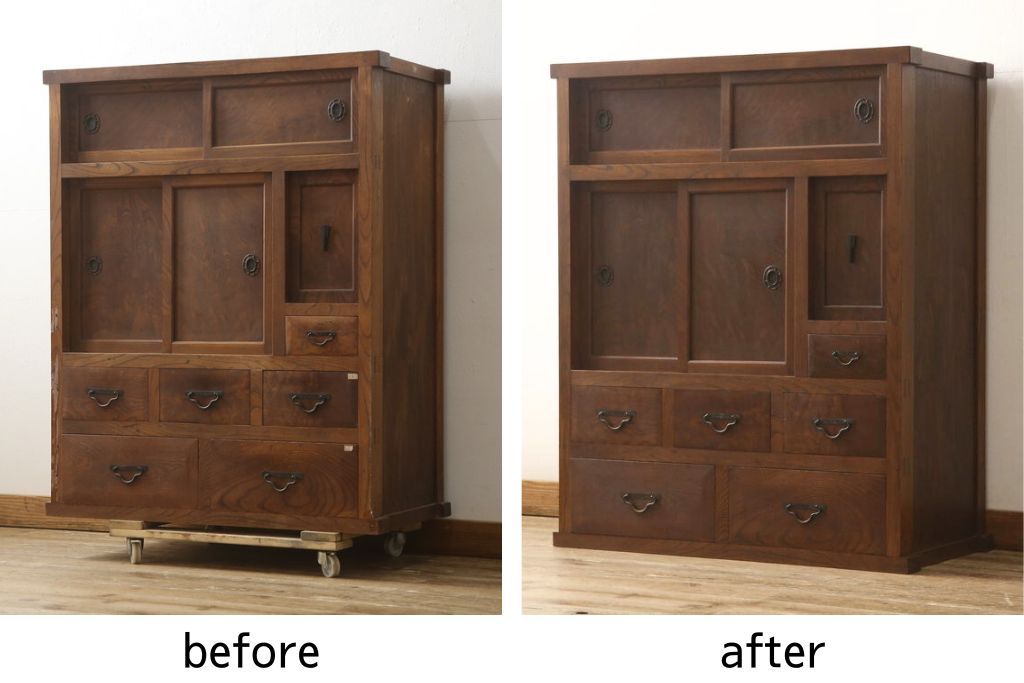 和箪笥 > 大正昭和初期の収納箪笥の見た目を変えずに奇麗にリペア!引手や取っ手の金具部分は現状のものを使用。現状の色味をベースにワントーン程濃くなるように着色。(関東水屋箪笥、サイドキャビネット、収納棚、戸棚、茶箪笥)