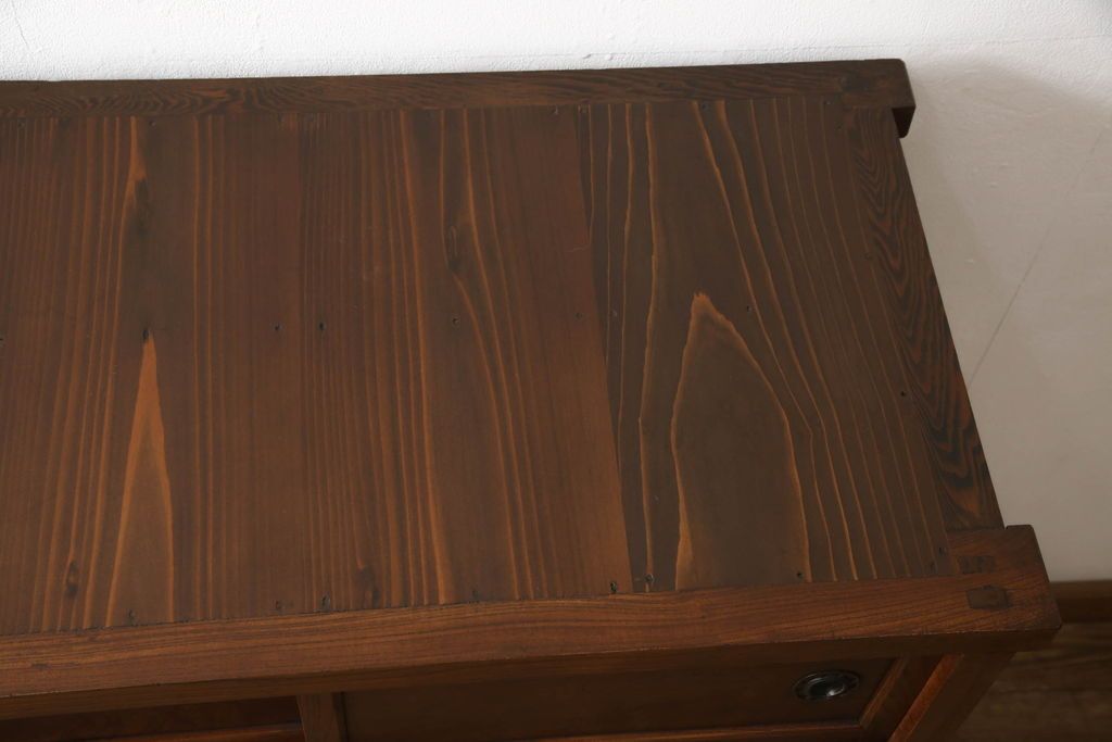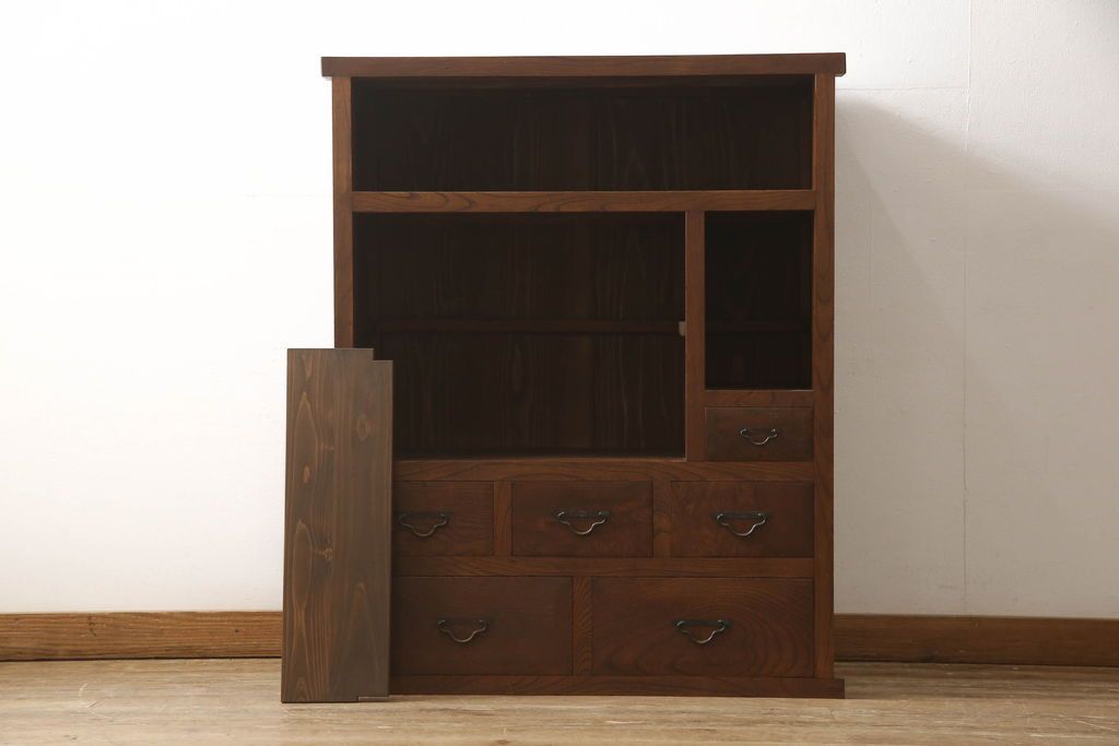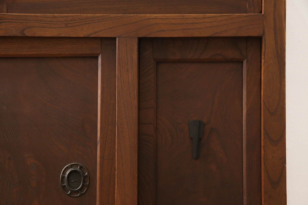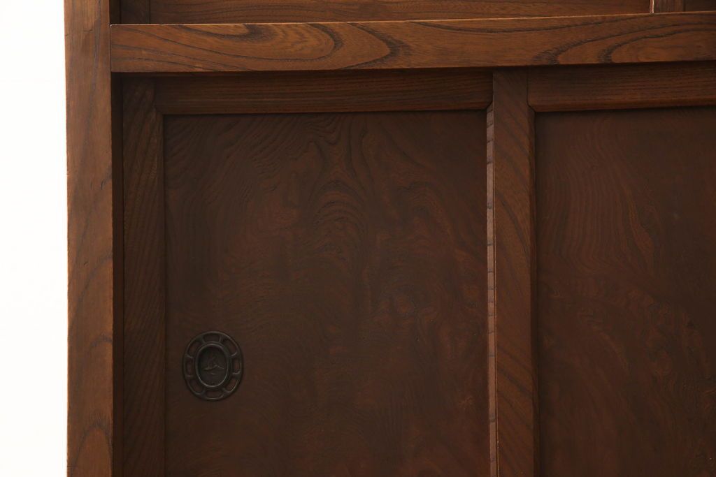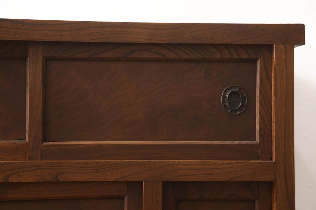 和箪笥> 水屋箪笥 > 大正昭和初期の収納箪笥の見た目を変えずに奇麗にリペア!引手や取っ手の金具部分は現状のものを使用。現状の色味をベースにワントーン程濃くなるように着色。(関東水屋箪笥、サイドキャビネット、収納棚、戸棚、茶箪笥)